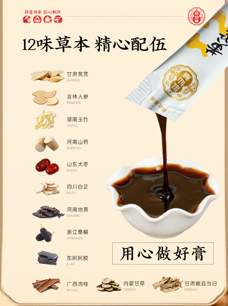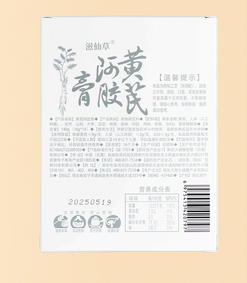 滋仙草真材实料熬稠黄芪阿胶膏140g/盒