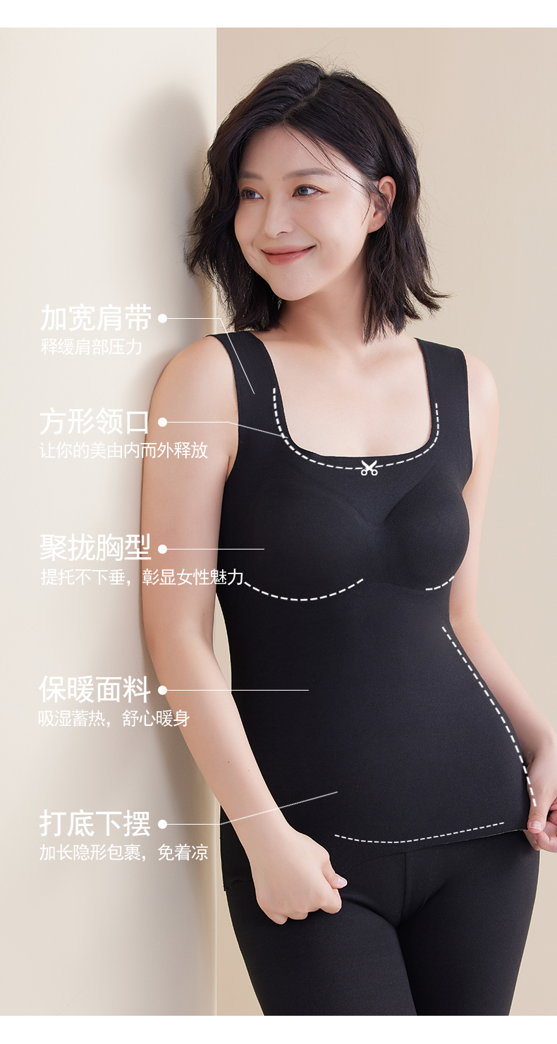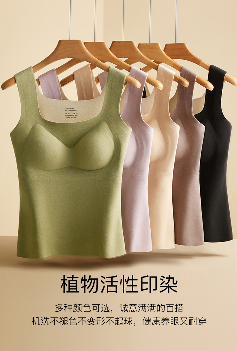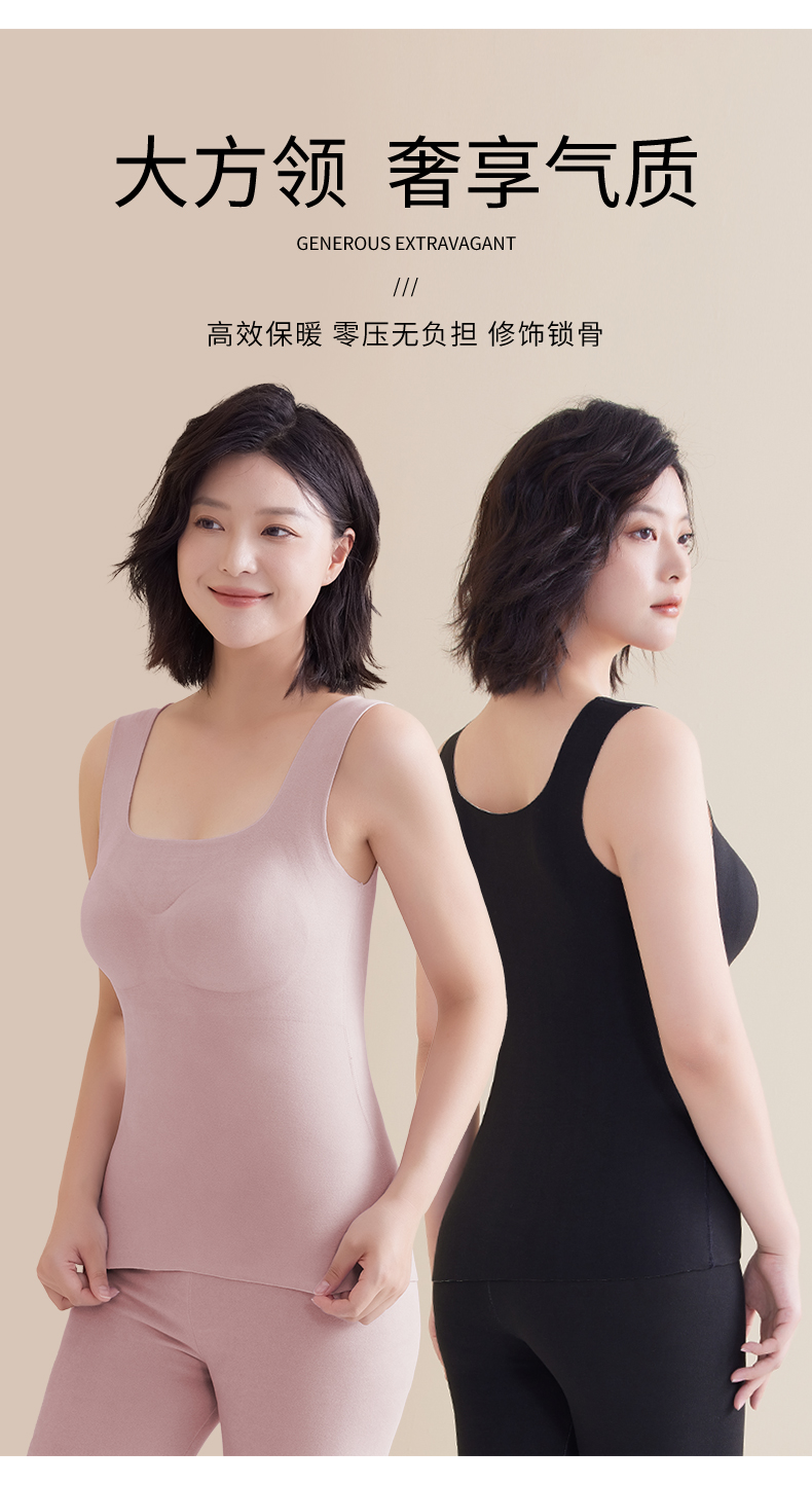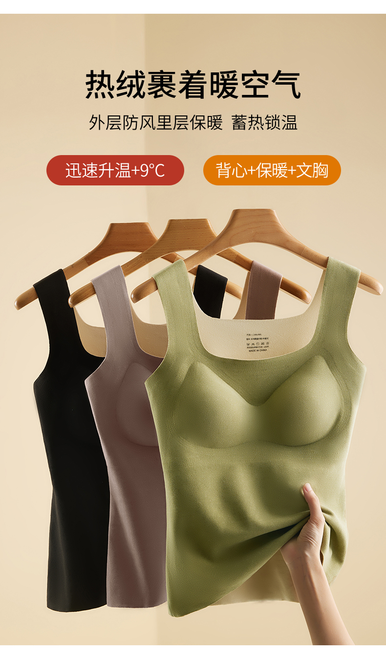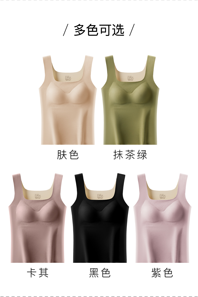 「买一送一!数色可选」无痕德绒内衣 方领保暖背心女款带胸垫一体 免穿文胸加绒加厚发热背心秋冬季