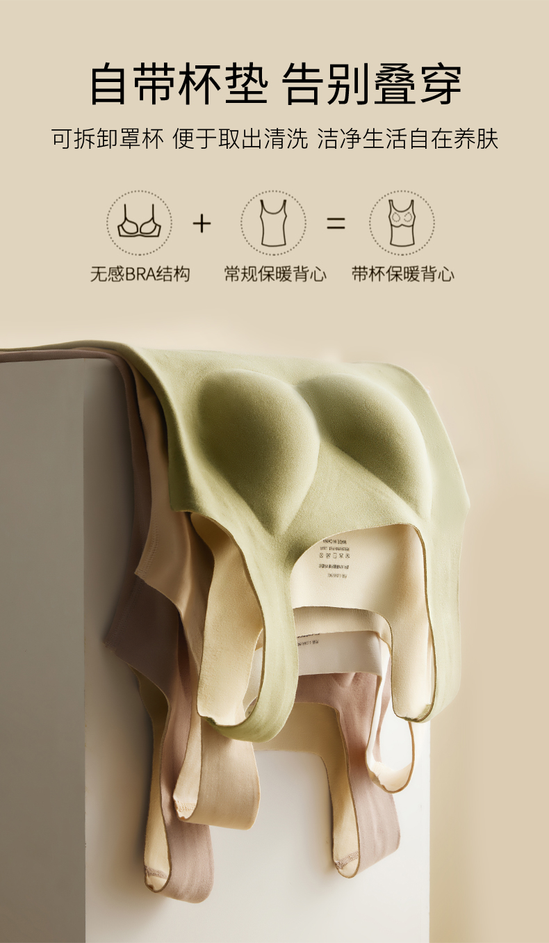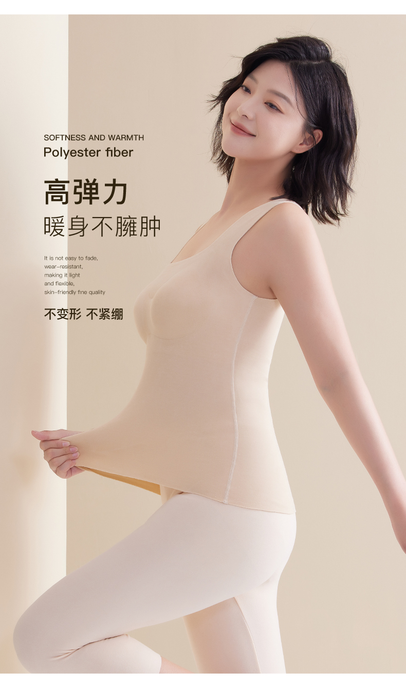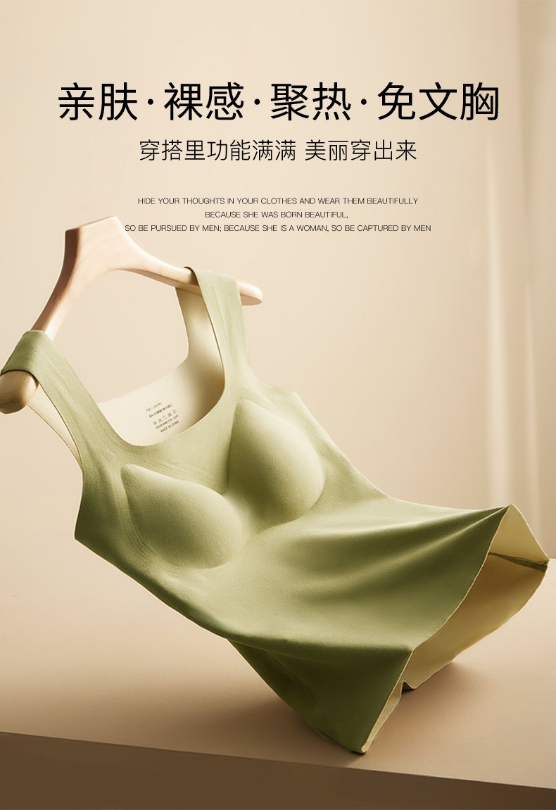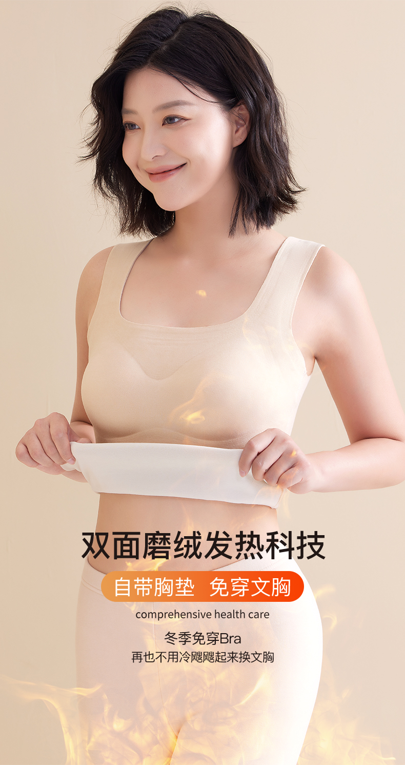 「买一送一!数色可选」无痕德绒内衣 方领保暖背心女款带胸垫一体 免穿文胸加绒加厚发热背心秋冬季