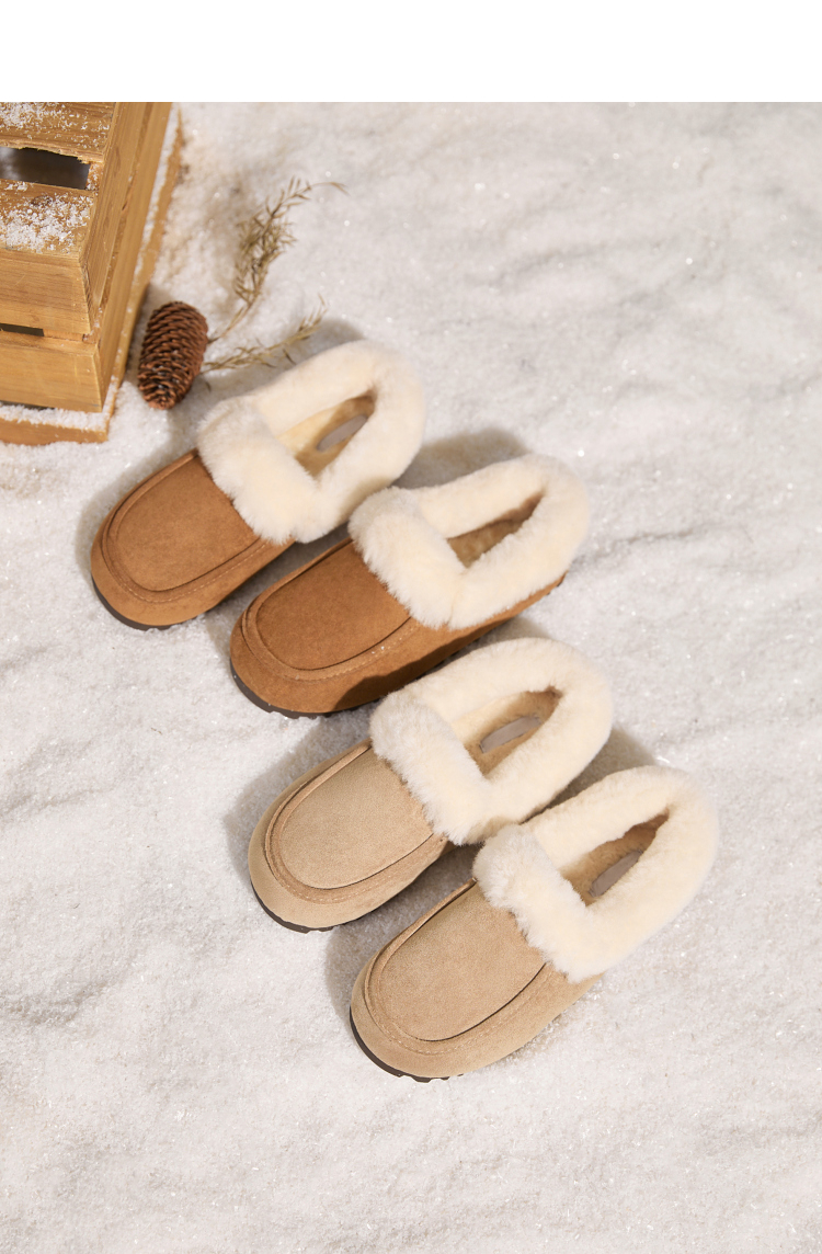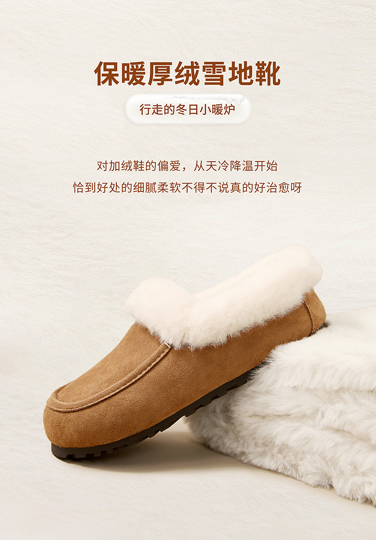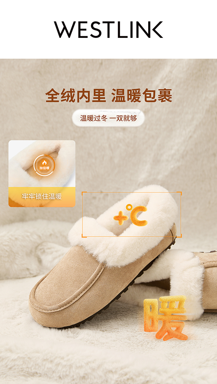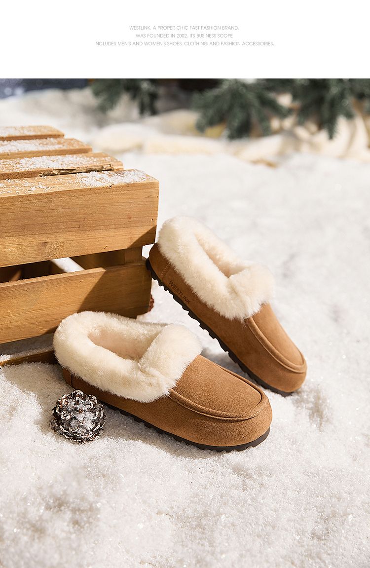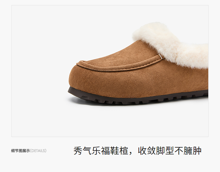 西遇雪地靴半拖女新款秋冬加绒保暖外穿勃肯棉鞋乐福毛毛拖鞋V2457349