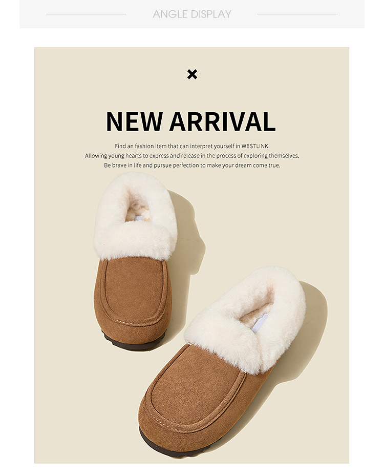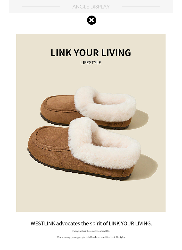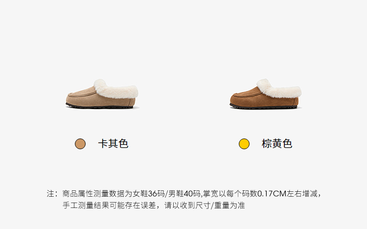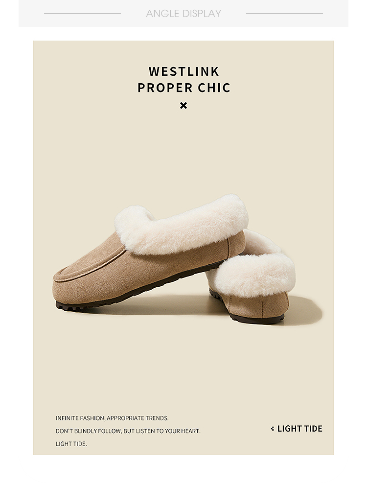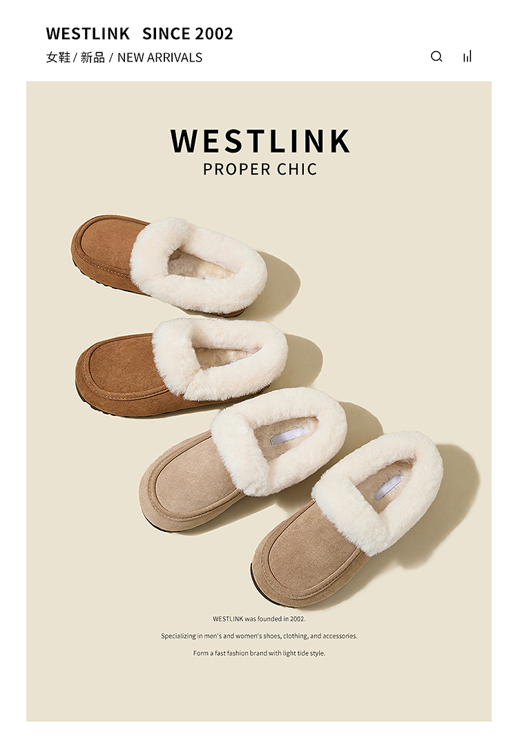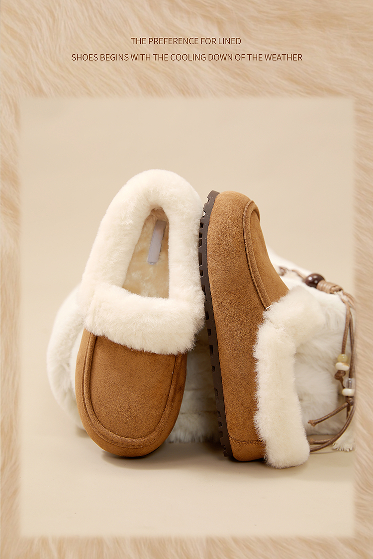 西遇雪地靴半拖女新款秋冬加绒保暖外穿勃肯棉鞋乐福毛毛拖鞋V2457349