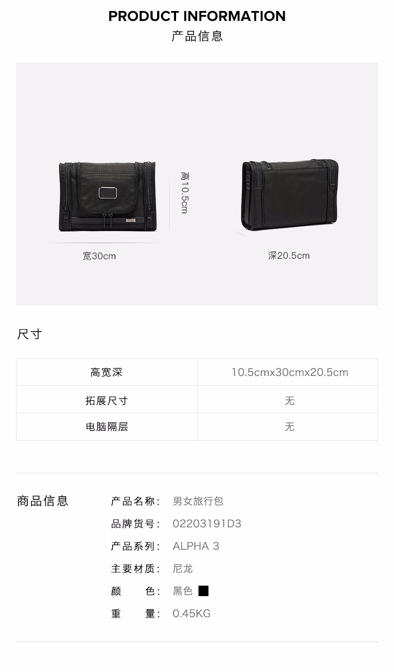 TUMI 男款洗漱包 TM02203191D3-F .【刻字后发出的商品,不支持退换货服务】