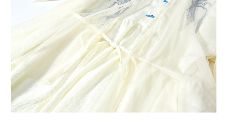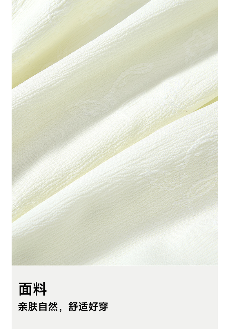 两三事自在如风 春季新款复古公主袖褶皱v领两件套连衣裙长裙