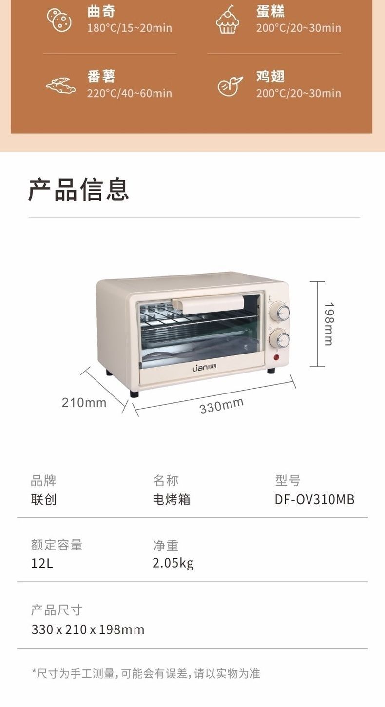 联创 电烤箱 DF-OV310M 家用小型烘焙多功能烤箱