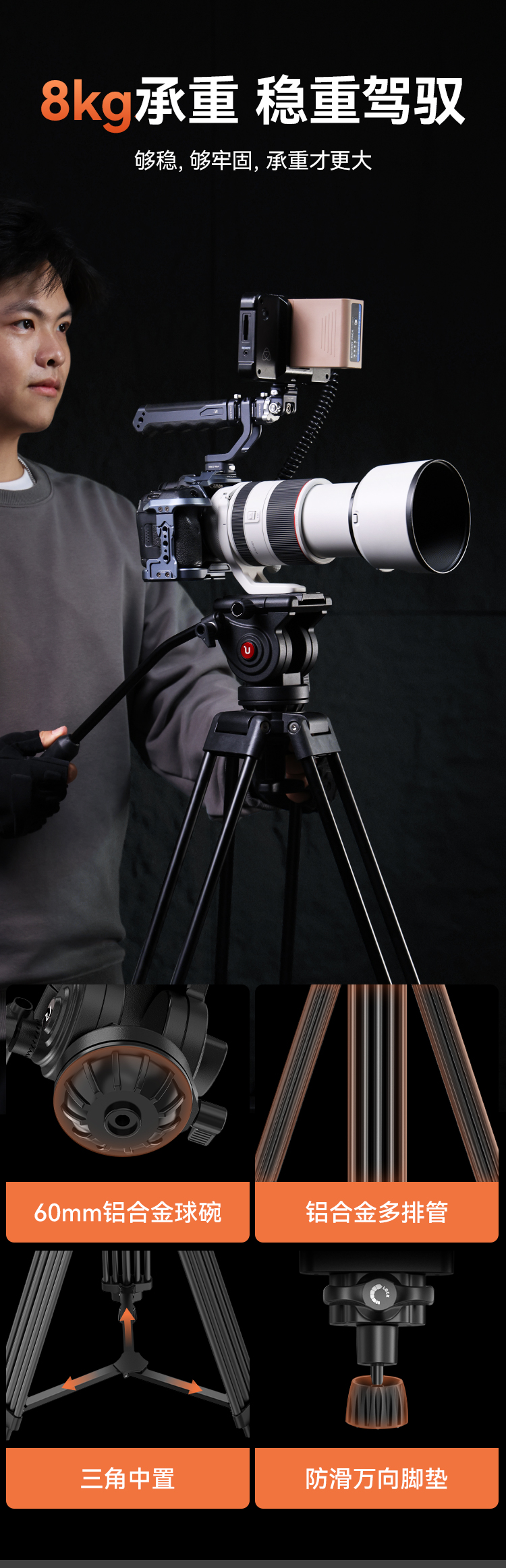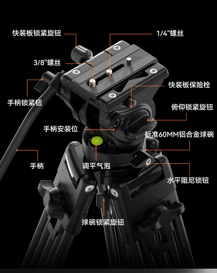 Ulanzi优篮子MT81摄像机三脚架专业摄影摄像直播支架电影级电影机三脚架相机单反镜头支架液压阻尼云台