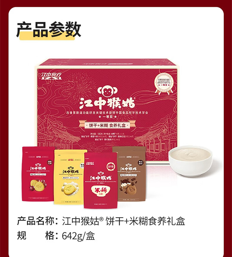 江中猴姑食养礼盒装642g(210g米稀+432g饼干)