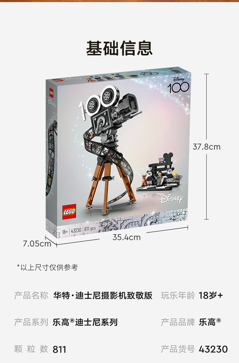 乐高积木L43230乐高迪士尼系列华特·迪士尼摄影机致敬版