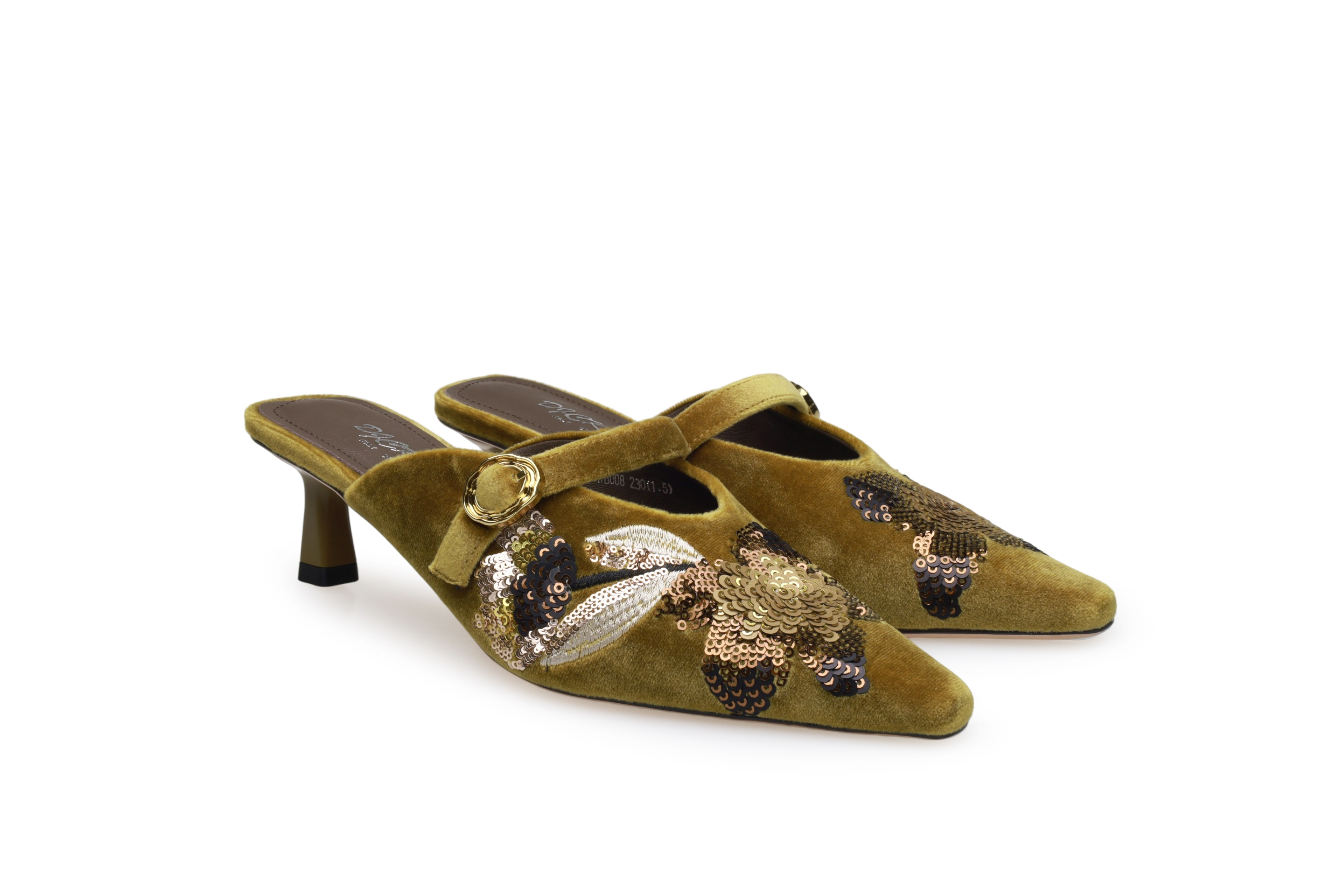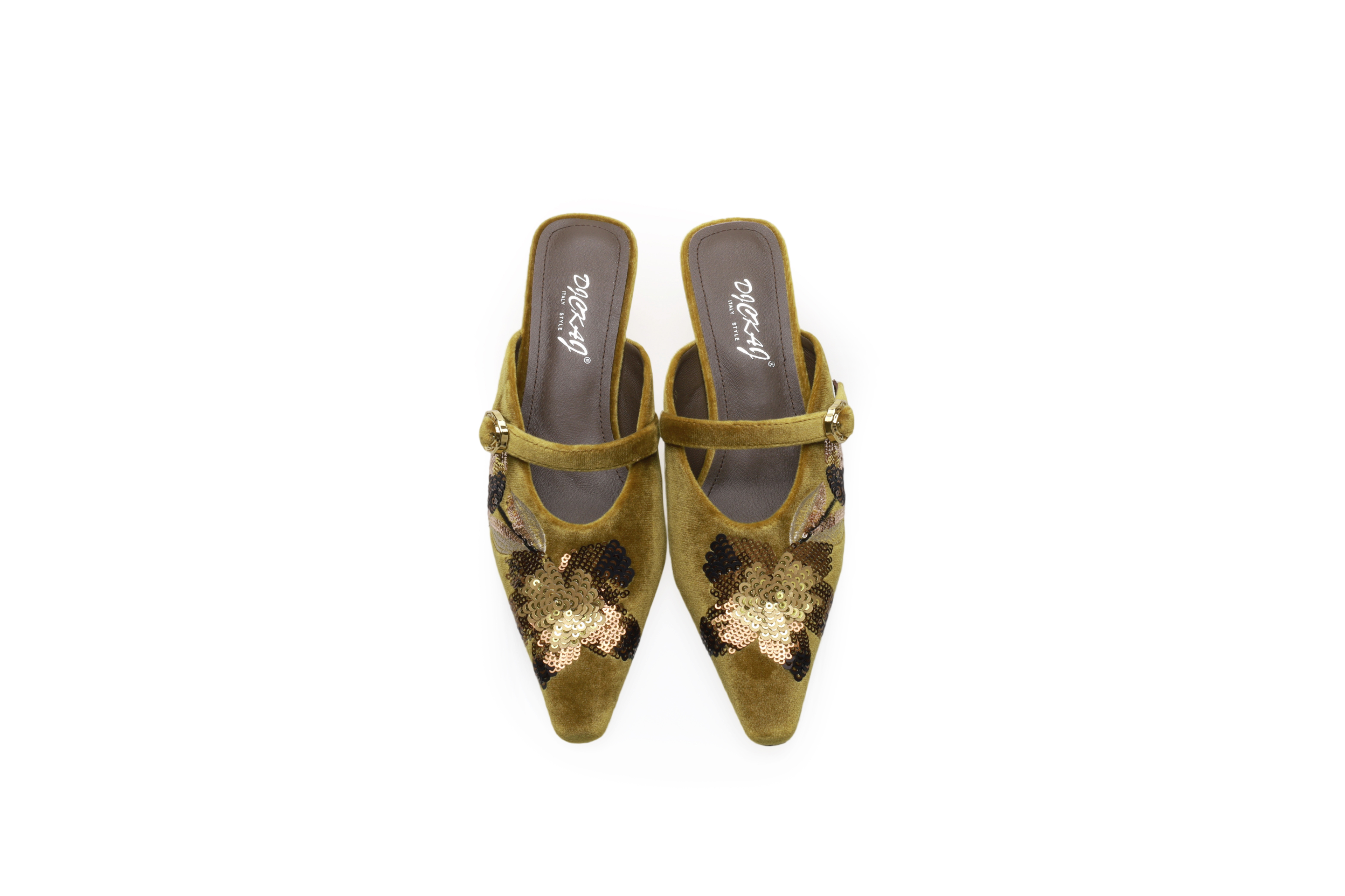 豪麟名鞋迪嘉女鞋穆勒鞋织物DJYYA61WB008黄色