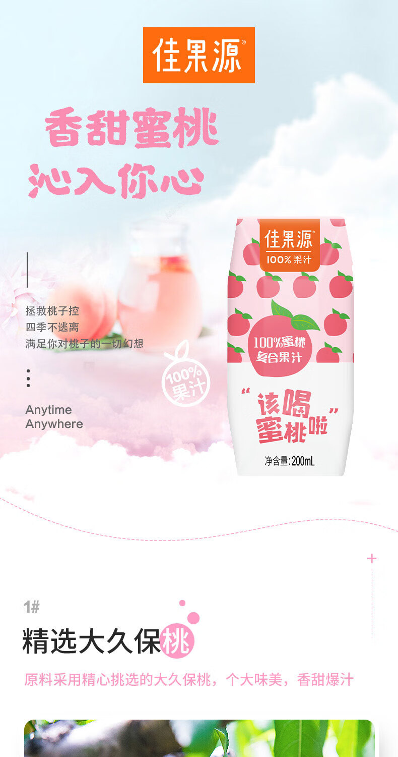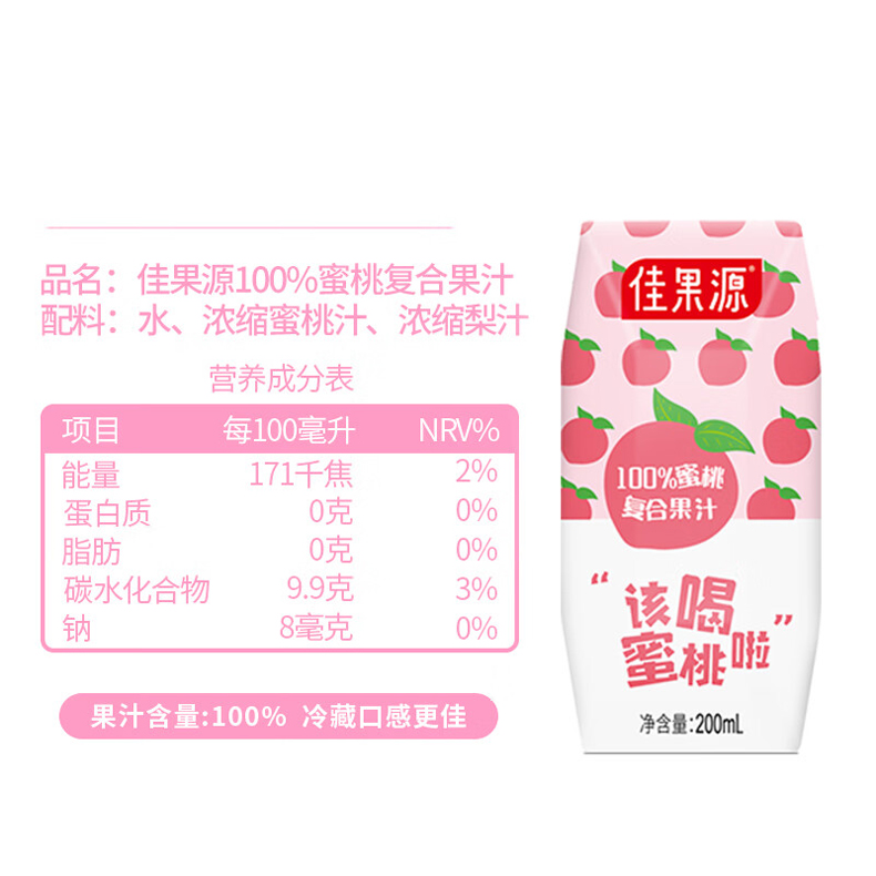 佳果源 100%蜜桃复合果汁200ml*12盒