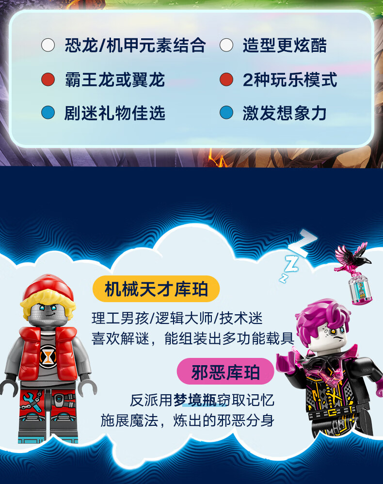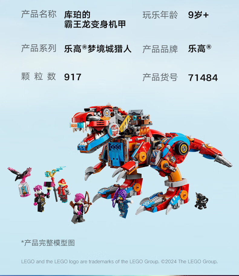 乐高积木L71484 梦境城猎人库珀的霸王龙变身机甲