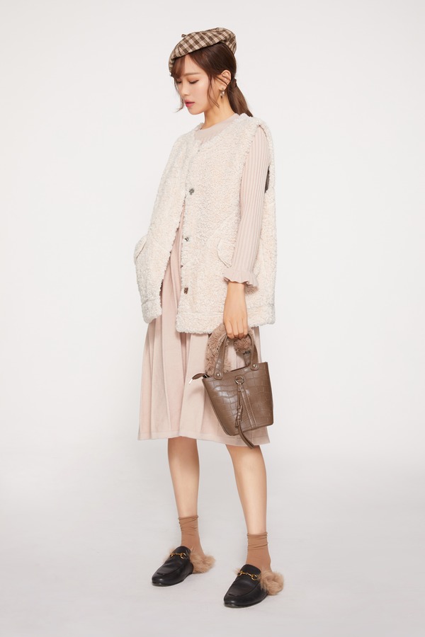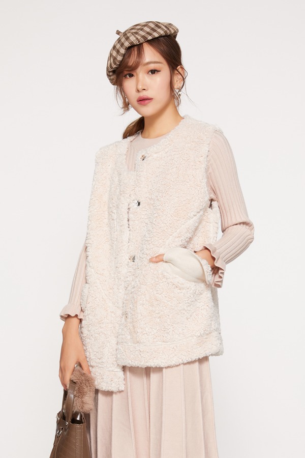 ELLA JADE 米白色颗粒绒马甲 10074