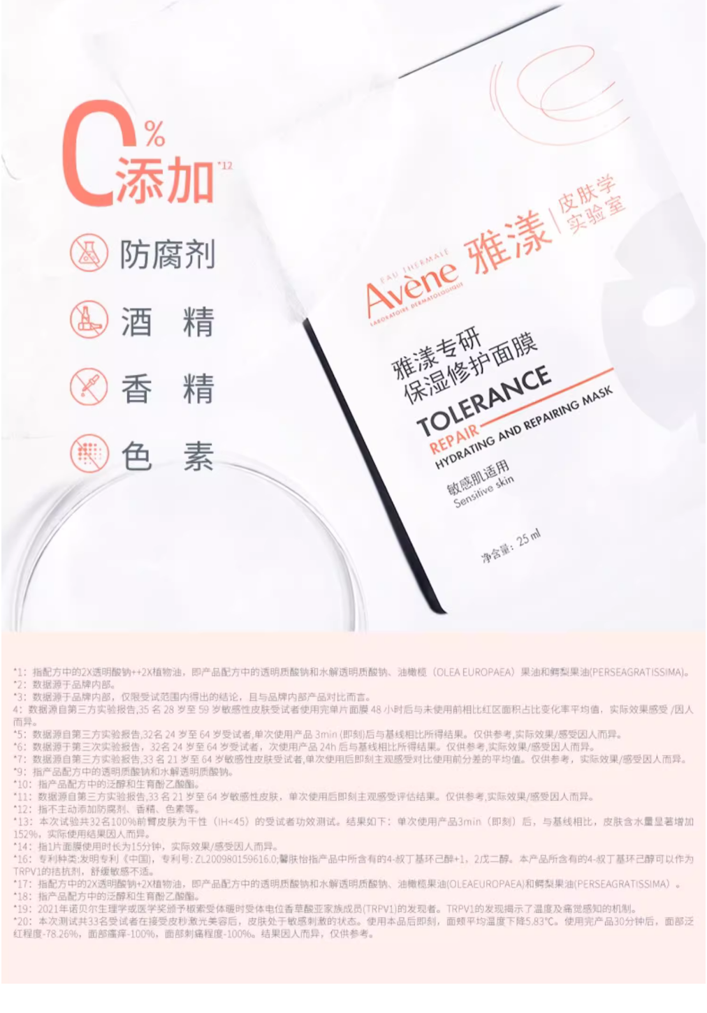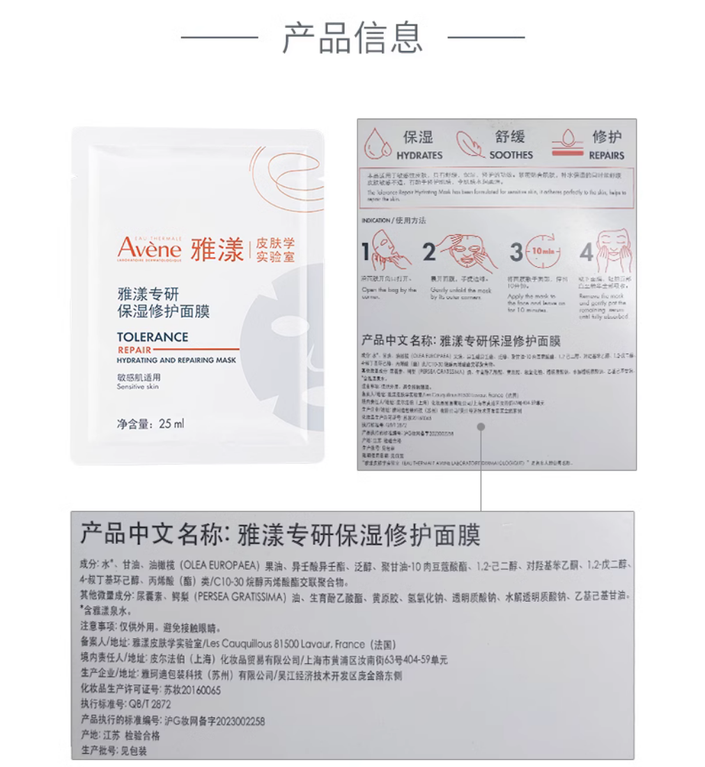 【品名】雅漾专研保湿修护面膜*10片
