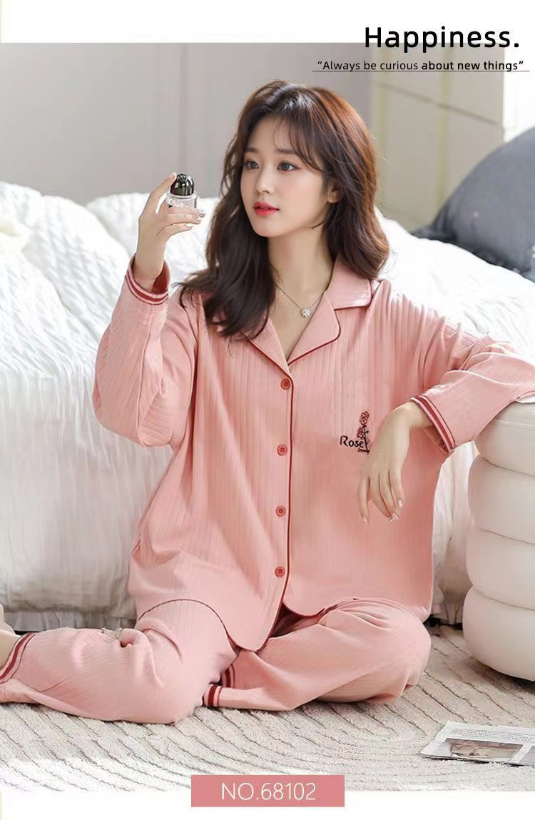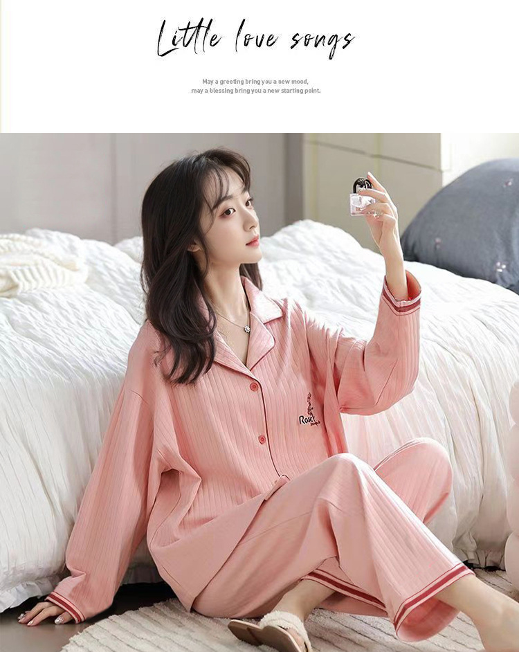 【带胸垫新款睡衣】 女春秋款纯棉长袖大码一体式高级感秋季女款家居服套装