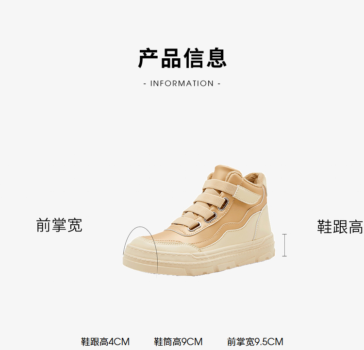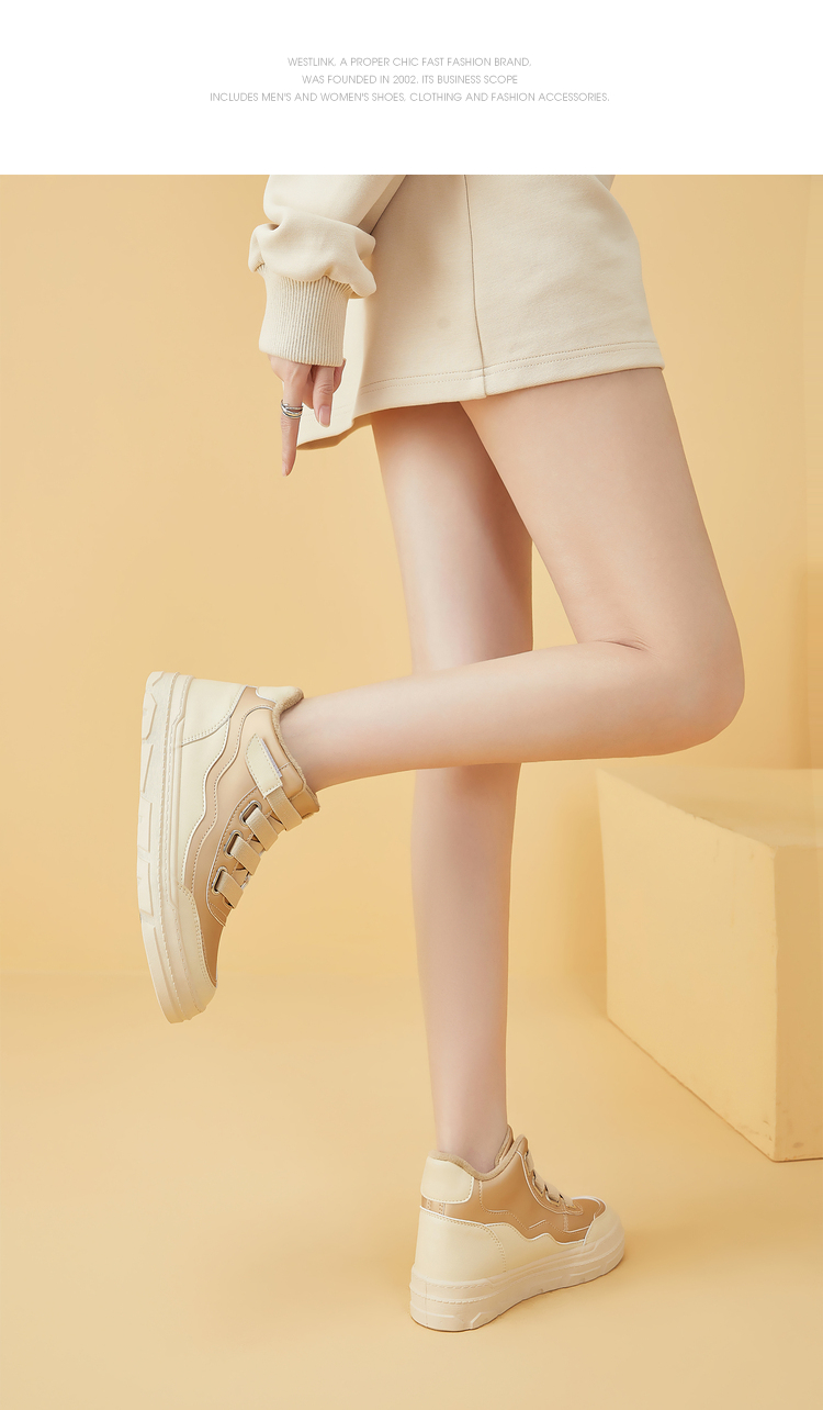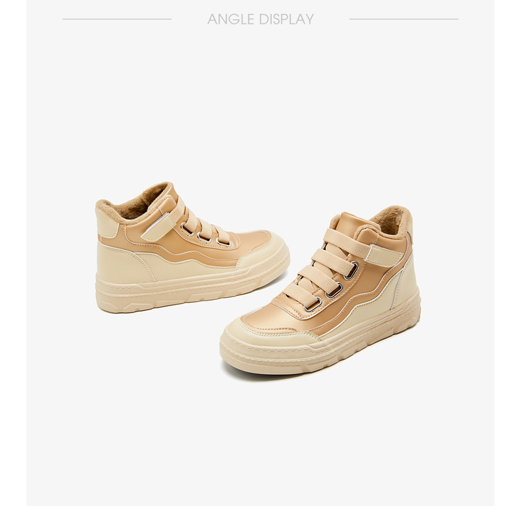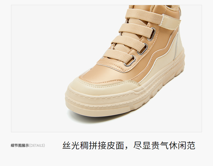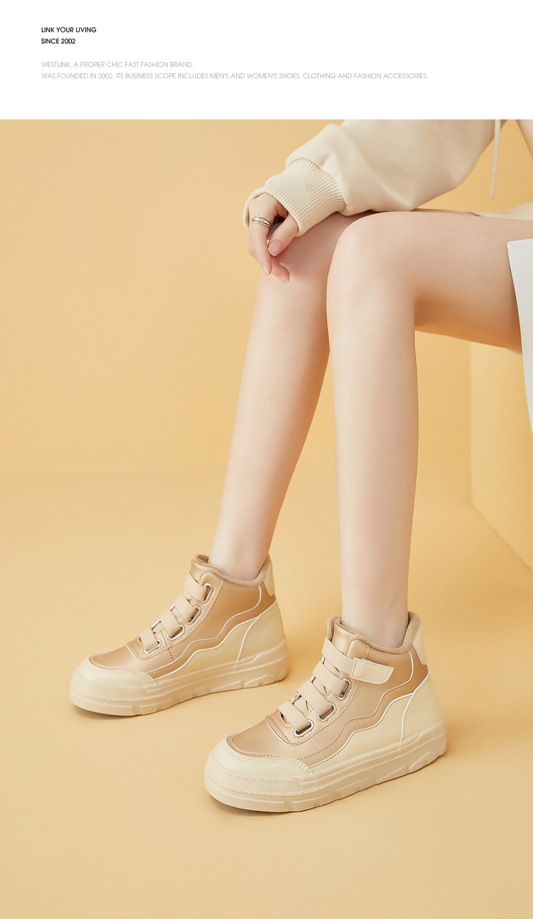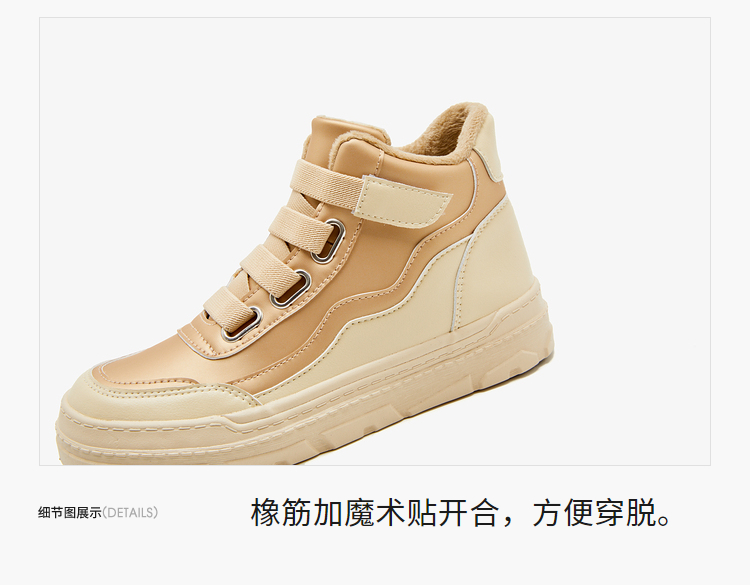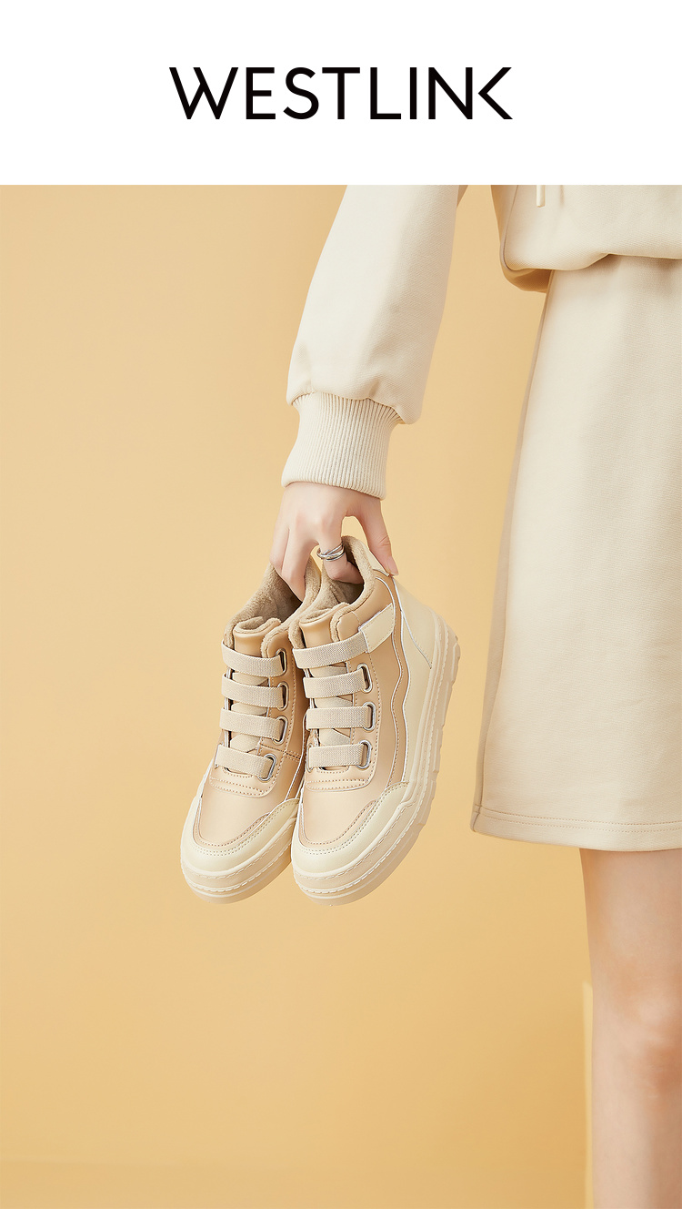 西遇高帮板鞋女2023新款秋冬山系户外加绒魔术贴短靴子运动休闲鞋22034136