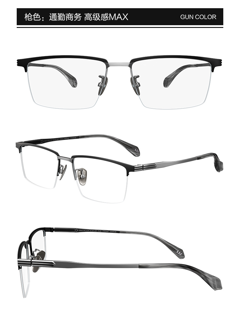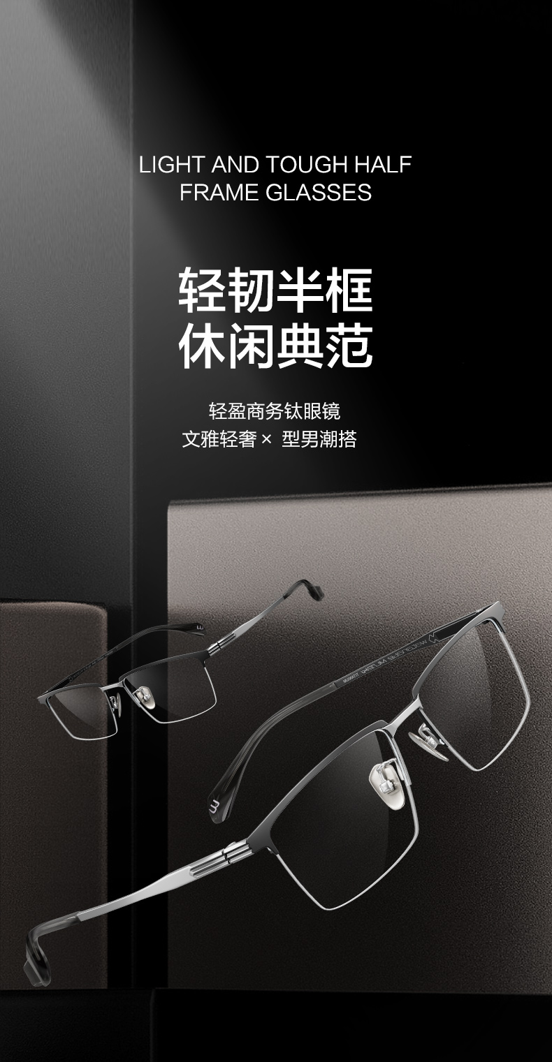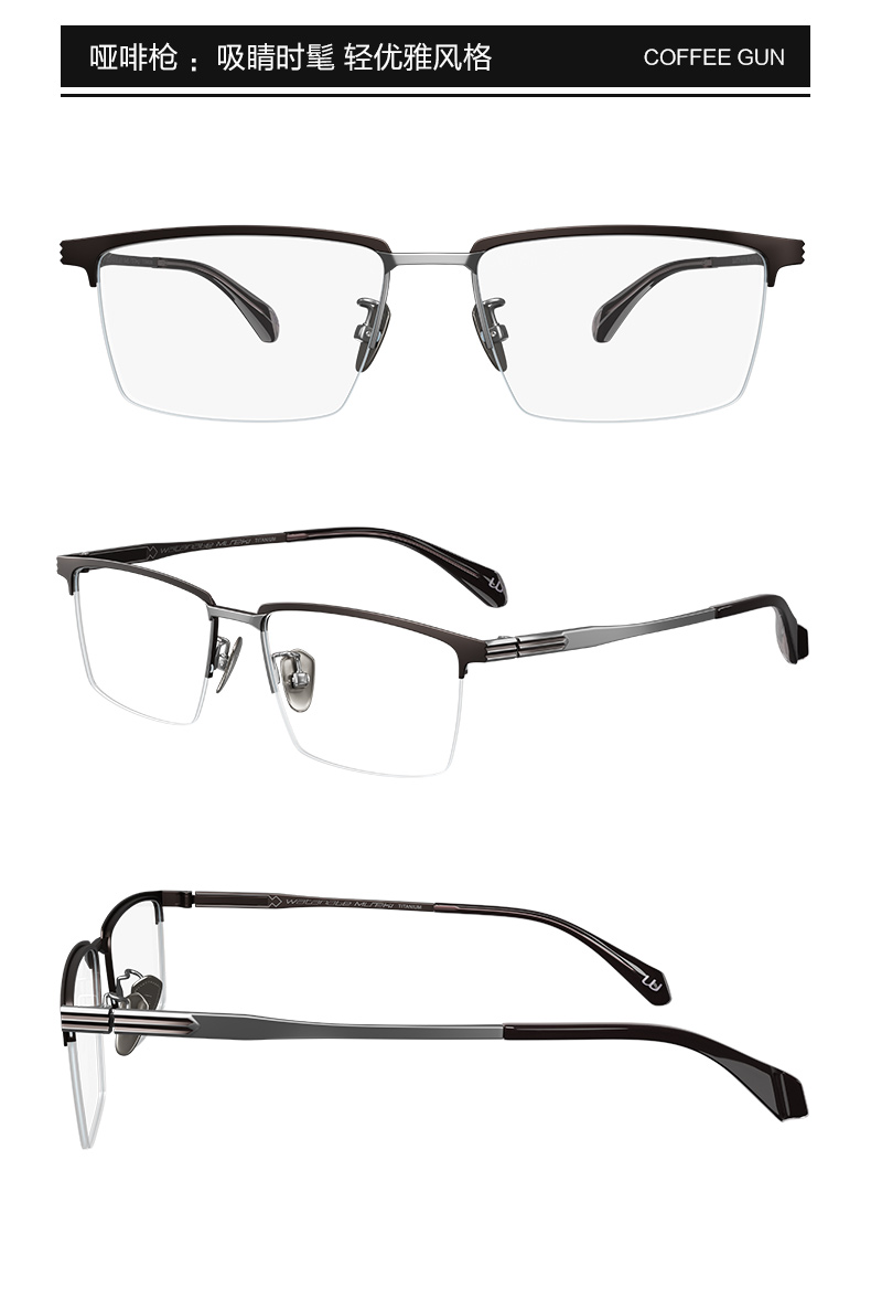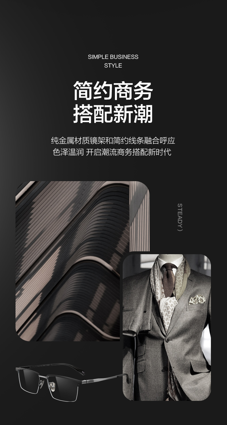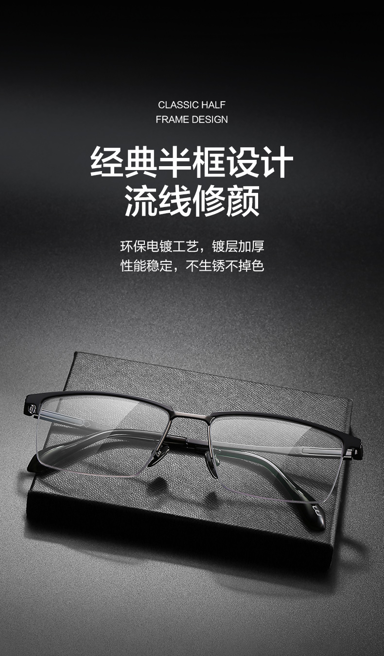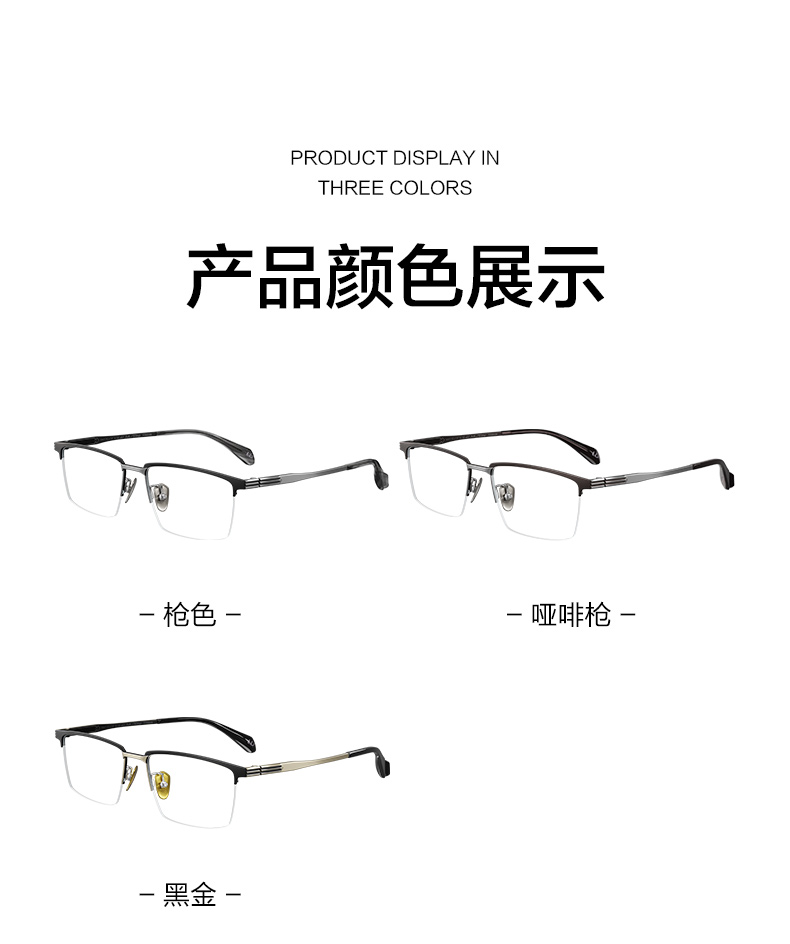 普莱斯光学镜框B8561 经典全框 半钛材质 舒适鼻托 稳固桩头 复古休闲 三色可选