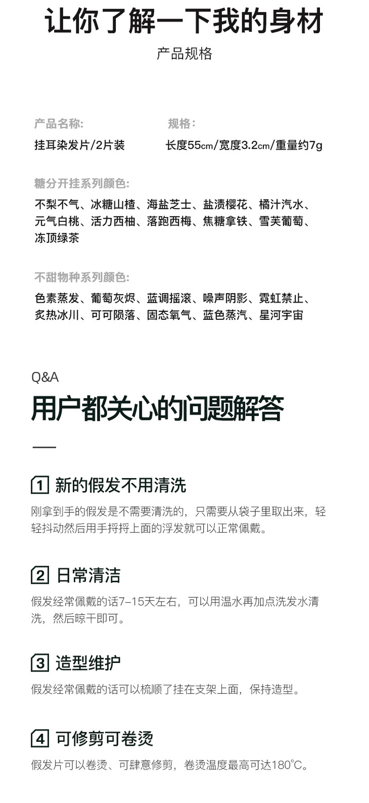 【品牌5折内购会】【19.9任选3件-包邮】Spēs假发片彩色挂耳片 多种发色随心选 xc