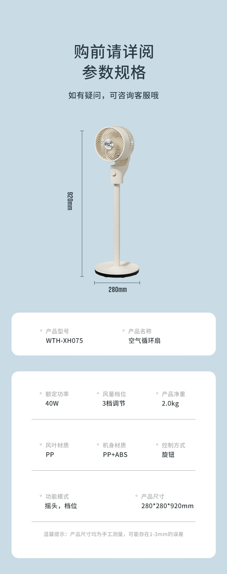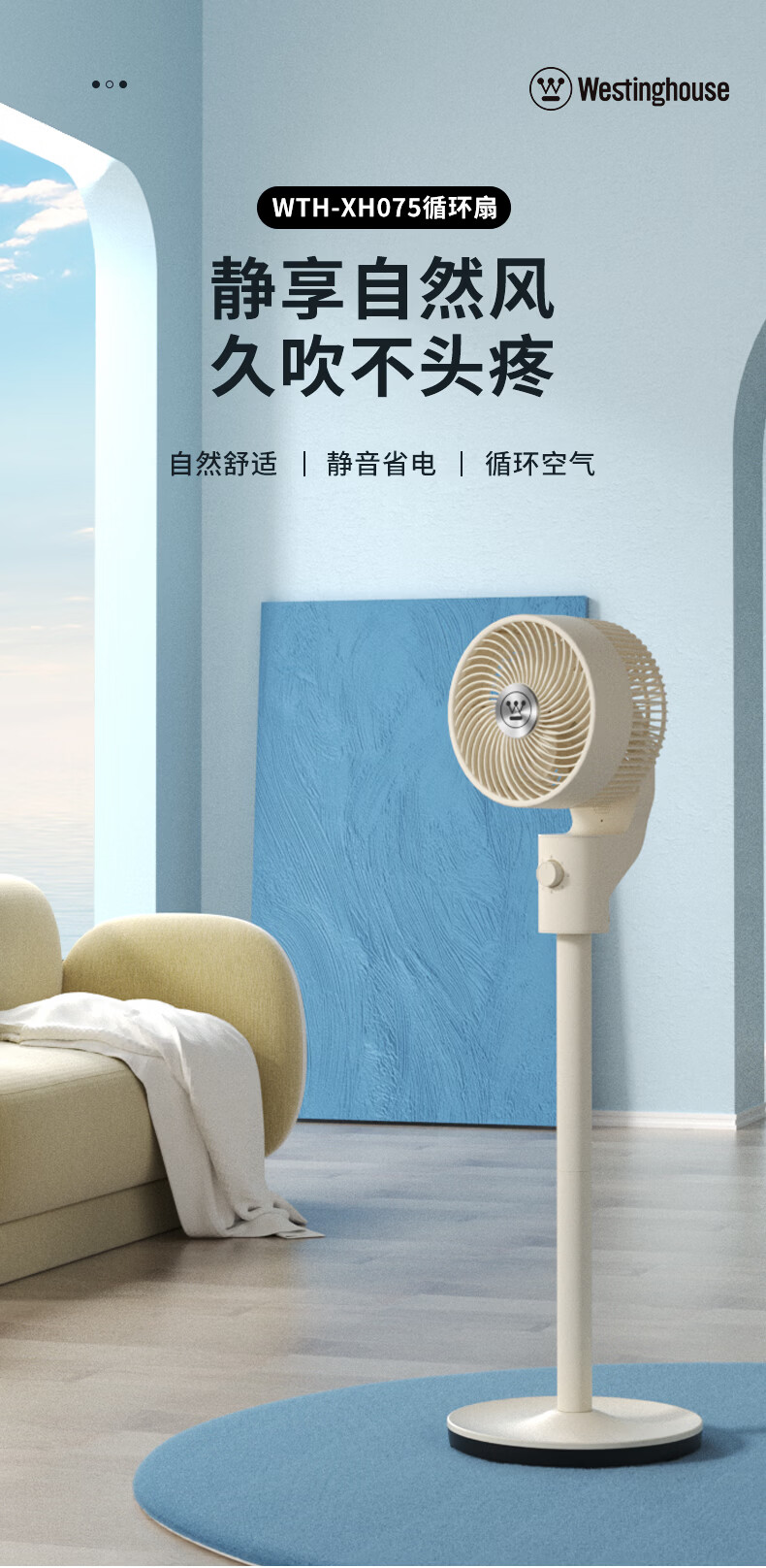 【西屋高性价比空气循环扇】空气循环扇机械控制落地扇家用卧室桌面台式宿舍超静音节能涡轮大风力对流换气扇摇头 WTH-XH075