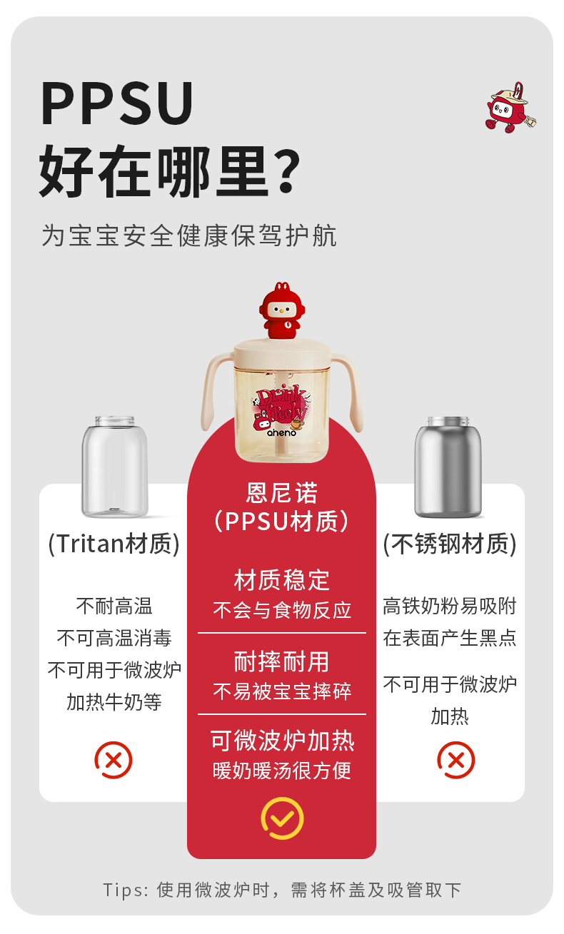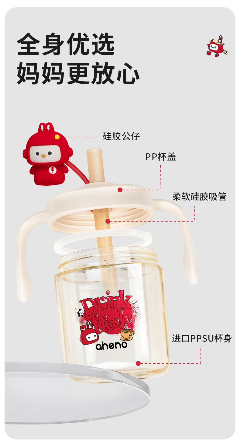 恩尼诺-A504 PPSU成长新章·PPSU牛奶杯 300ml 2色可选【组合】