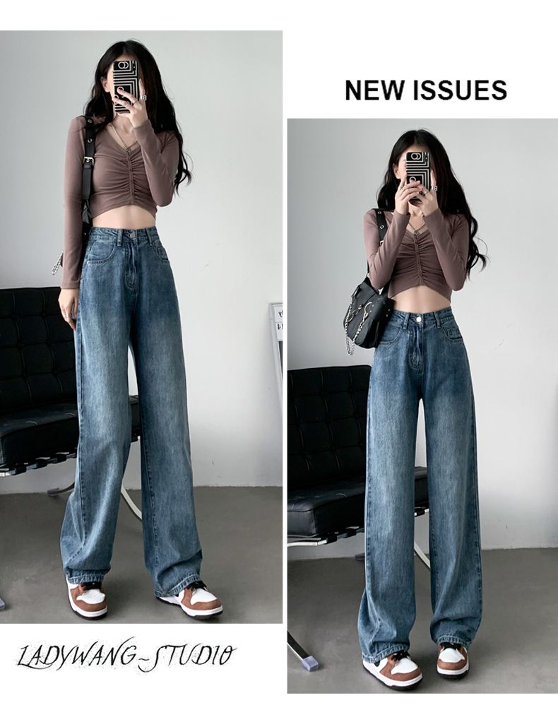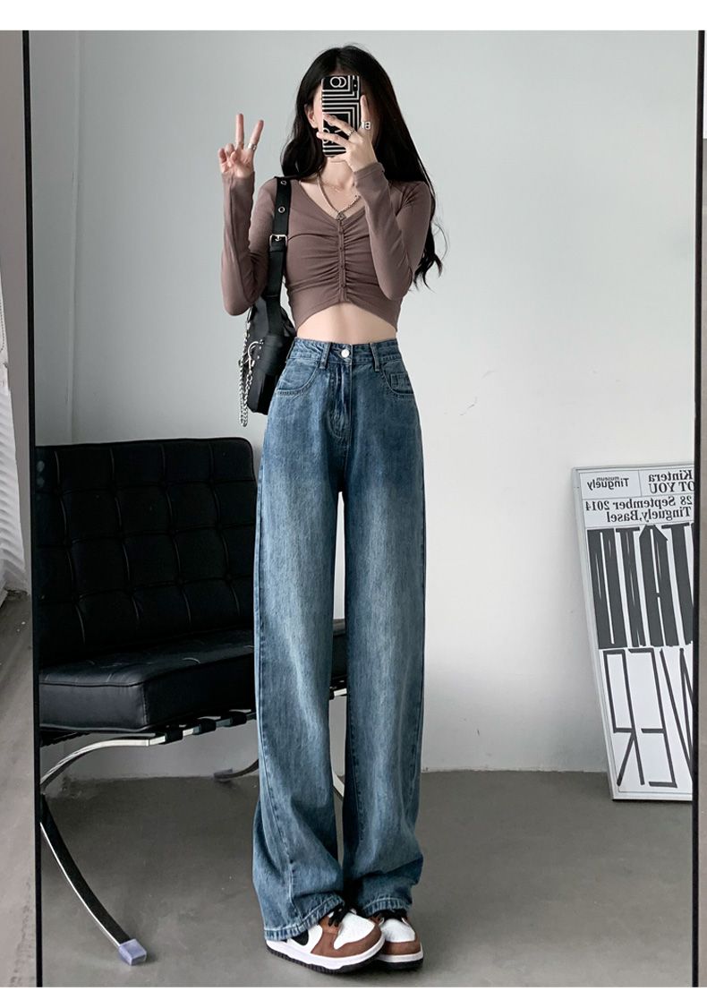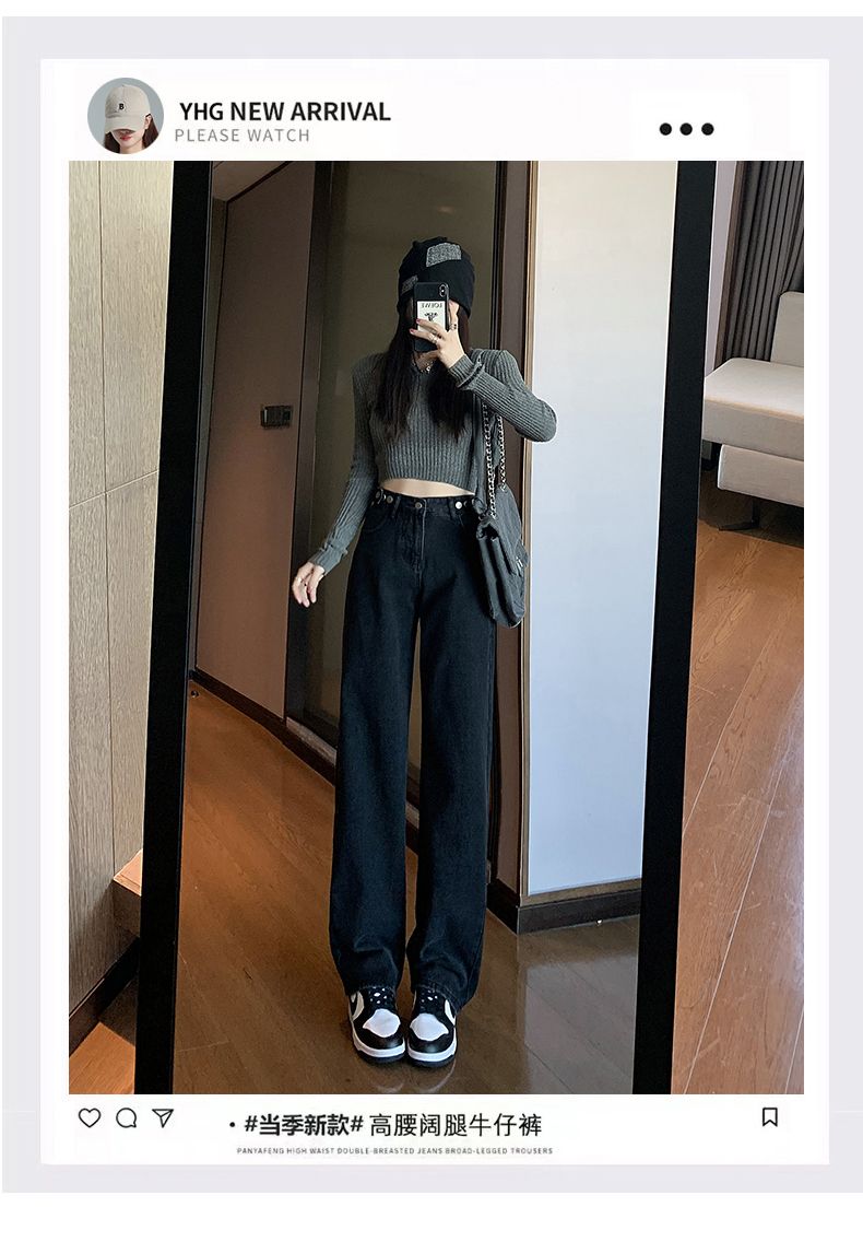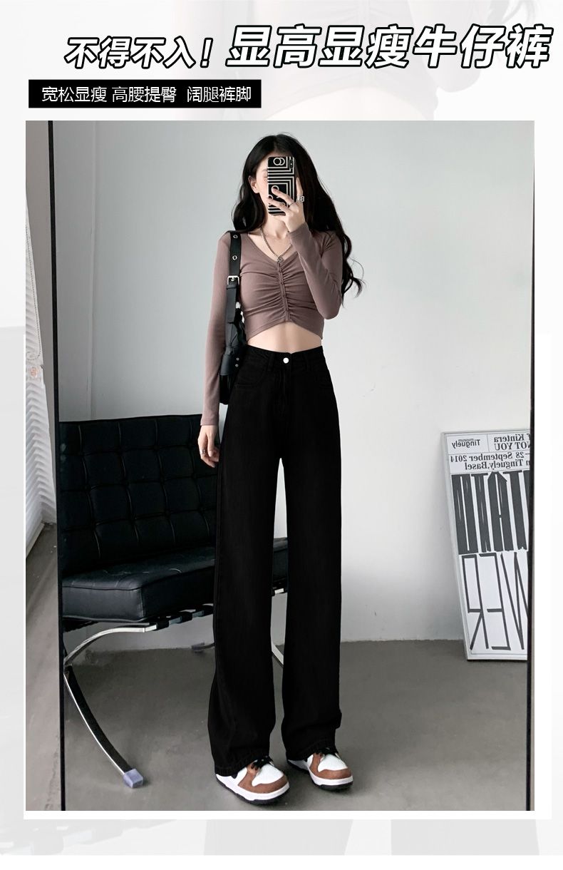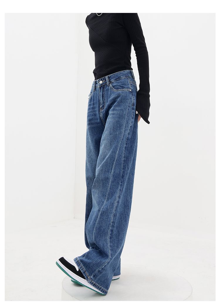 品名:高腰复古阔腿牛仔裤(九分/长裤/加长)