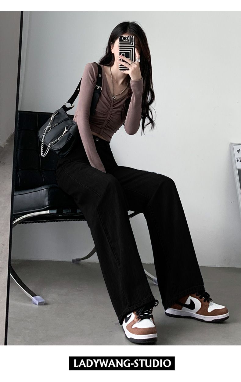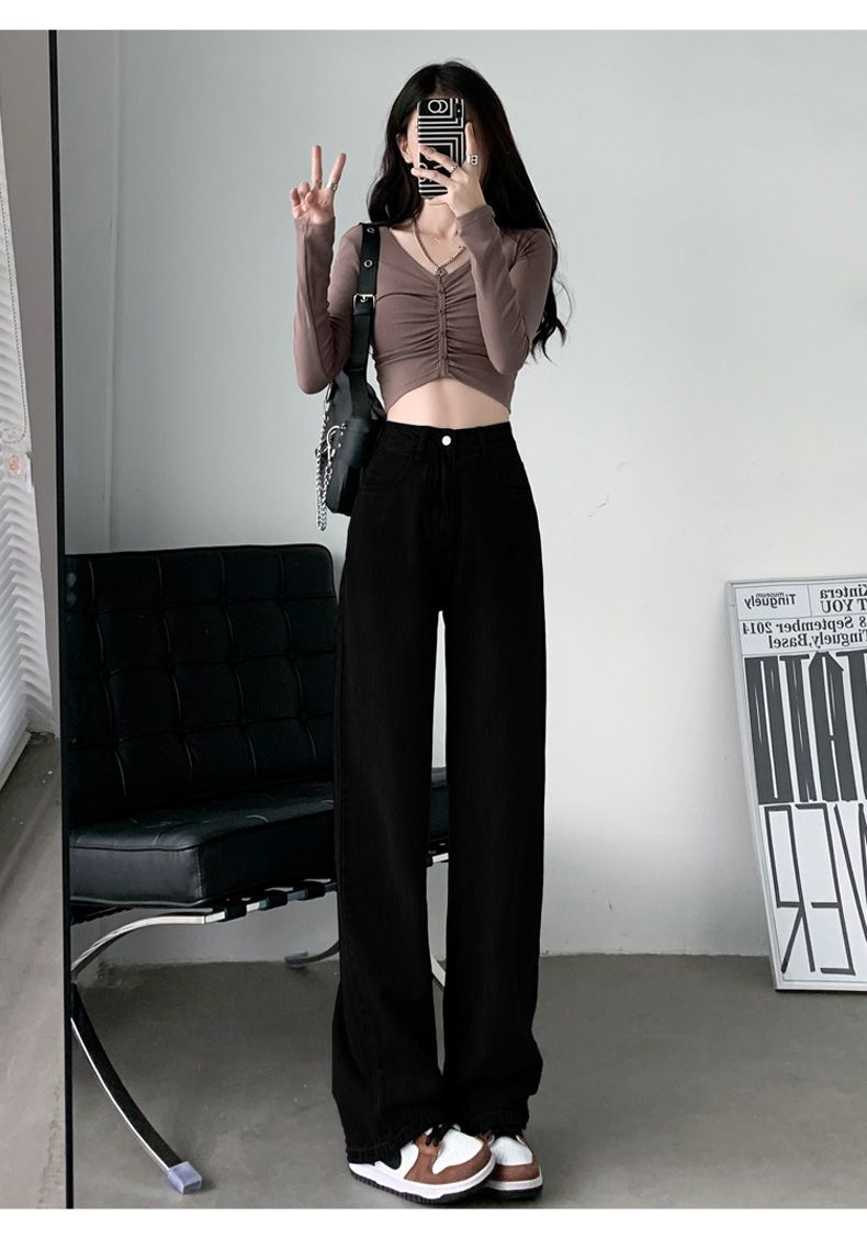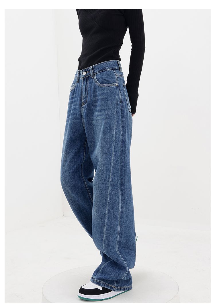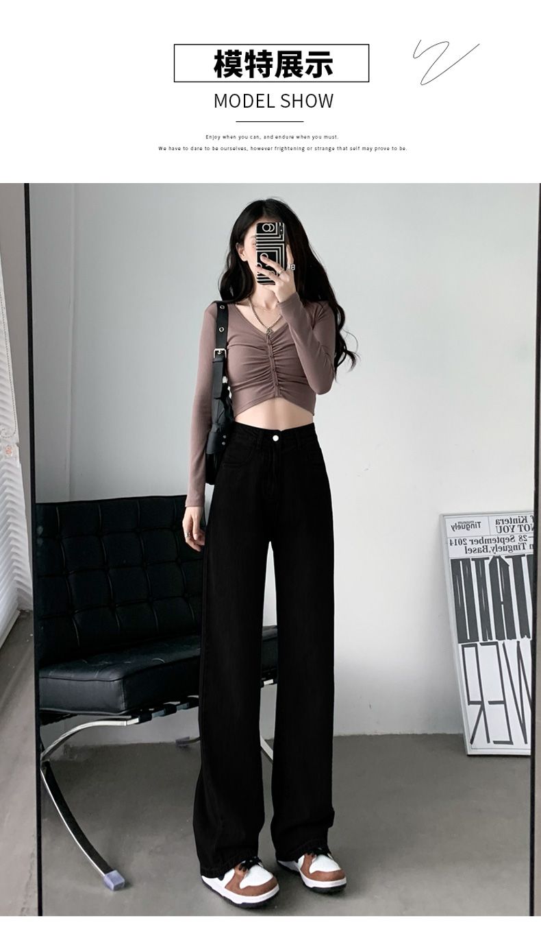 品名:高腰复古阔腿牛仔裤(九分/长裤/加长)