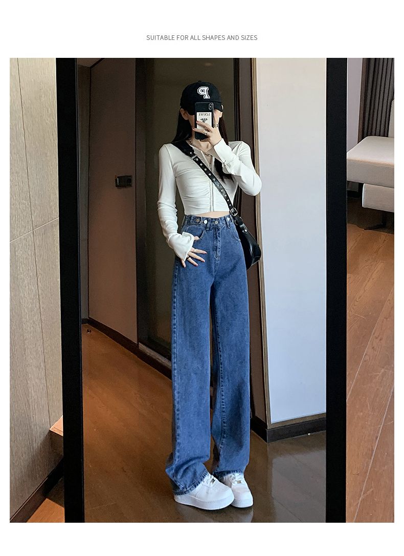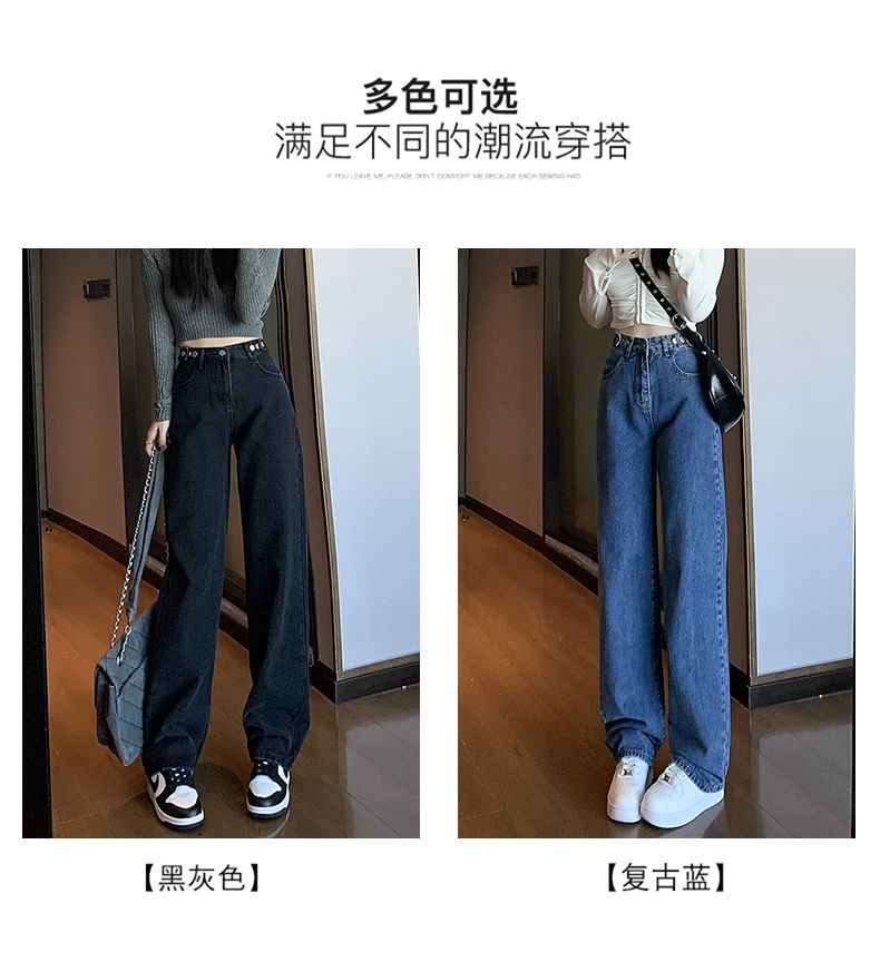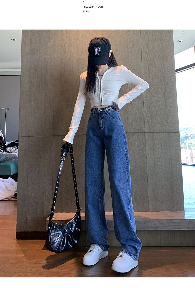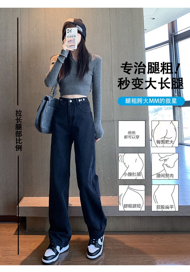 品名:高腰可调节扣阔腿牛仔裤(九分/长裤/加长)