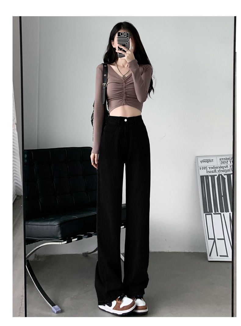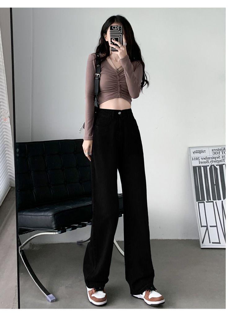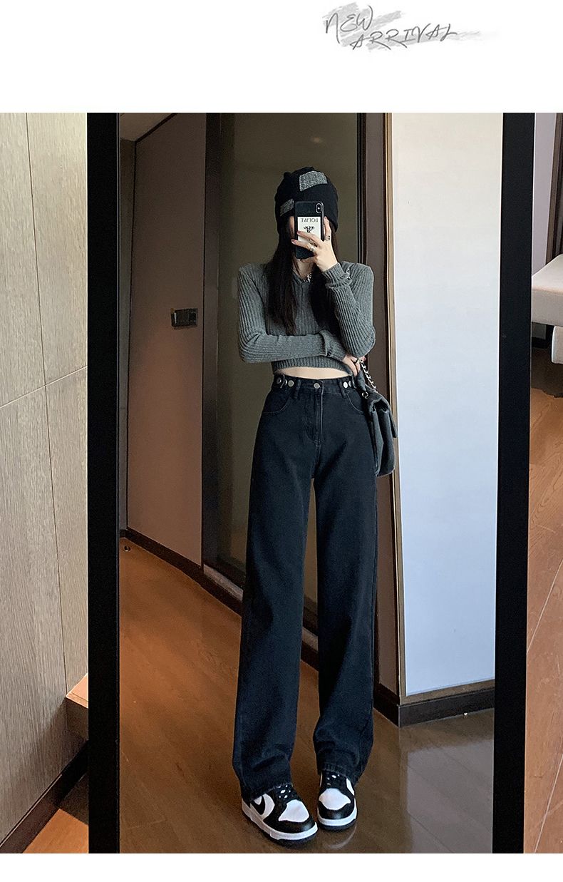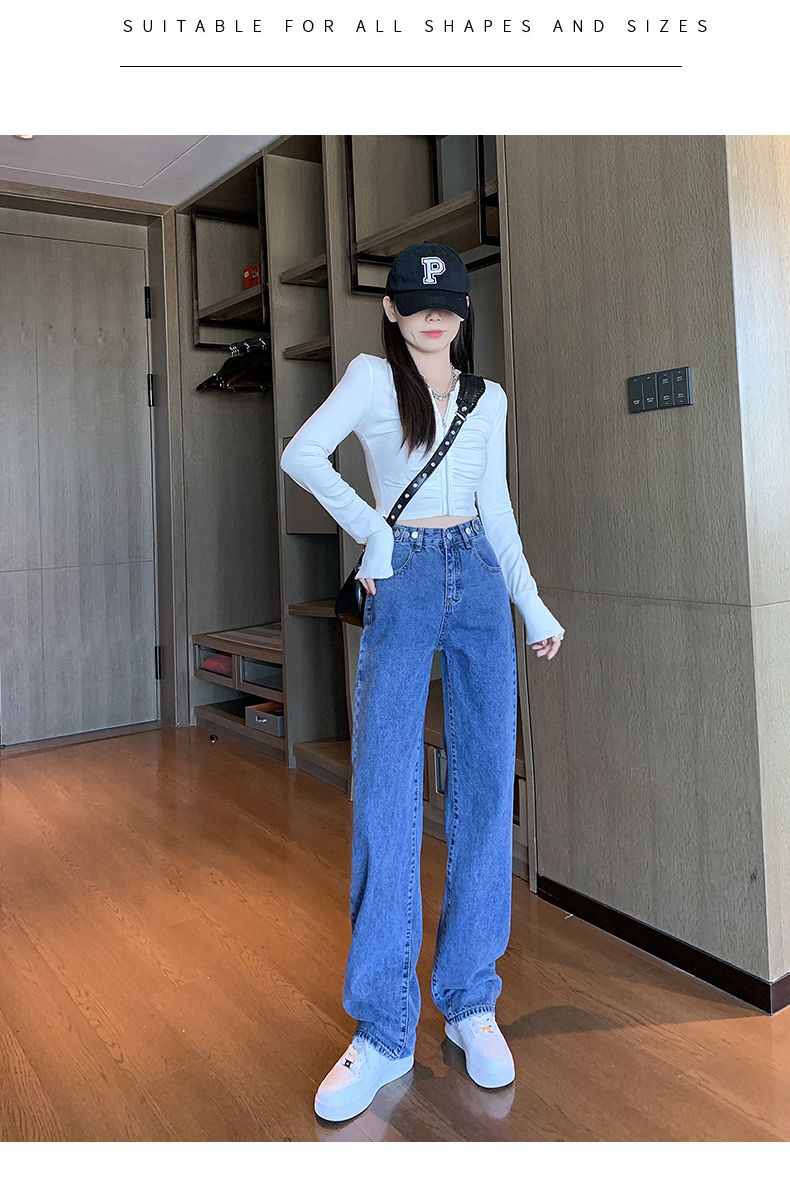 品名:高腰可调节扣阔腿牛仔裤(九分/长裤/加长)