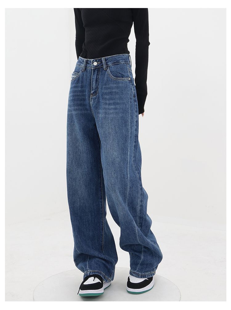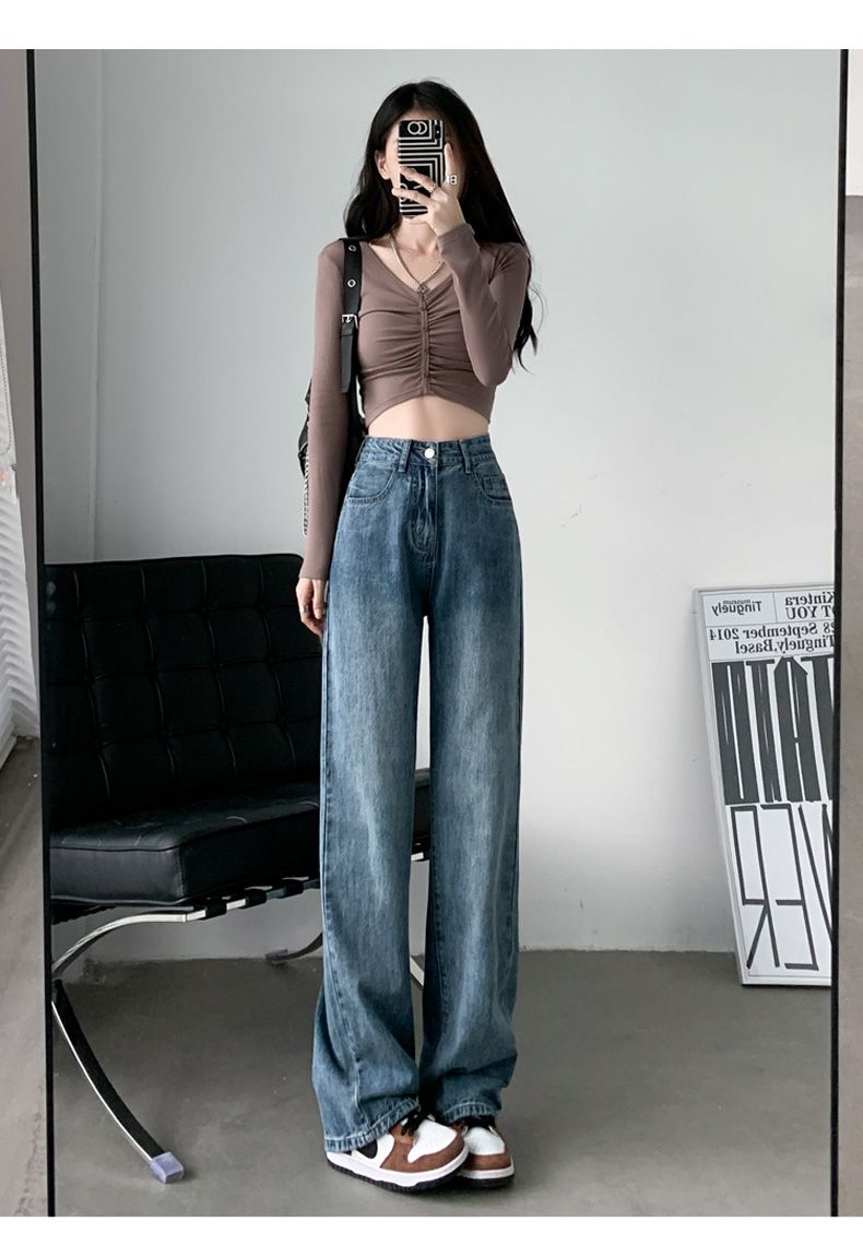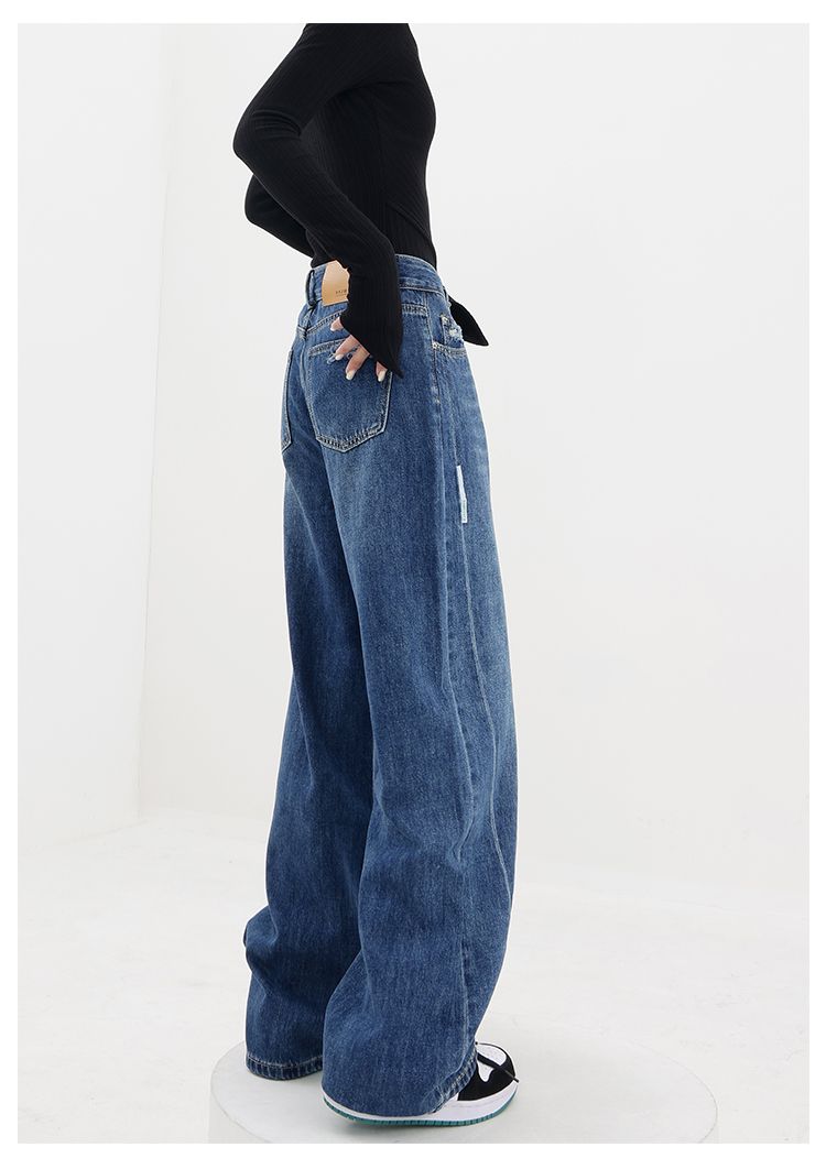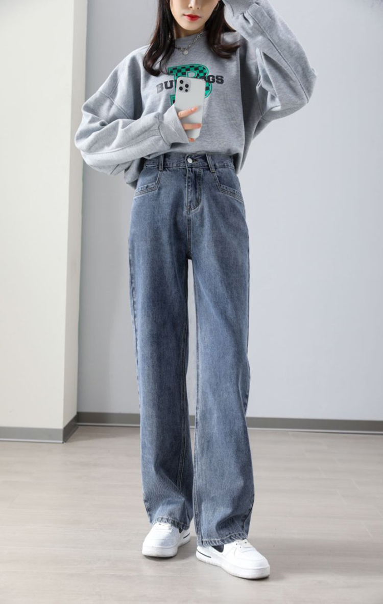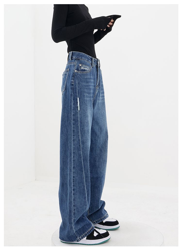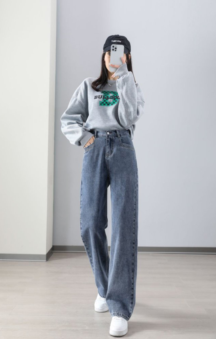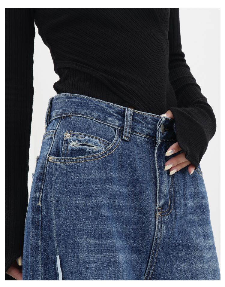高腰复古阔腿牛仔裤(九分/长裤/加长)
