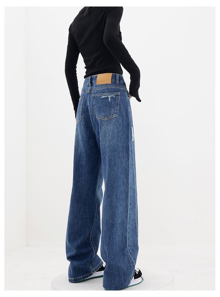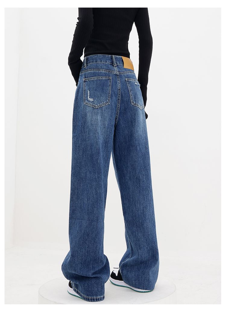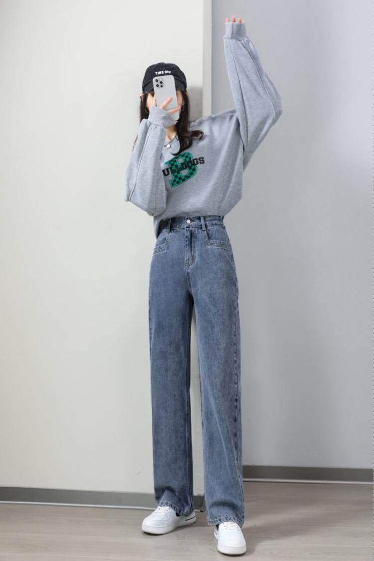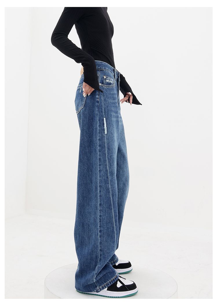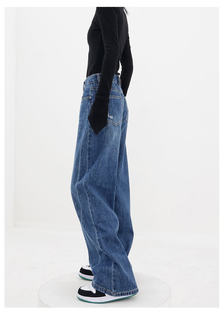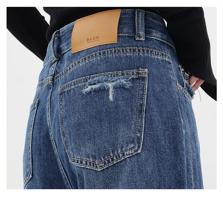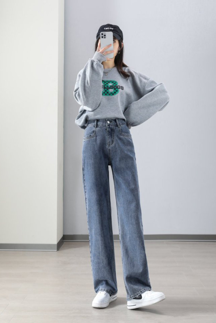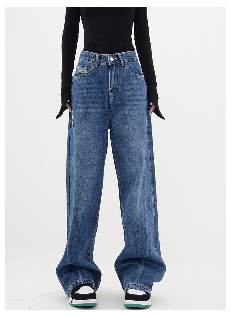 高腰复古阔腿牛仔裤(九分/长裤/加长)