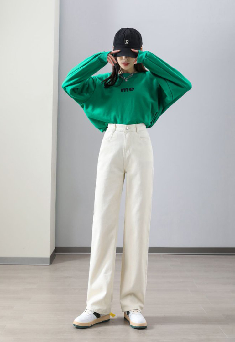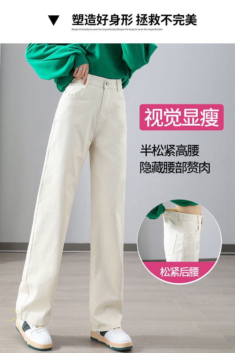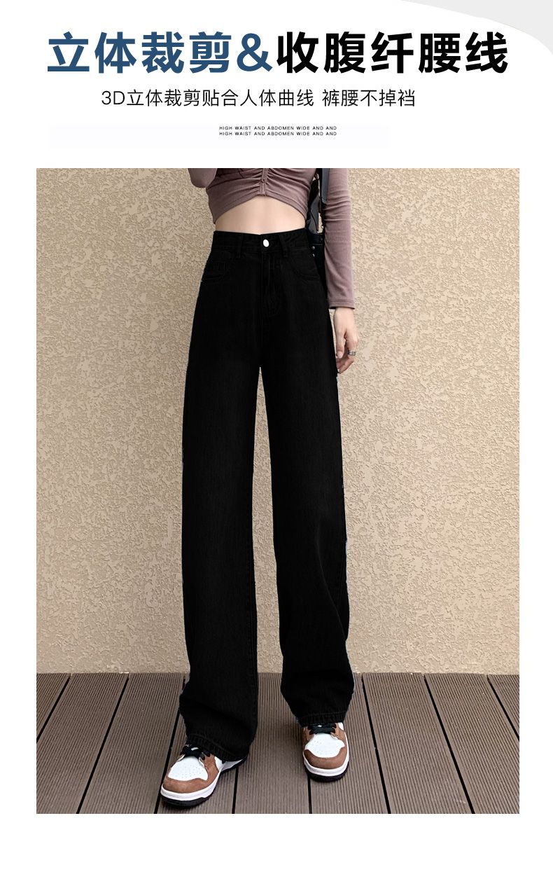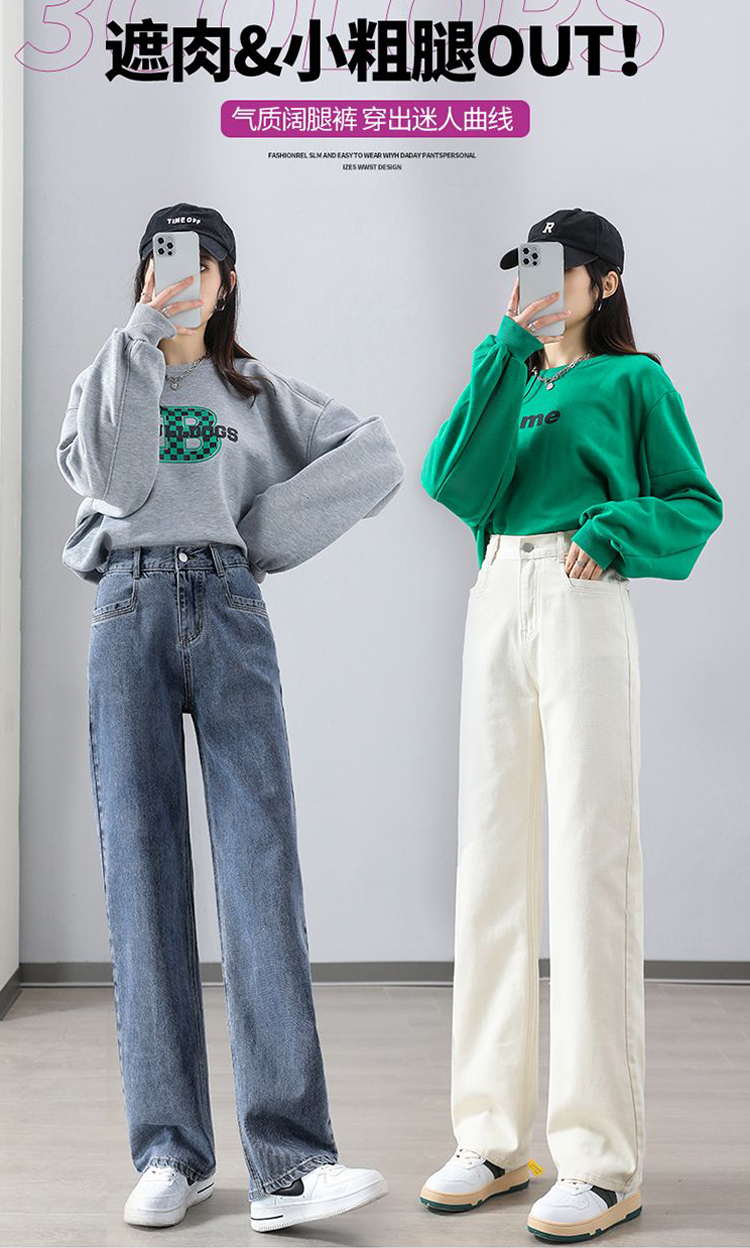 高腰可调节扣阔腿牛仔裤(九分/长裤/加长)