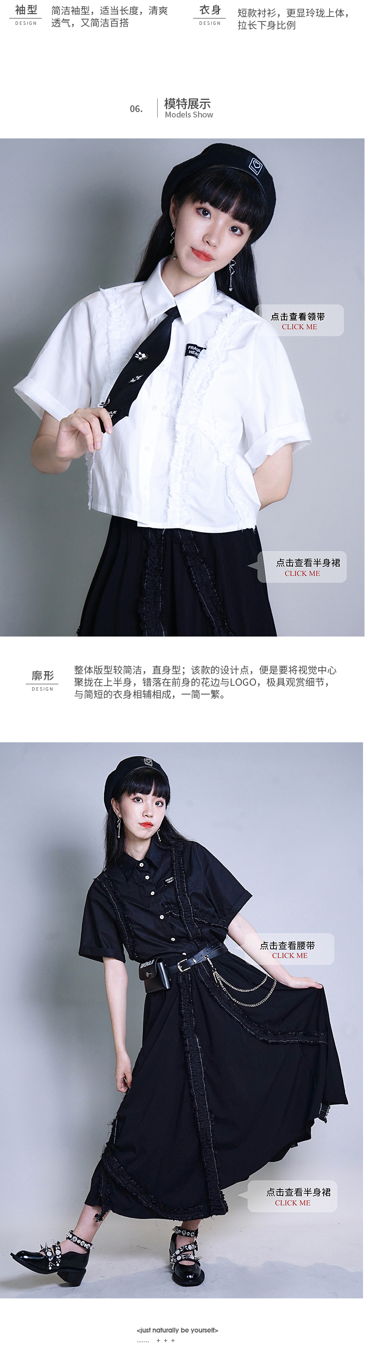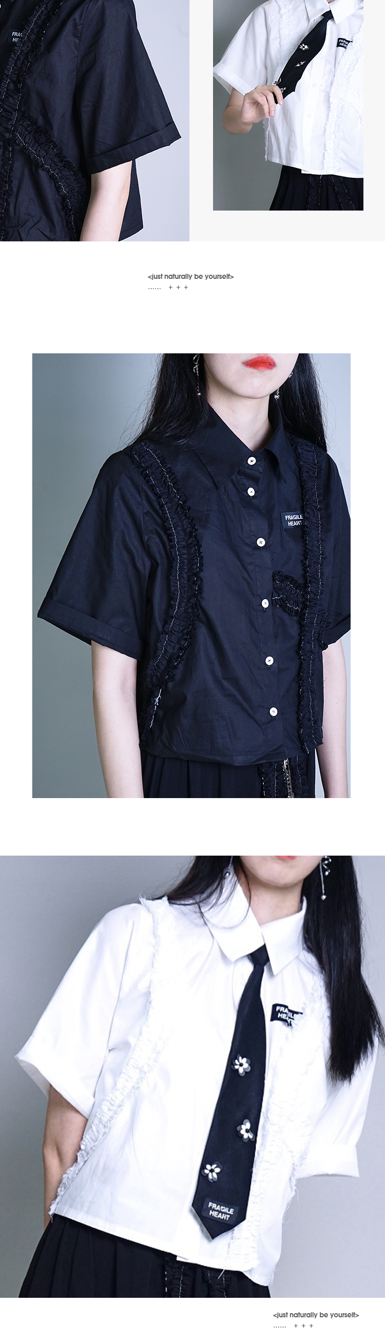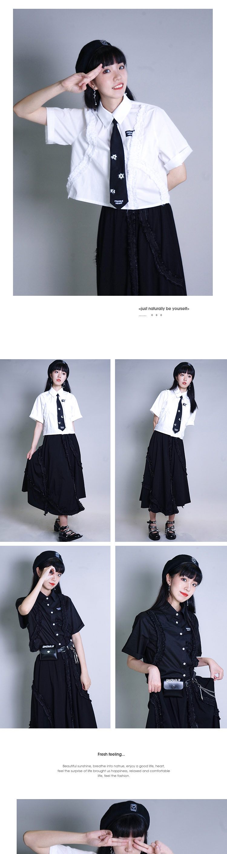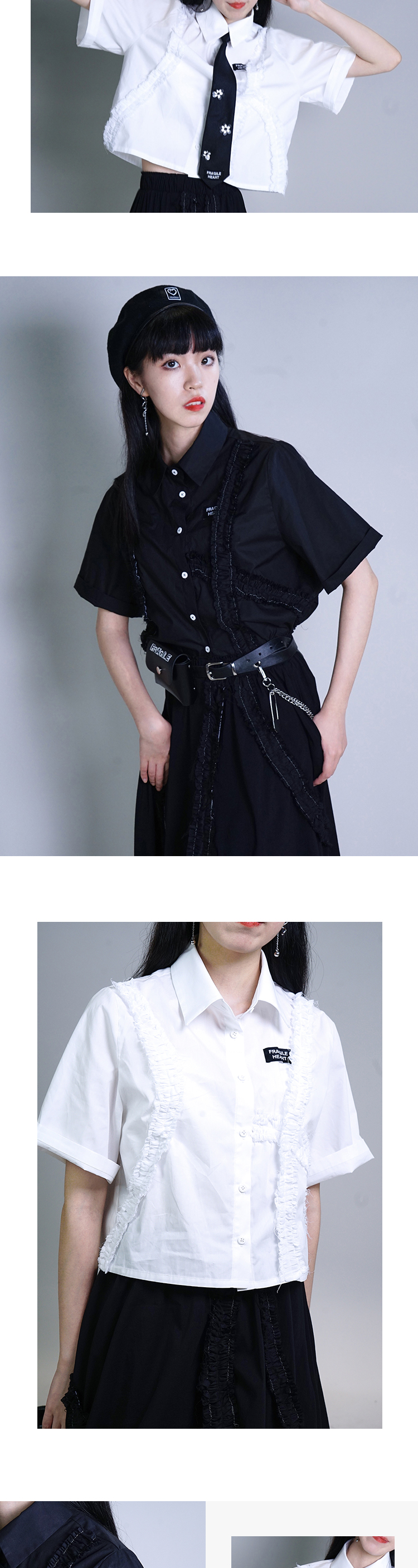 fragileheart黑白短袖衬衫女设计感小众学院风春季薄款宽松上衣
