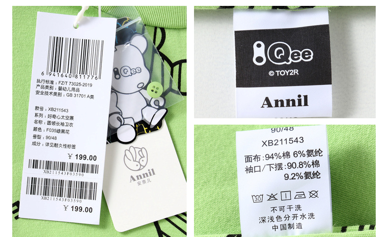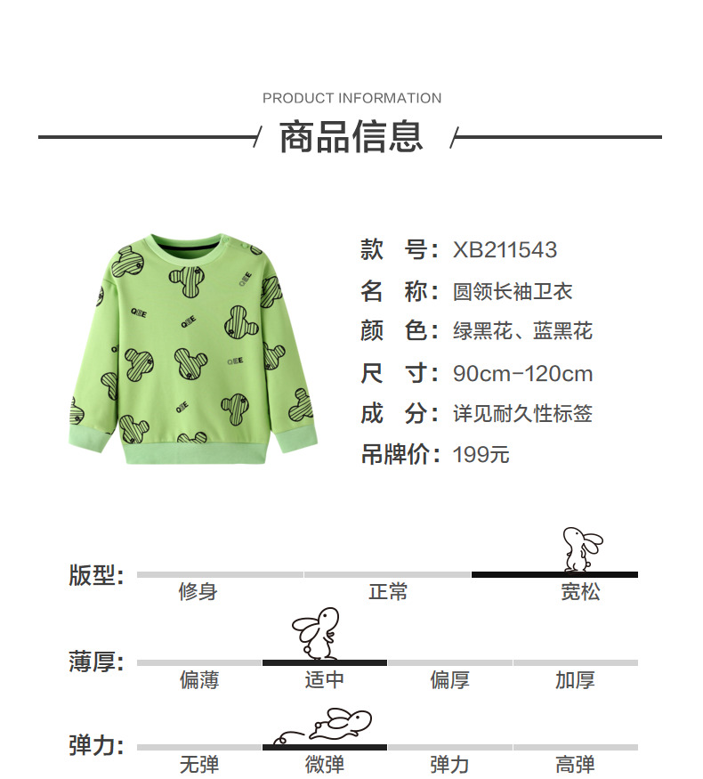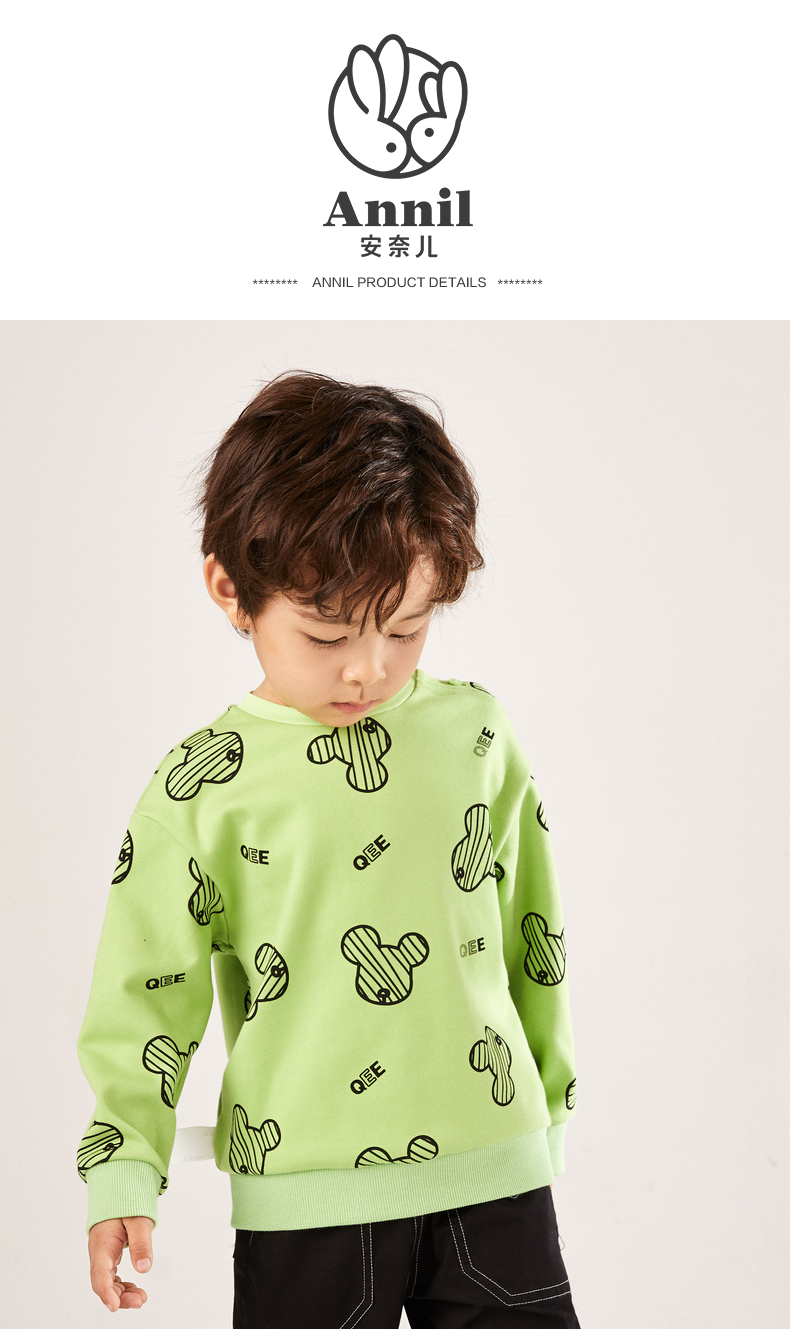 安奈儿【QEE系列IP联名】男童圆领长袖卫衣xb211543