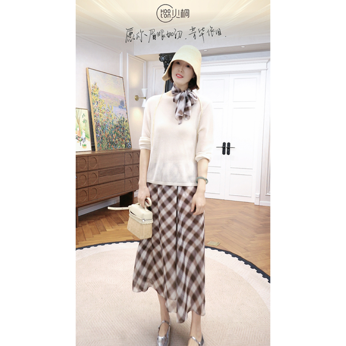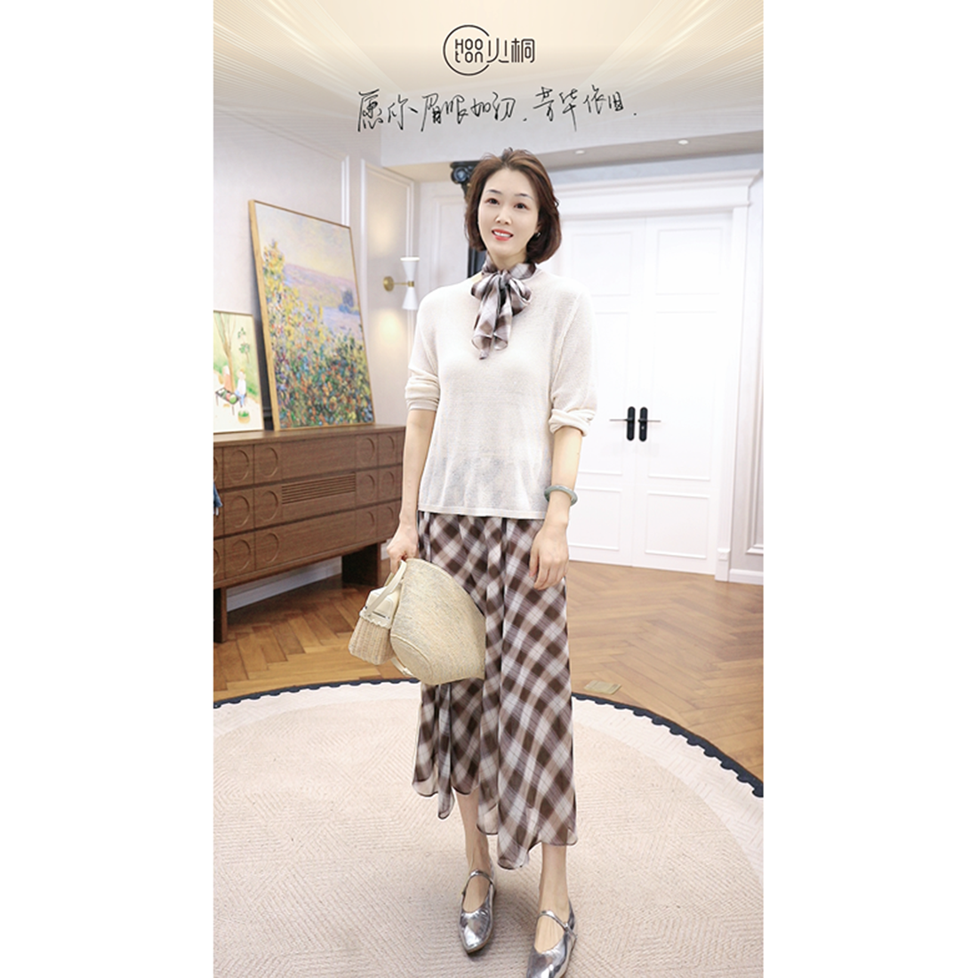火桐hooton 南洋假日 格纹桑蚕丝丝巾