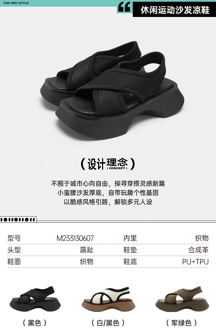 MIO米奥夏鱼嘴鞋松糕厚底沙发凉鞋时尚休闲沙滩鞋女M233130607