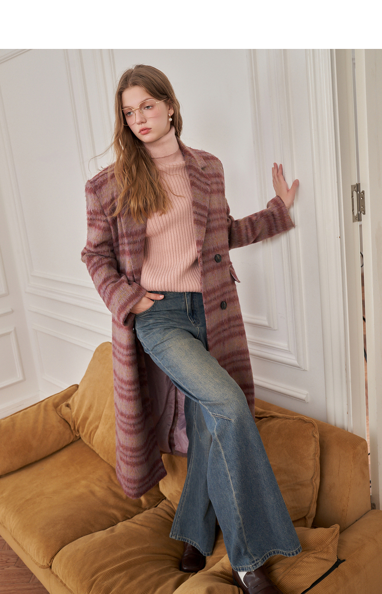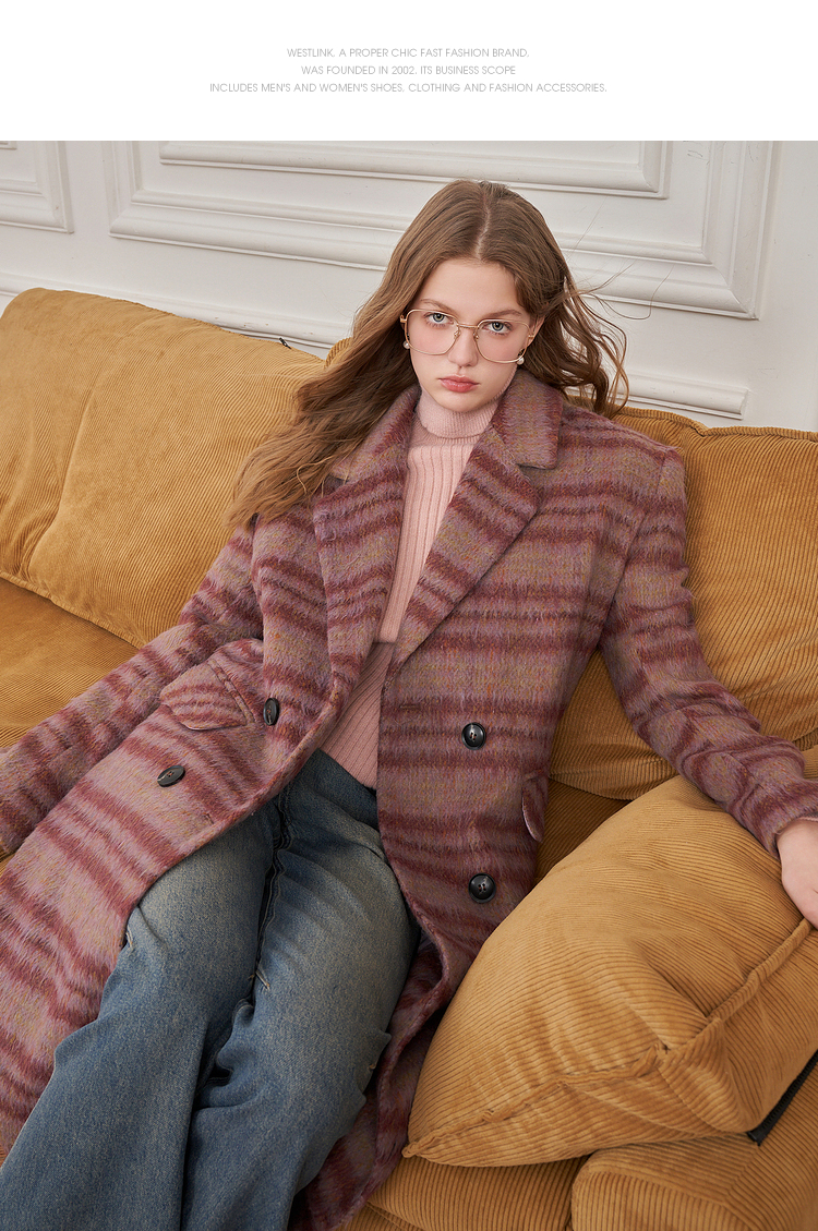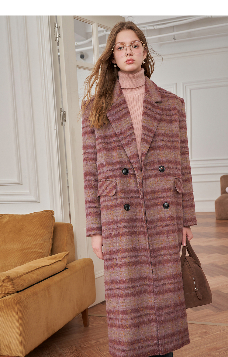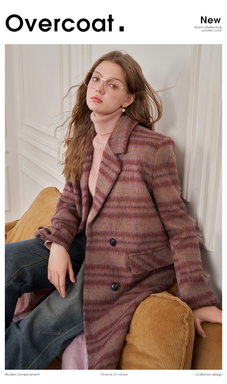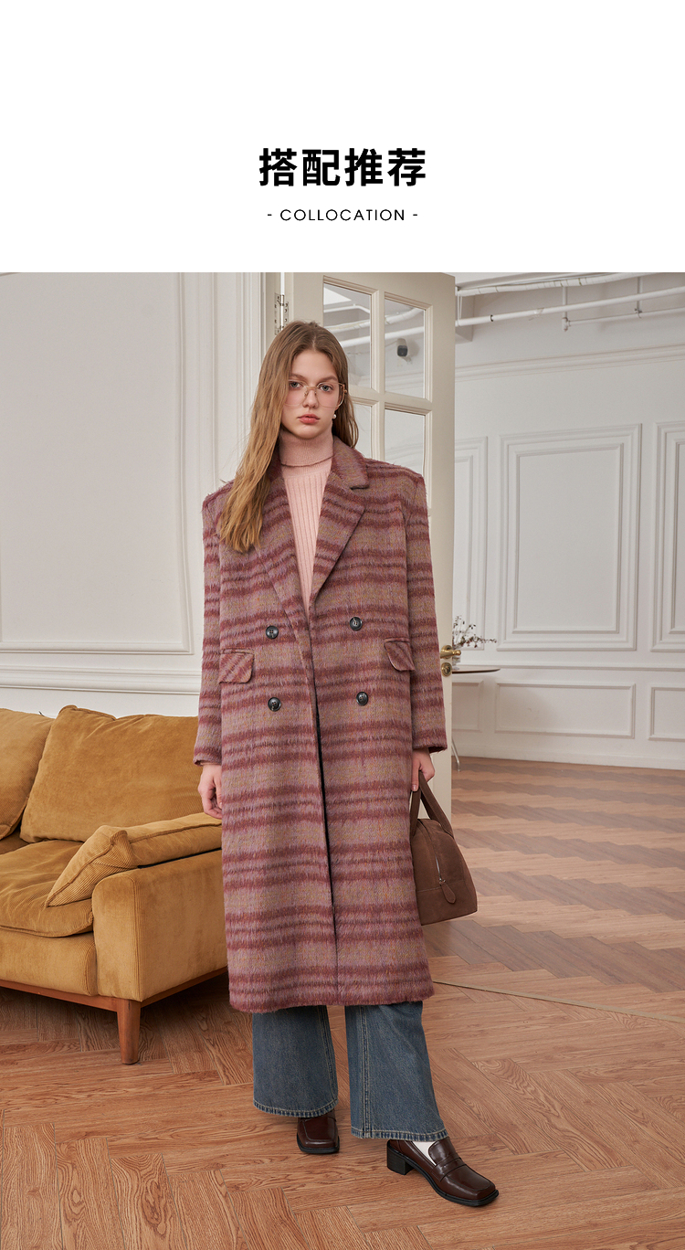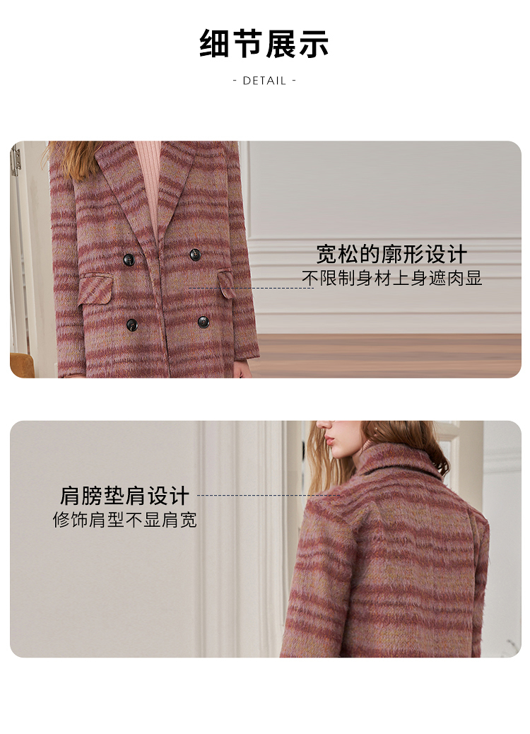 西遇韩版呢子大衣女秋冬新款气质高级感胖mm小垫肩长款外套D2338703
