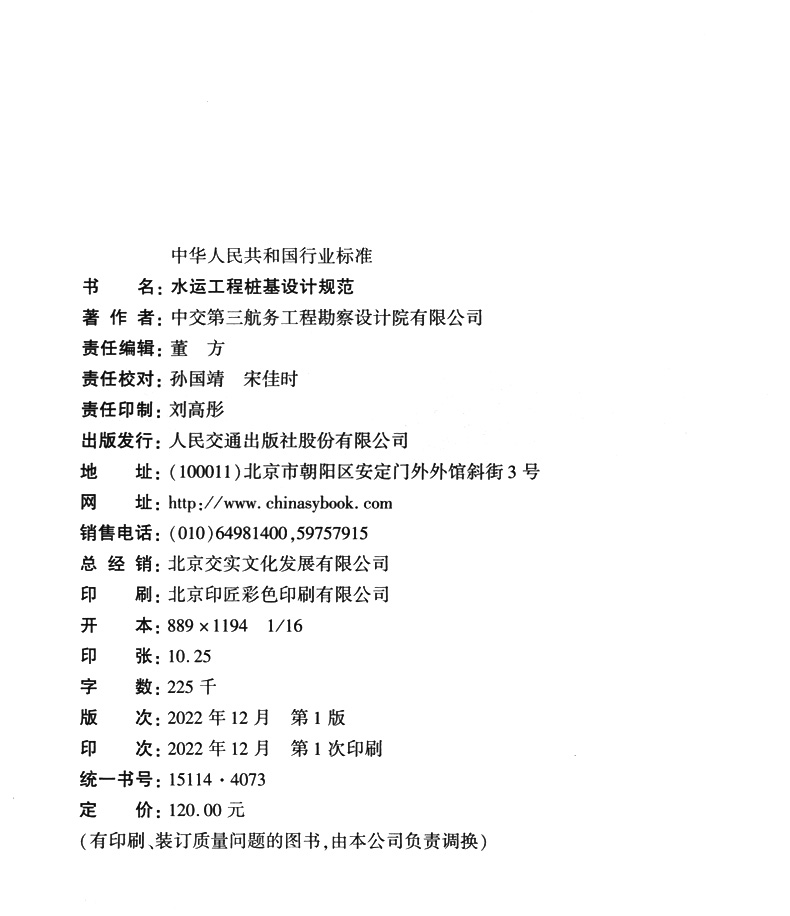 书名:JTS 147-7-2022 水运工程桩基设计规范