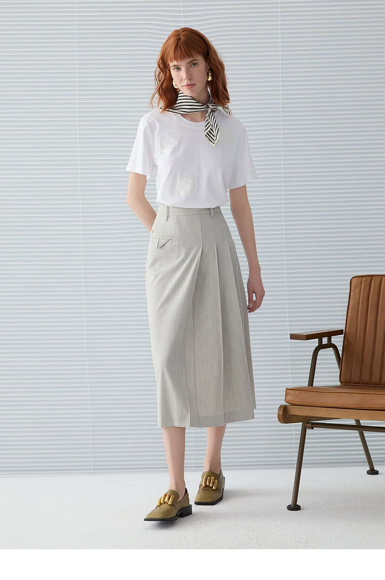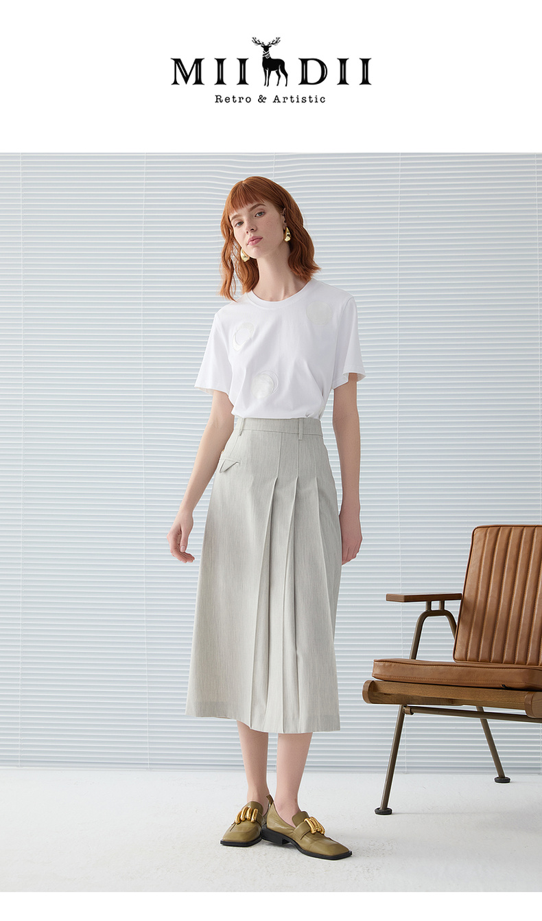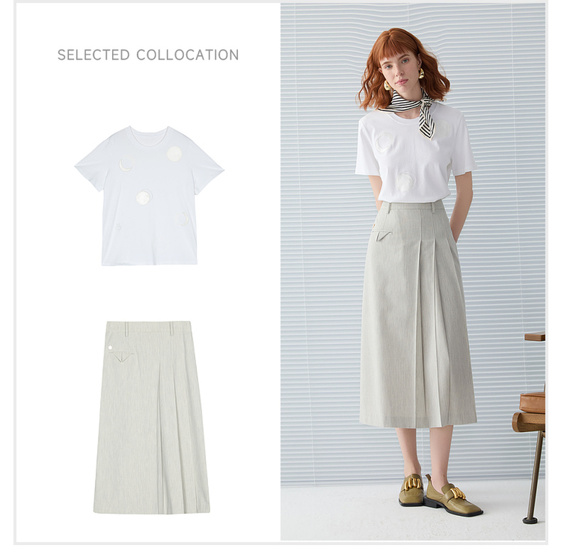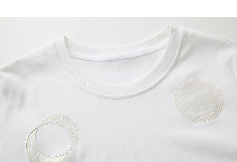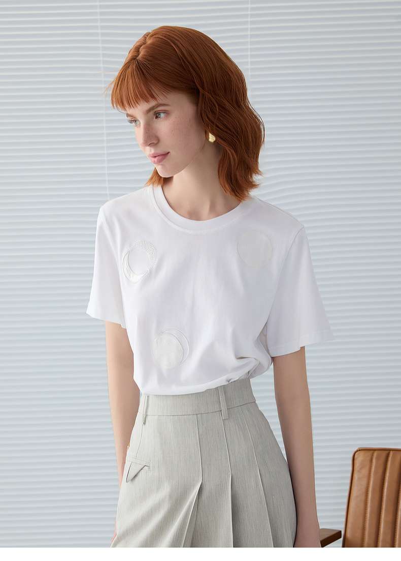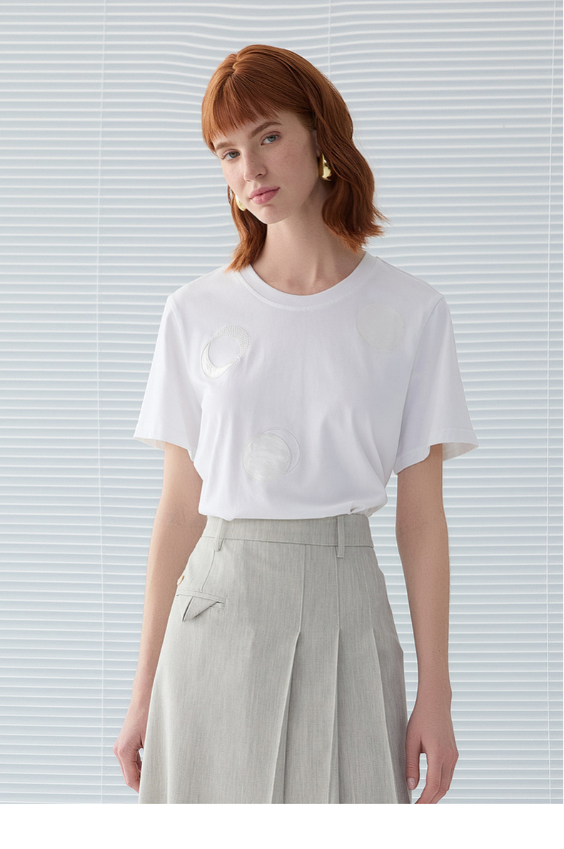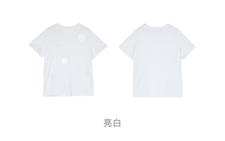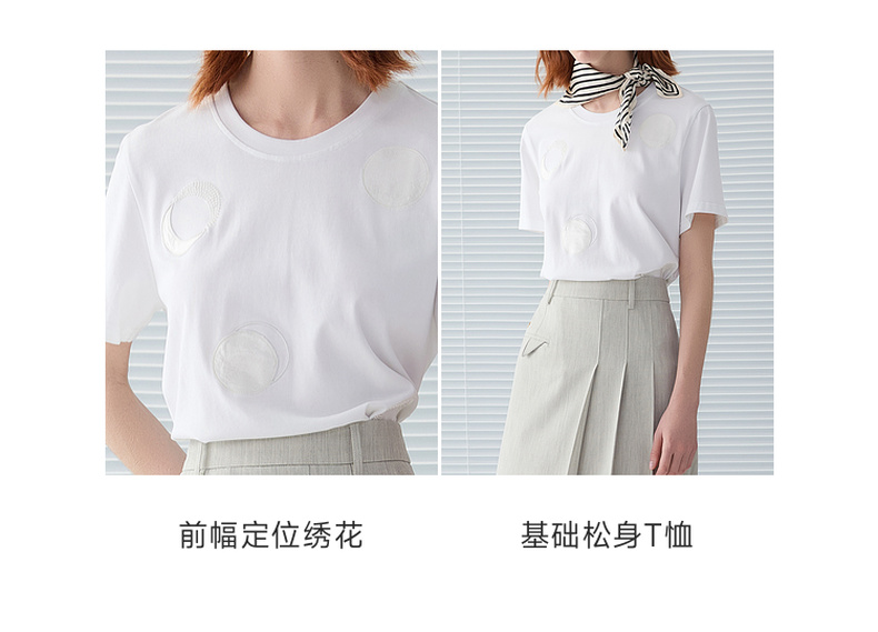 谜底白T恤短袖女2025春季新品圆领百搭基础宽松刺绣上衣251MT0058