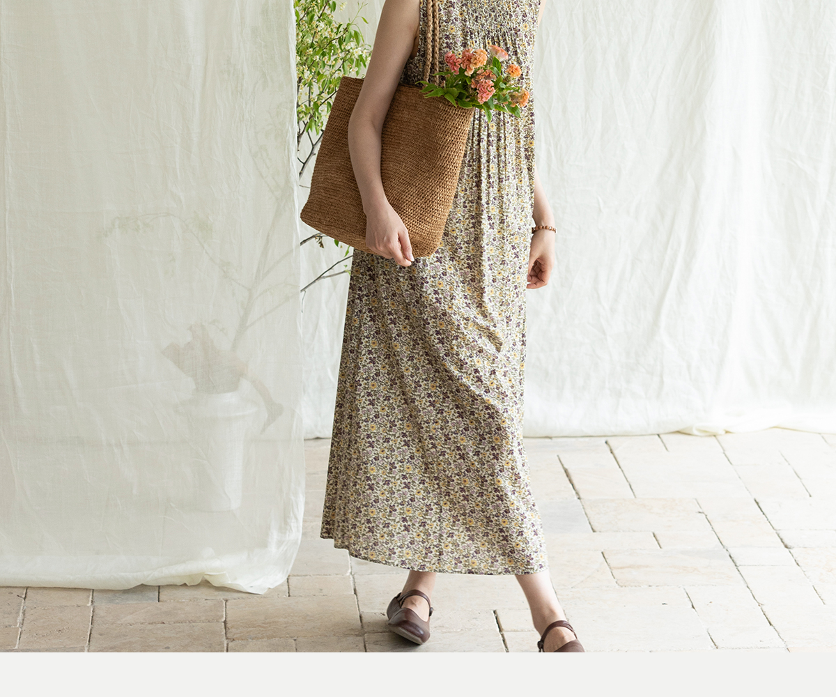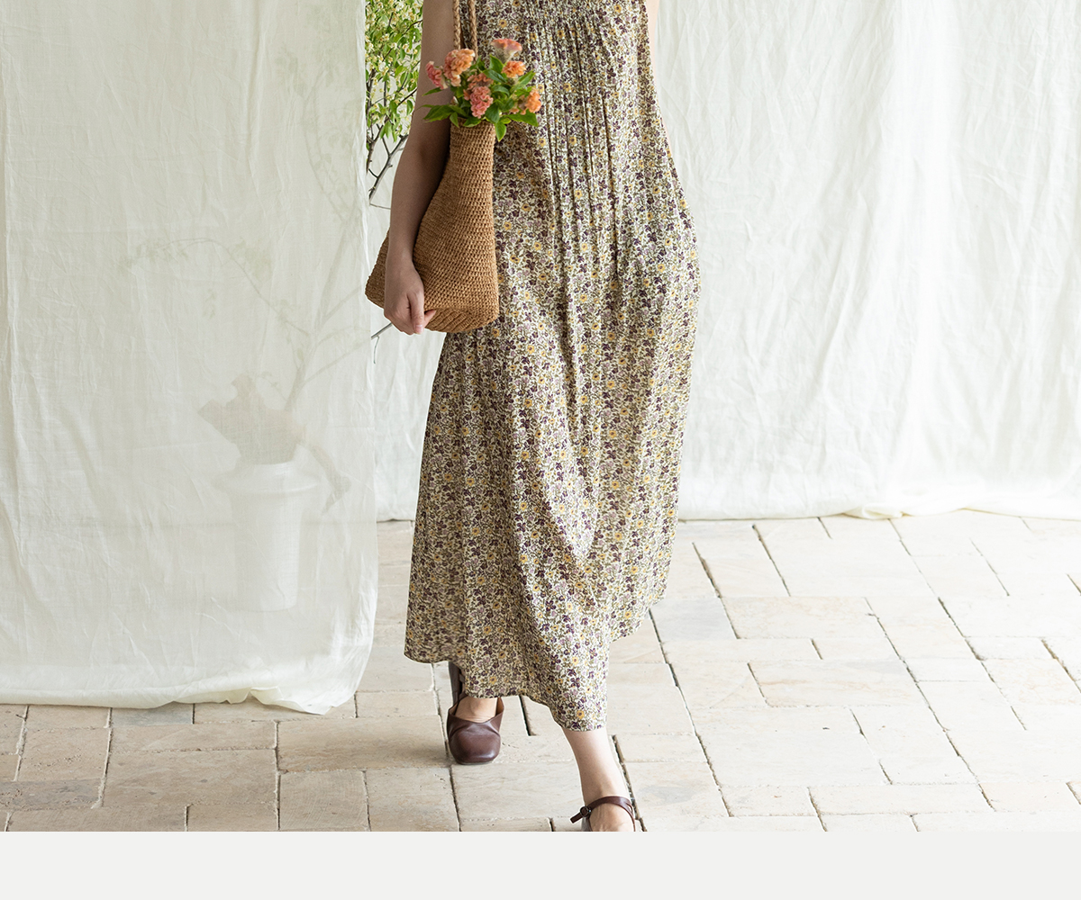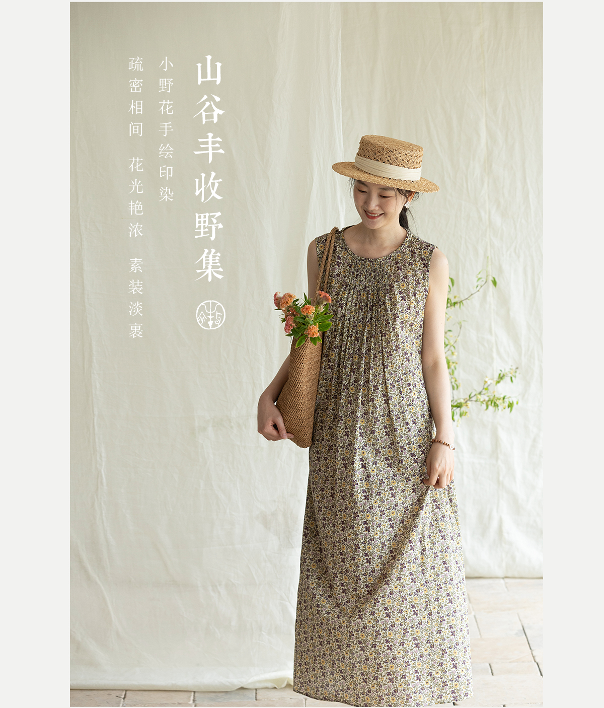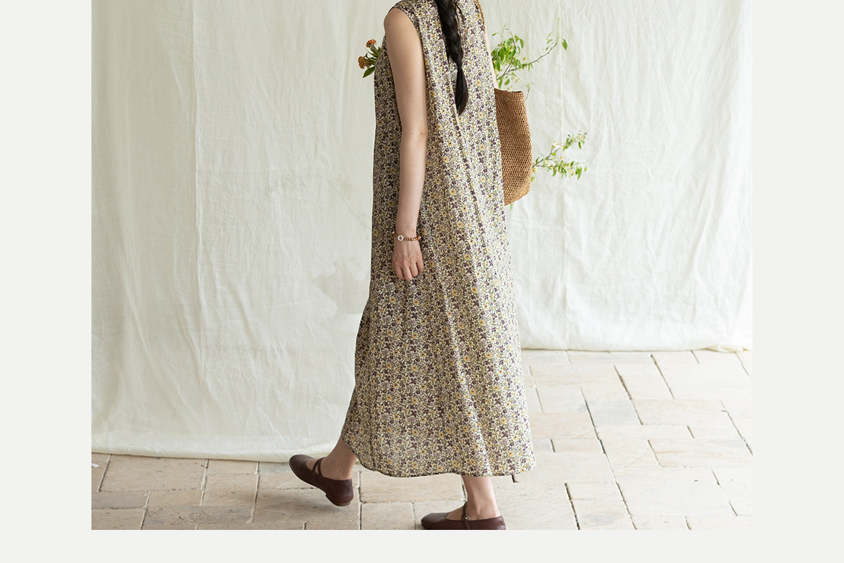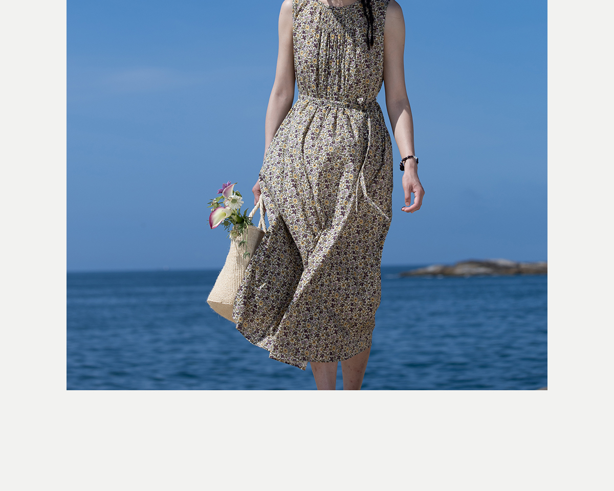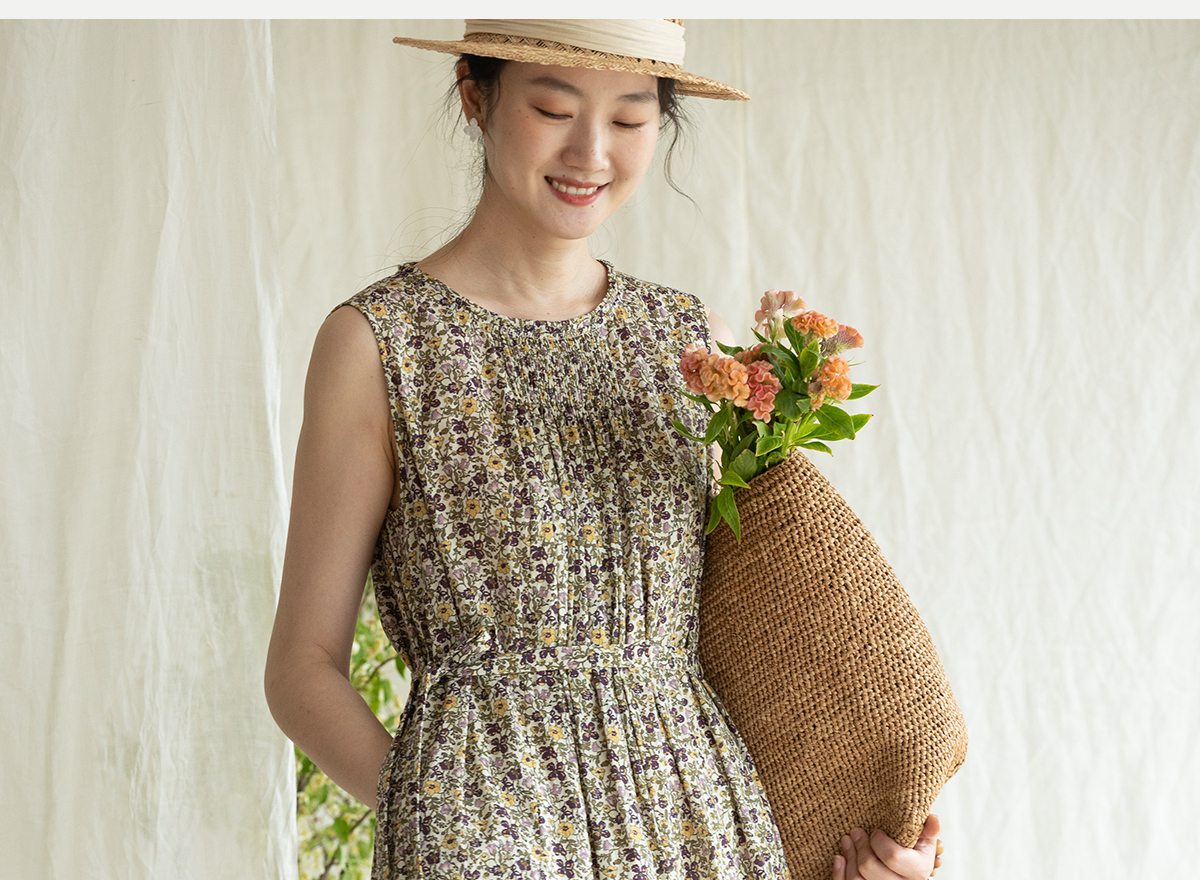 牧衣游原创 印花纯棉无袖连衣裙轻薄通勤文艺气质背心长裙 忘野