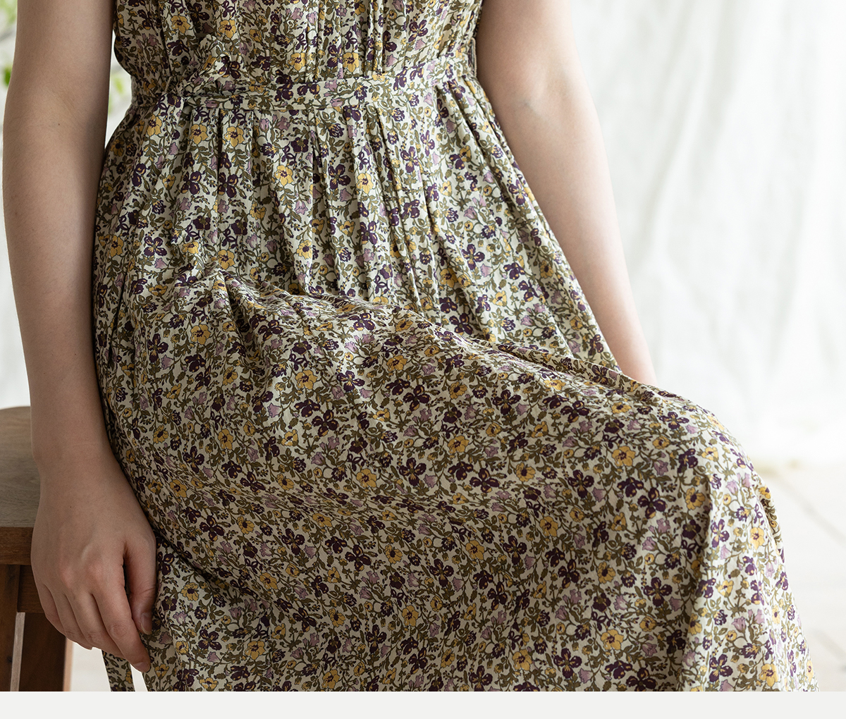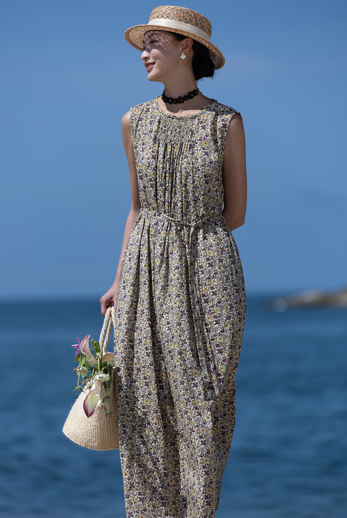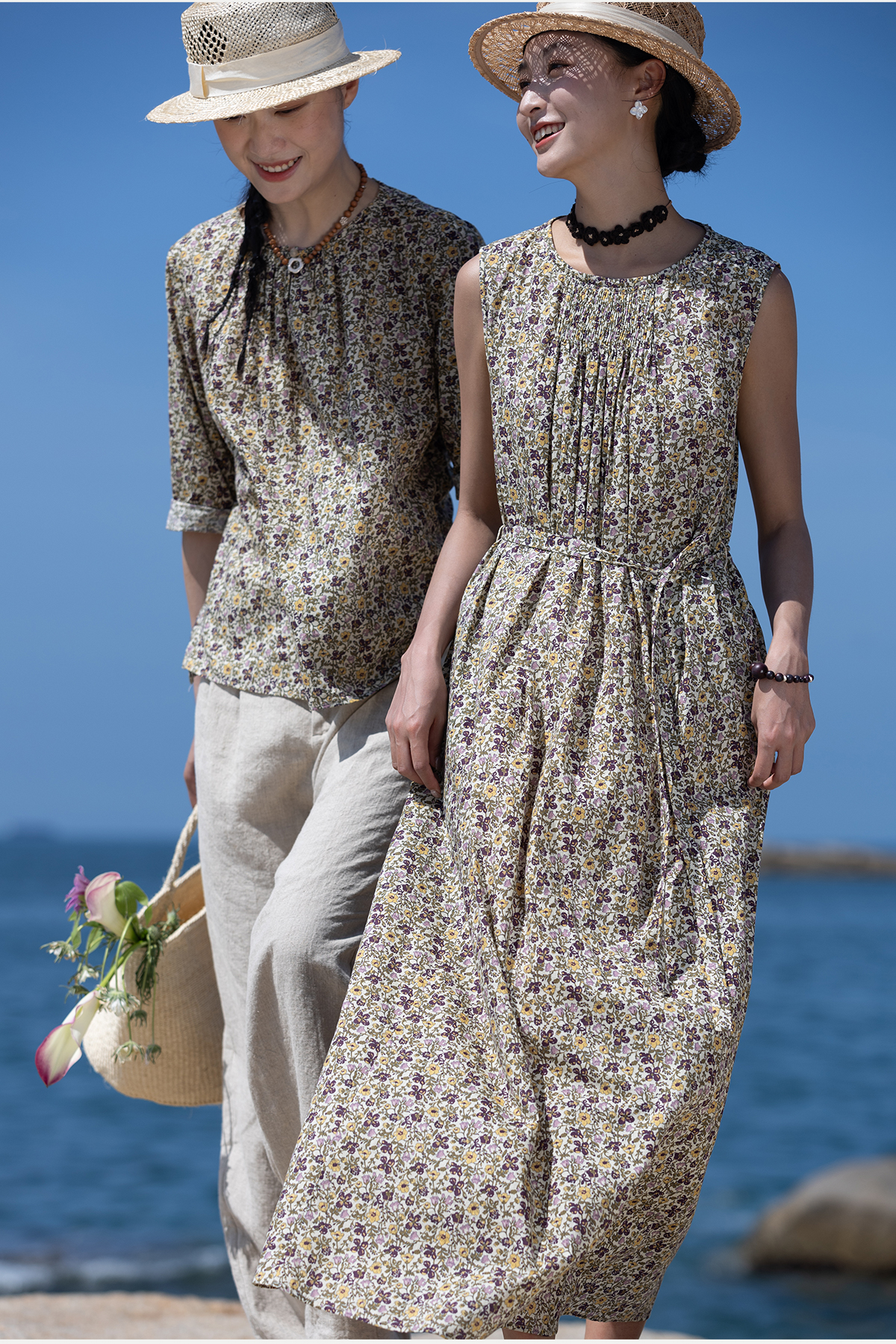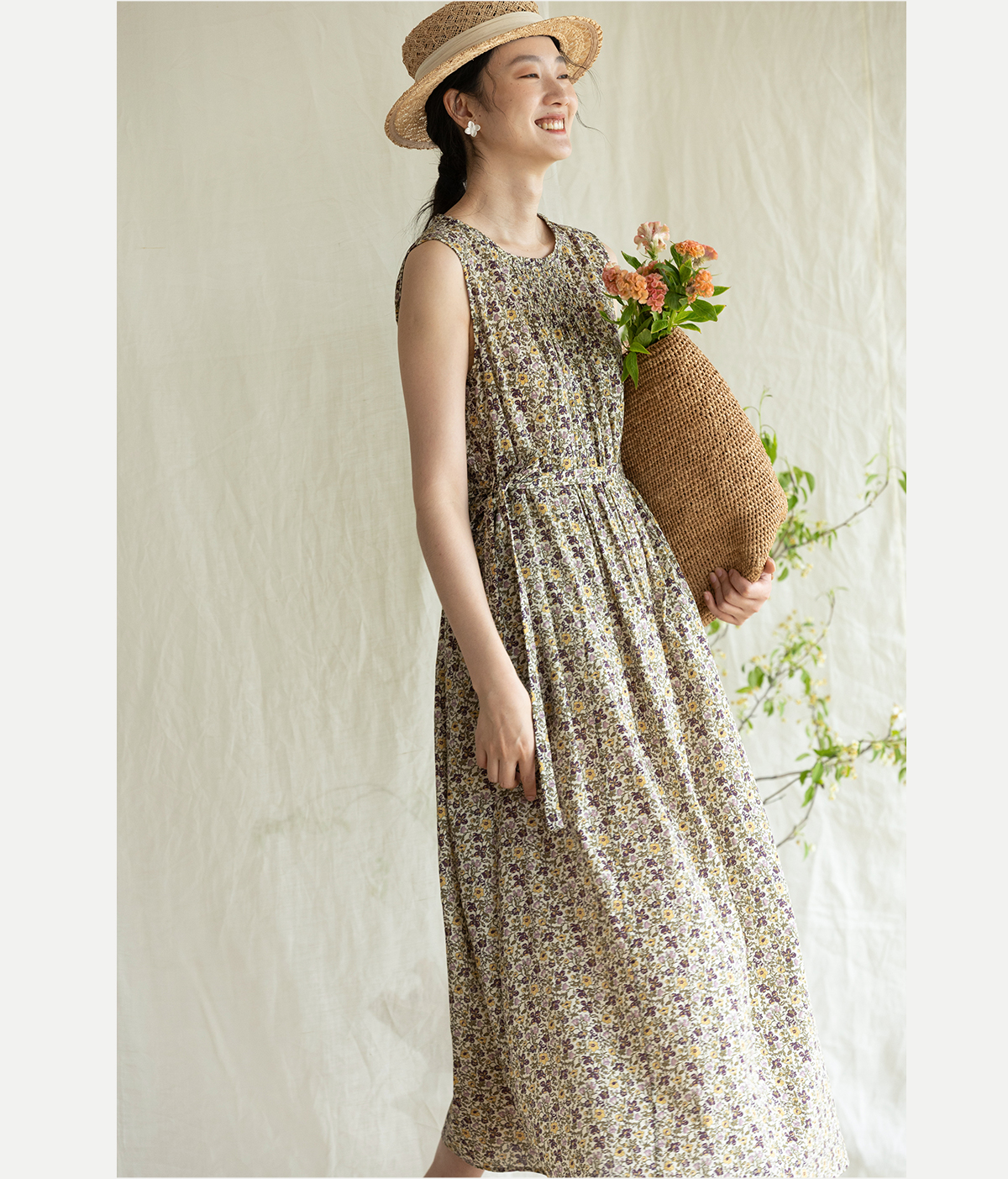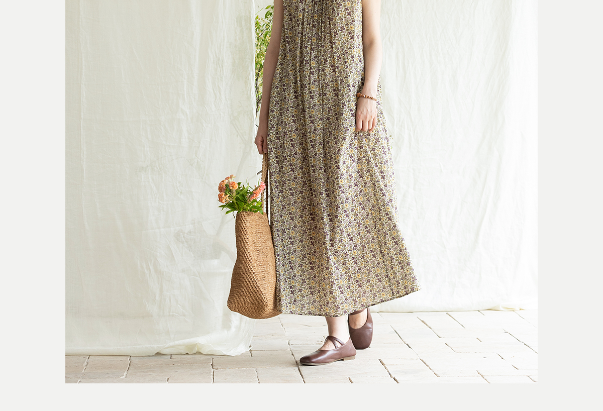 牧衣游原创 印花纯棉无袖连衣裙轻薄通勤文艺气质背心长裙 忘野