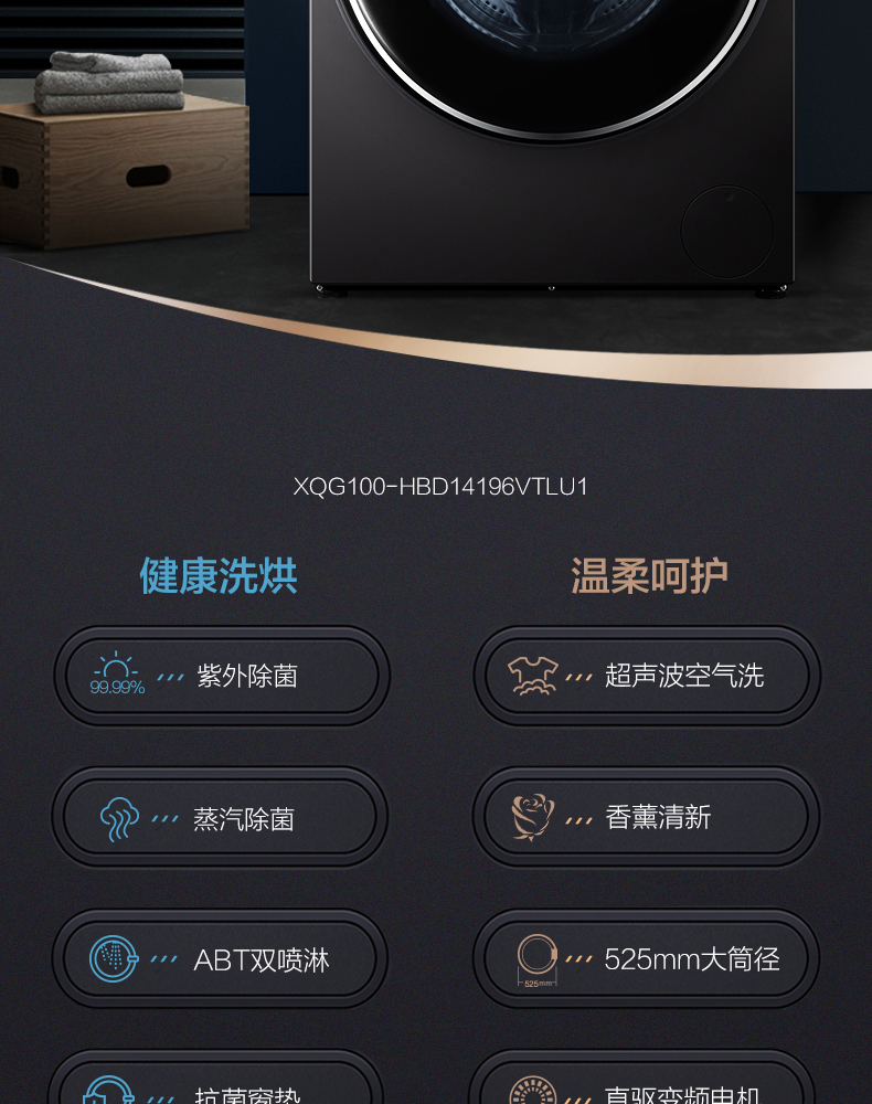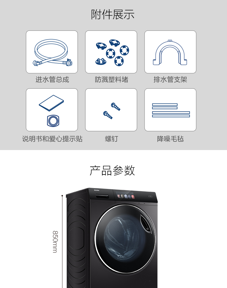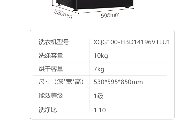 海尔纤美 10公斤滚筒洗烘一体机XQG100-HBD14196VTLU1