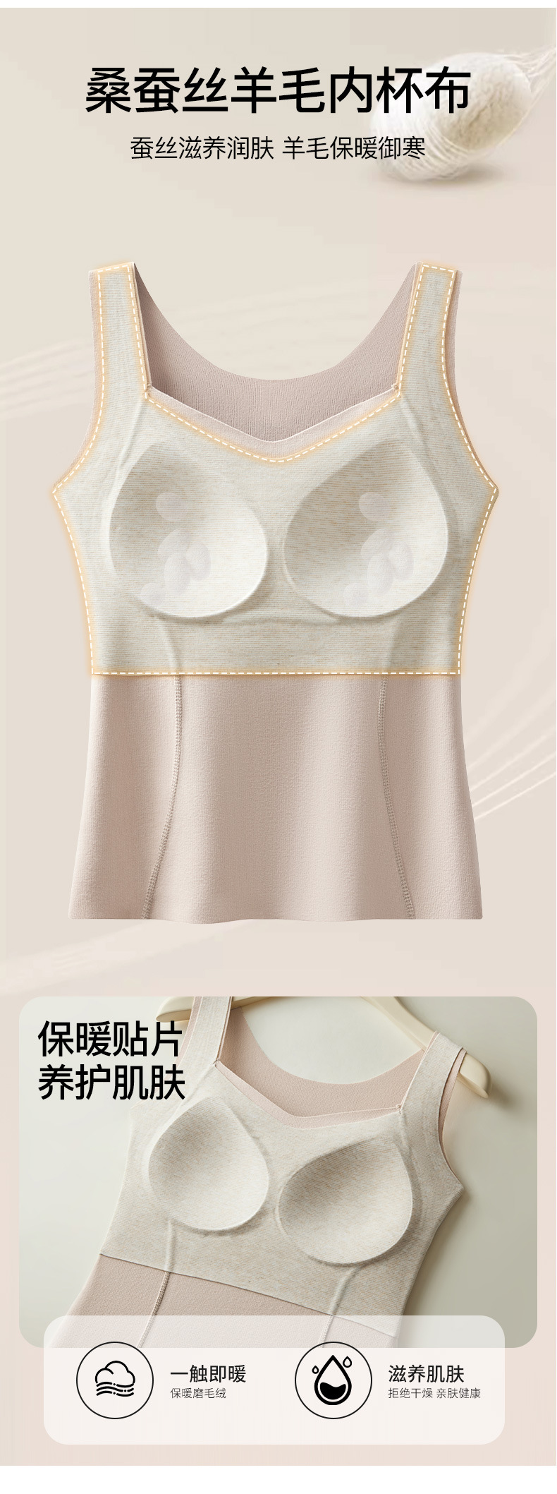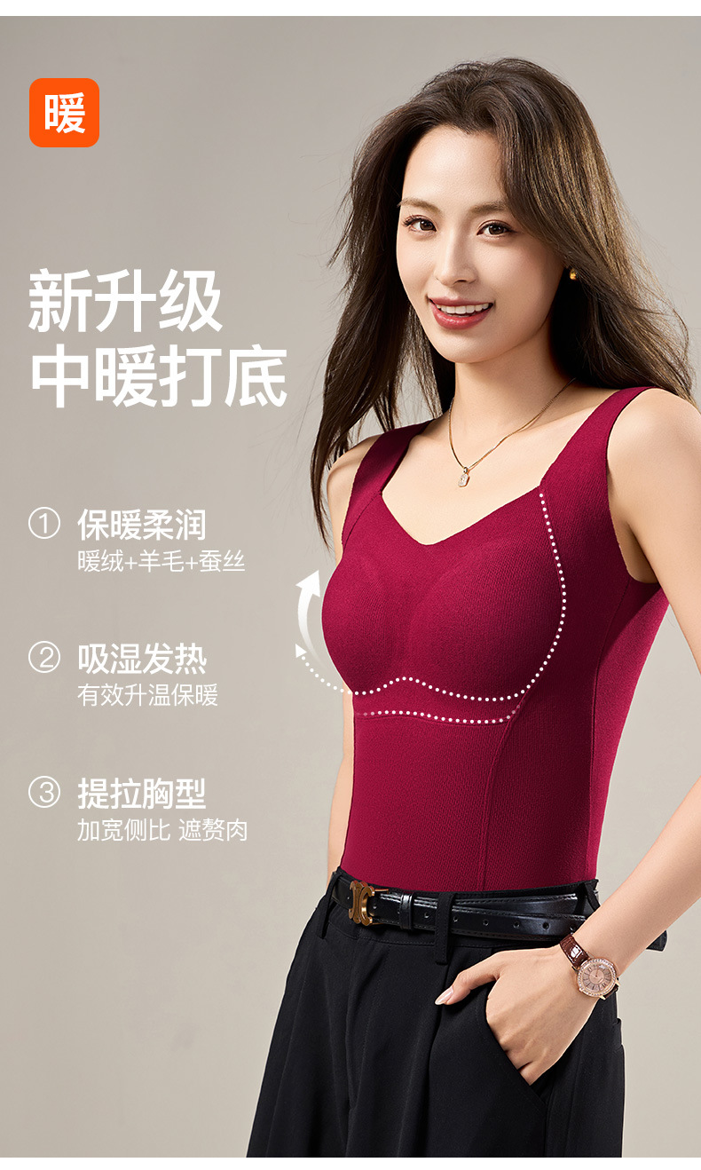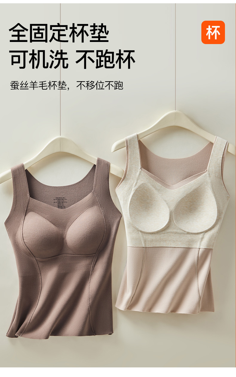【买一送一 轻暖羊毛蚕丝背心】绵羊毛桑蚕丝保暖背心带胸垫一体磨毛德绒无痕内穿打底内衣美背女秋冬