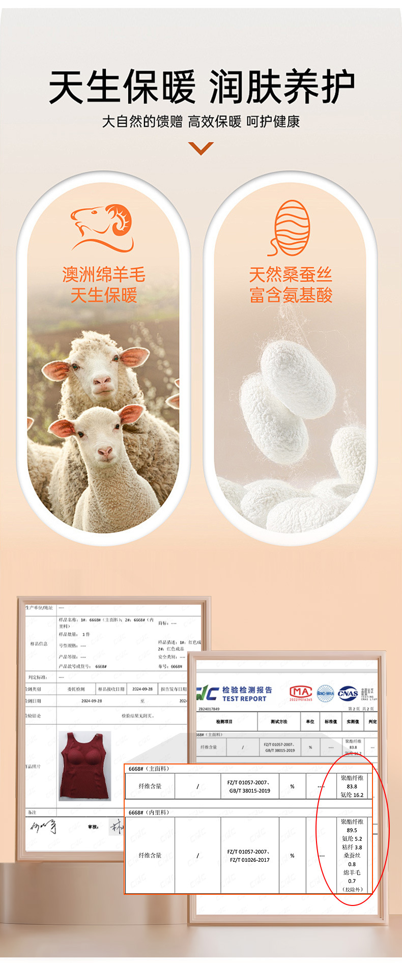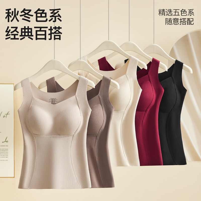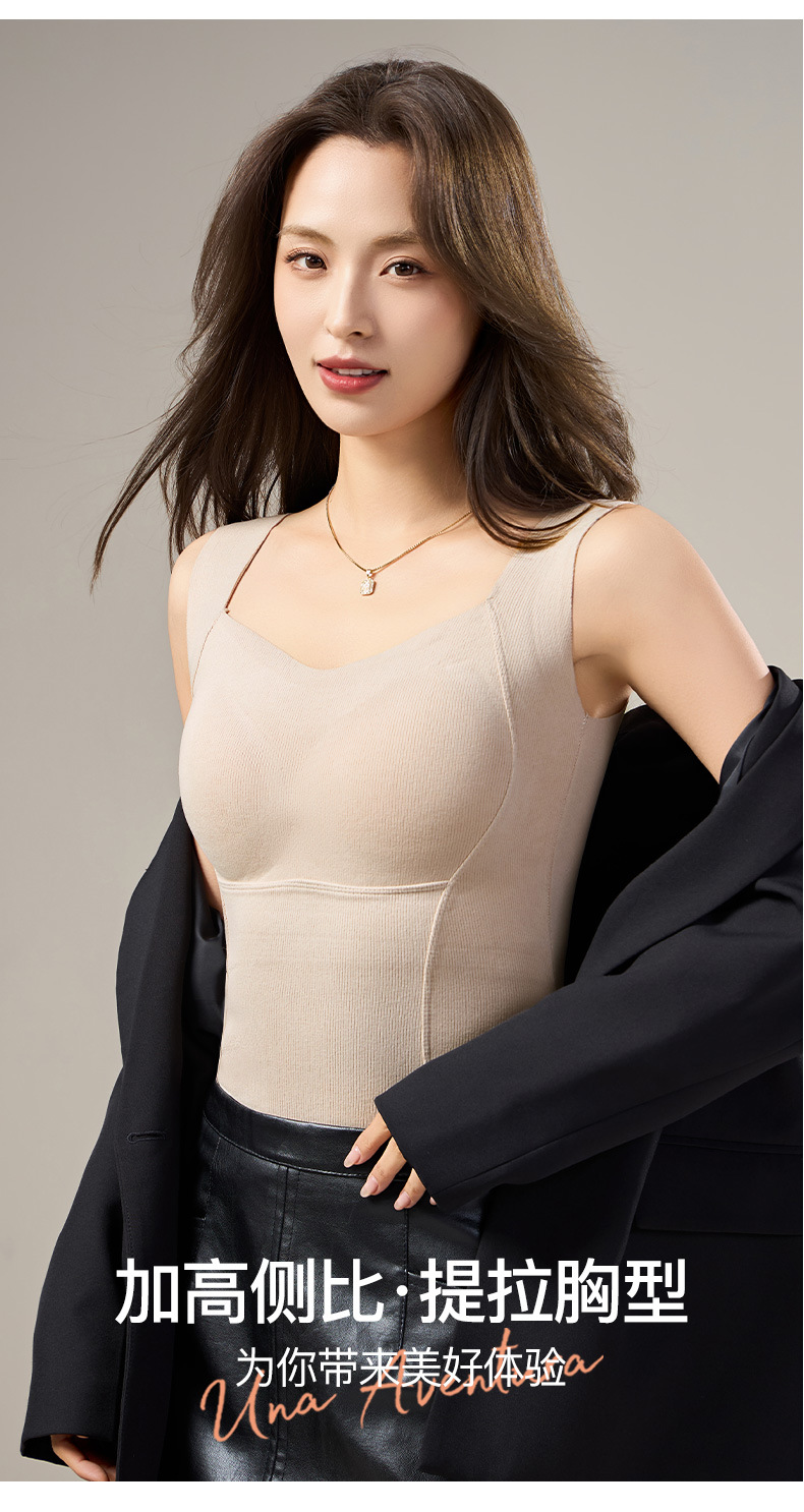 【买一送一 轻暖羊毛蚕丝背心】绵羊毛桑蚕丝保暖背心带胸垫一体磨毛德绒无痕内穿打底内衣美背女秋冬