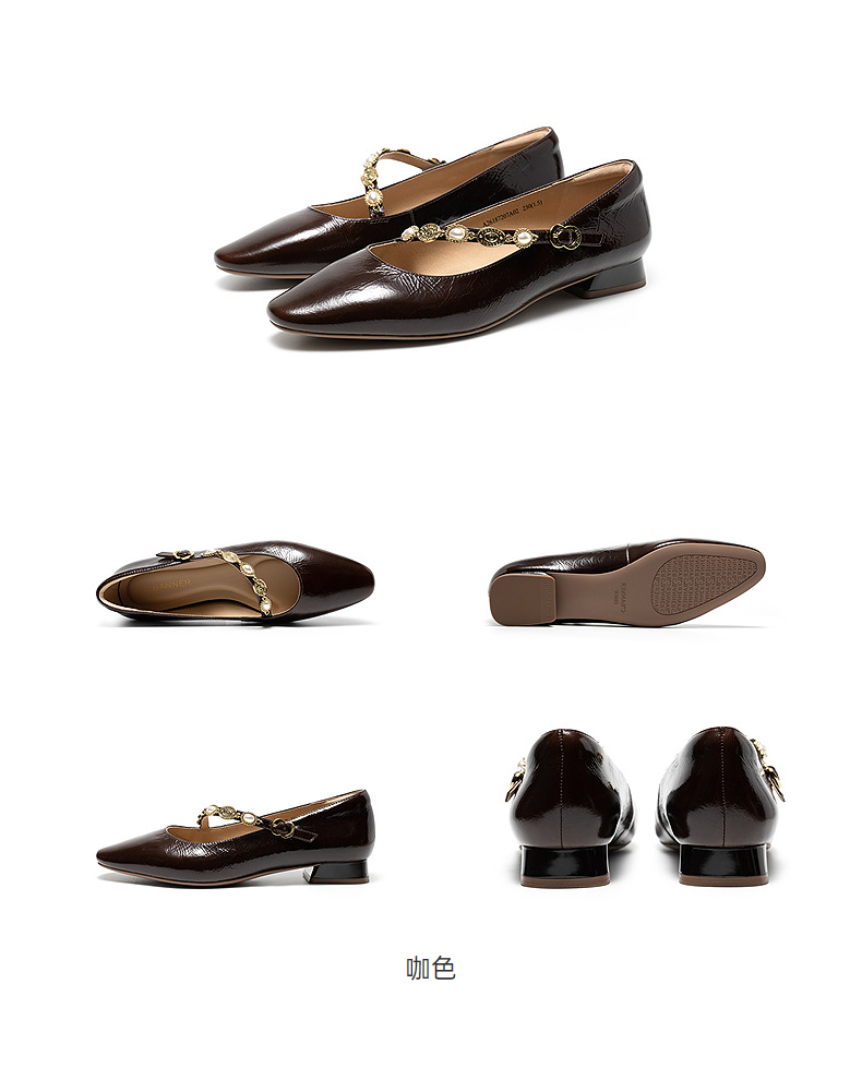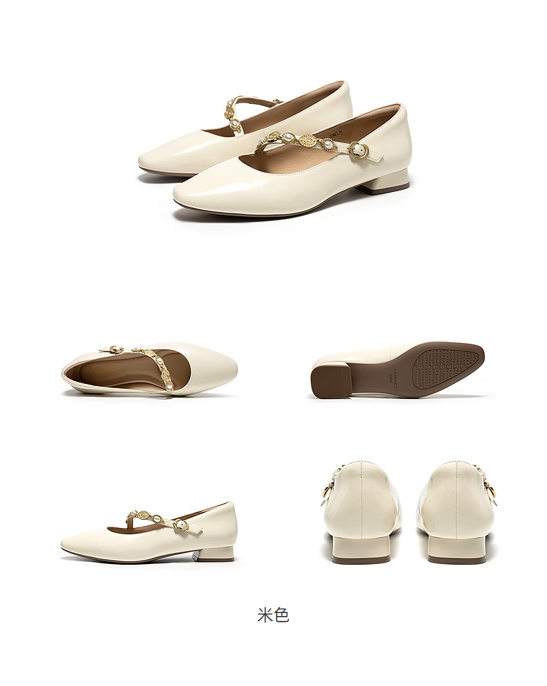 千百度褶皱钻带玛丽珍鞋女平底休闲单鞋不累脚晚晚鞋A25452572