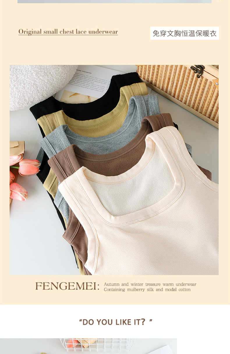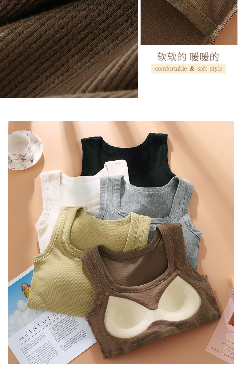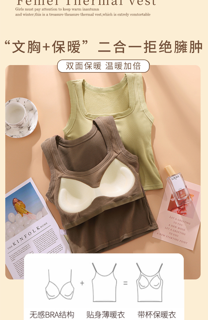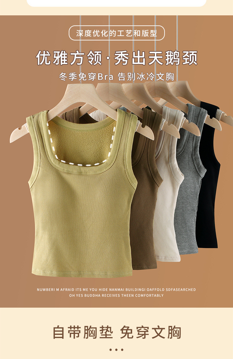 秋冬磨毛方领背心女 宽肩内搭 外穿带胸垫 免穿文胸保暖内衣打底上衣 商品图4