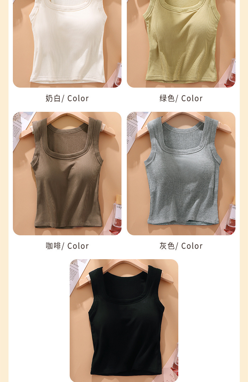 秋冬磨毛方领背心女 宽肩内搭 外穿带胸垫 免穿文胸保暖内衣打底上衣 商品图6