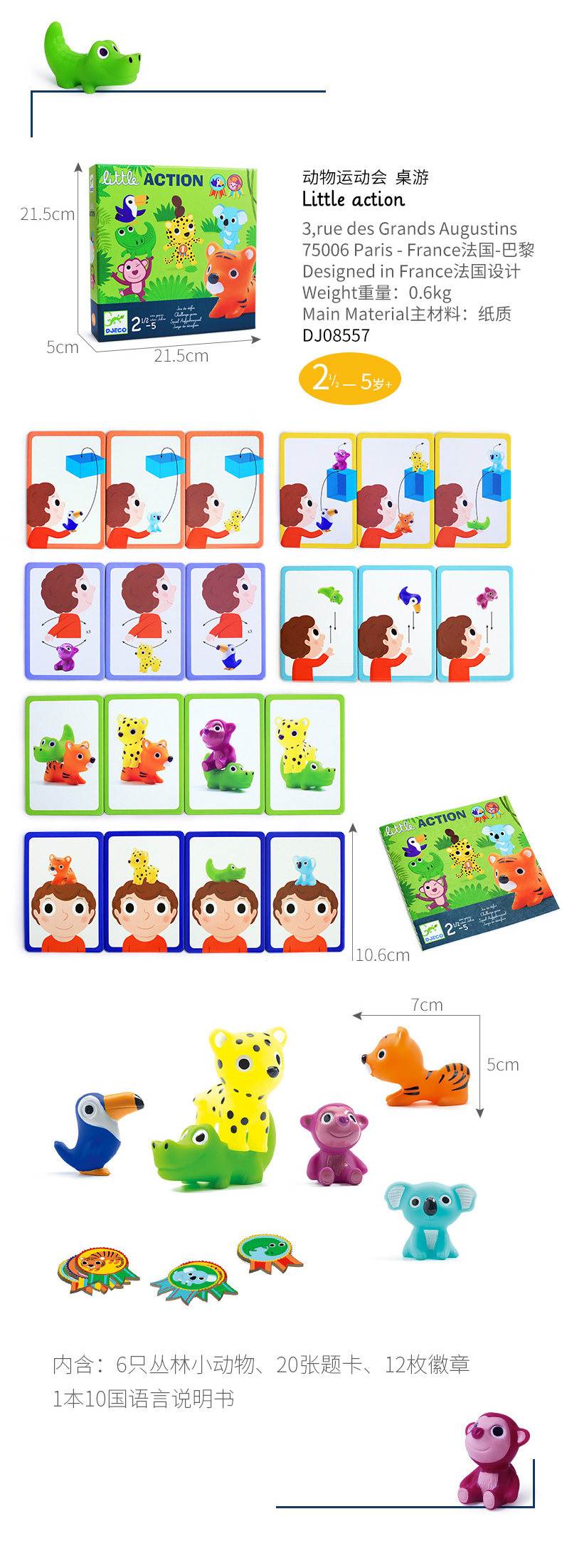 djeco三层木头积木拼图儿童早教益智智力木质2-3岁半男孩女孩木制