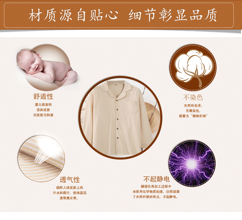 乐坊 绵柔家居套装(男) 棕色 零印染、天然棉花