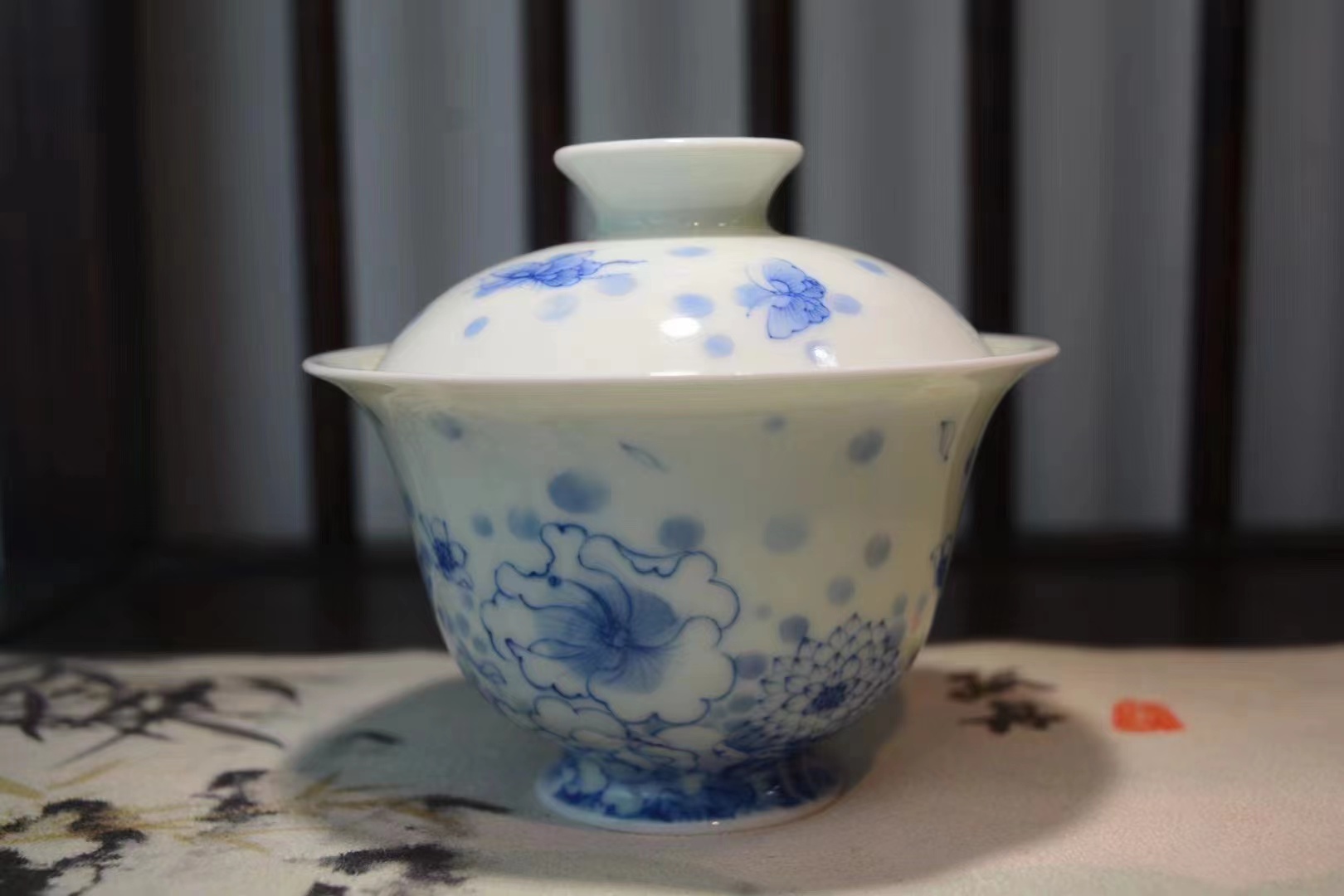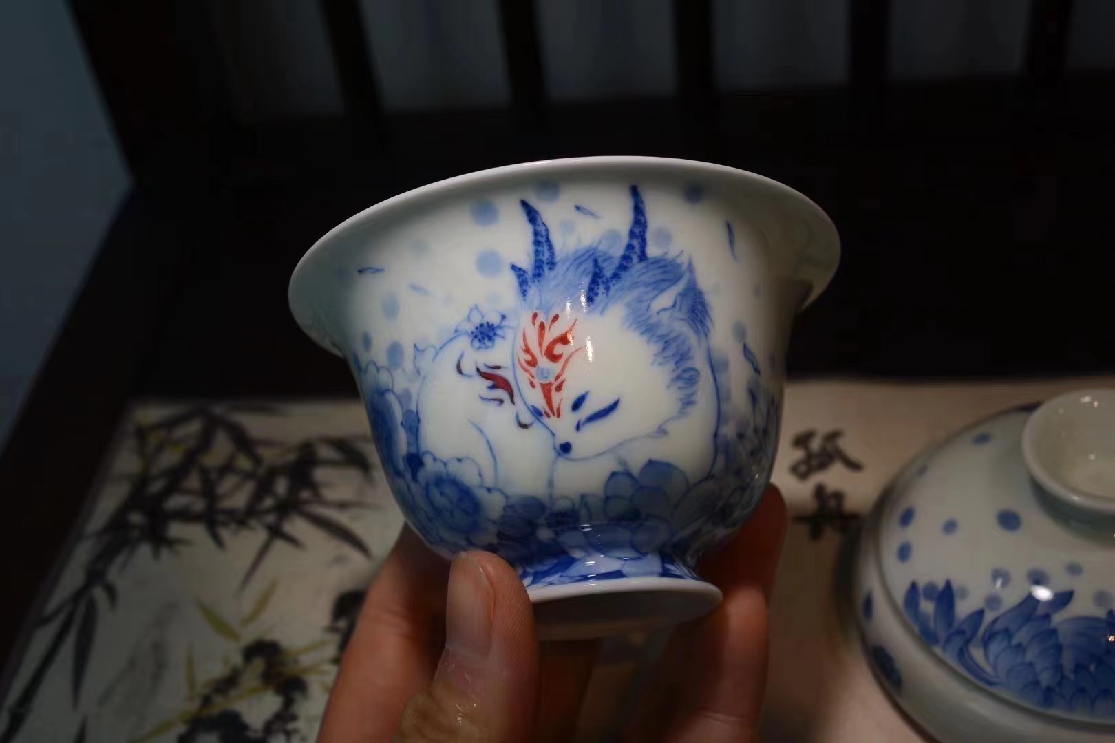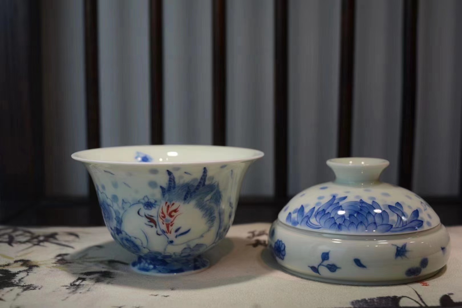 B-SST-3006素手堂 青花斗彩山海经盖碗