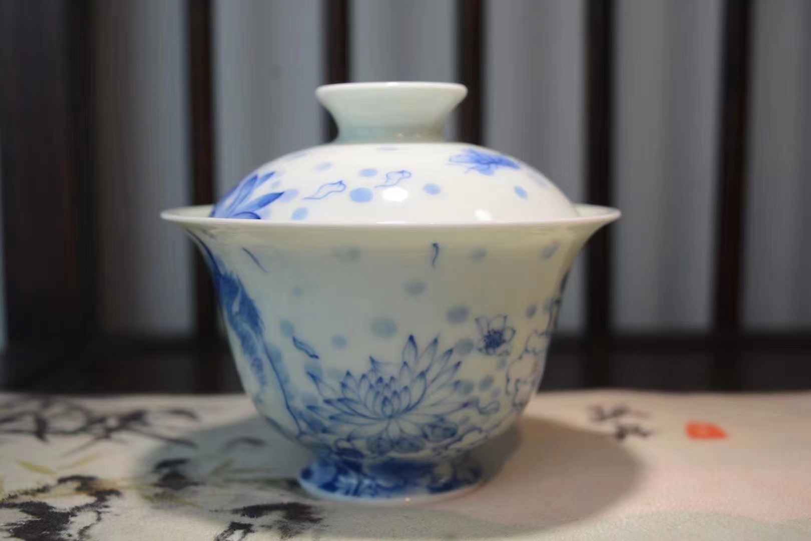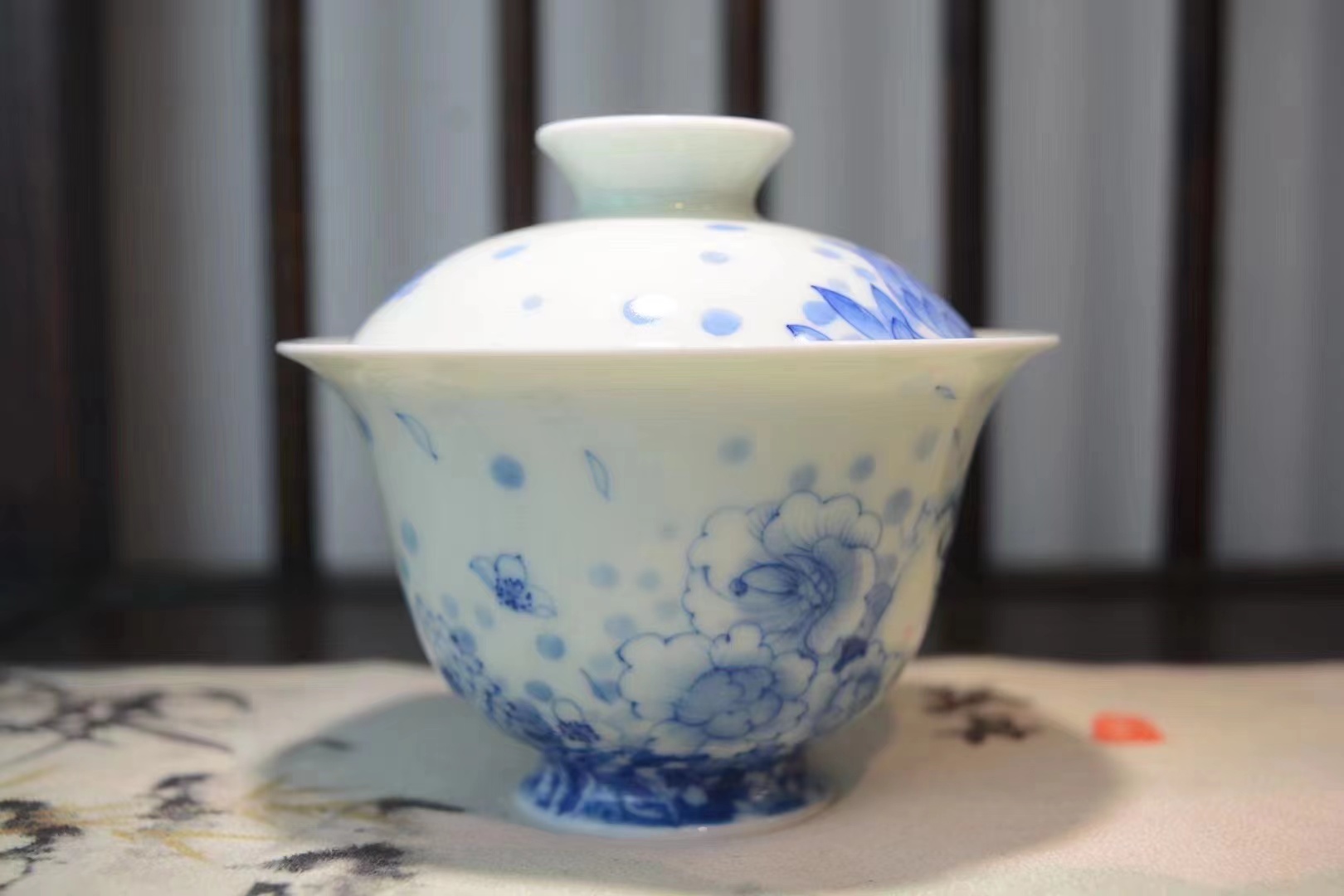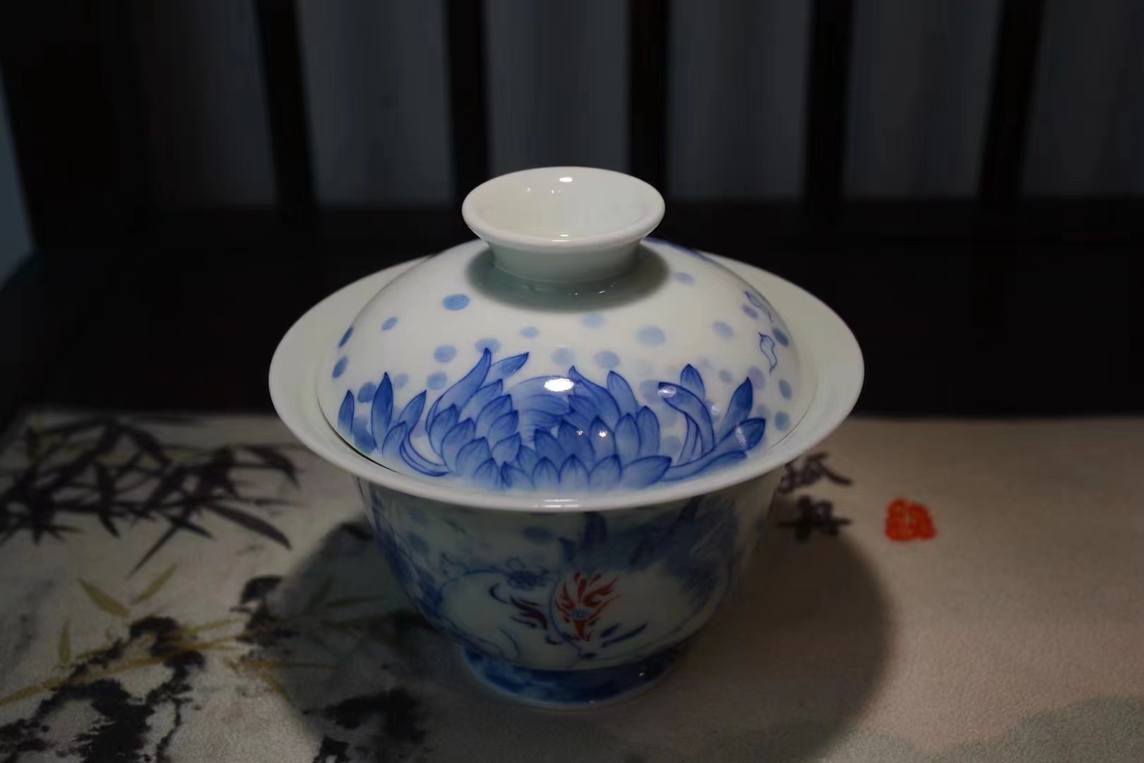 B-SST-3006素手堂 青花斗彩山海经盖碗