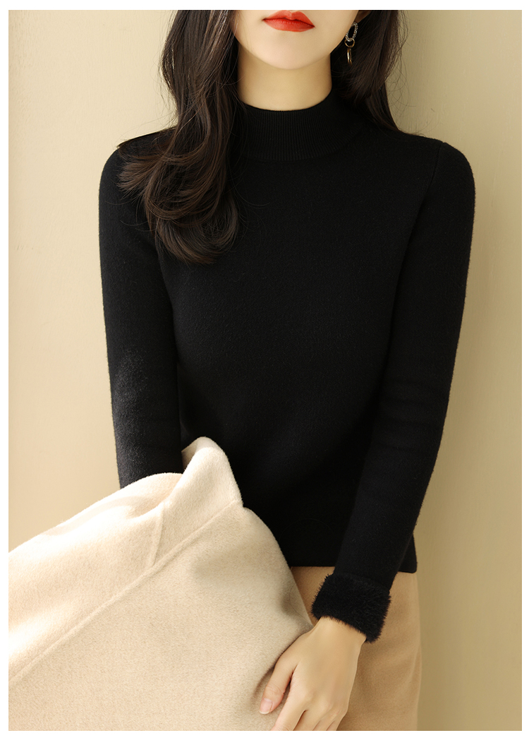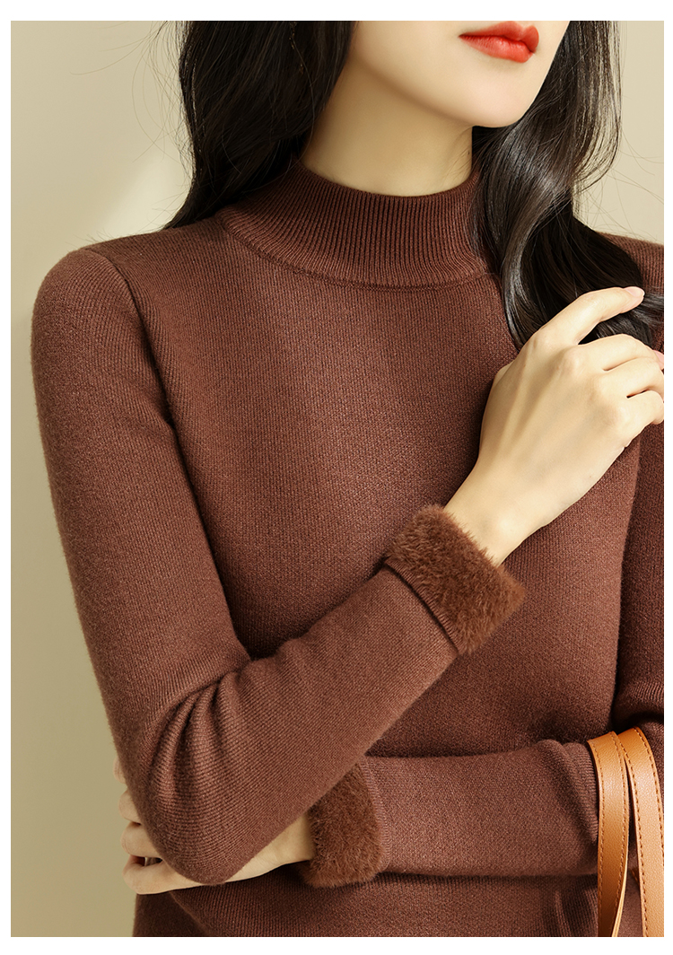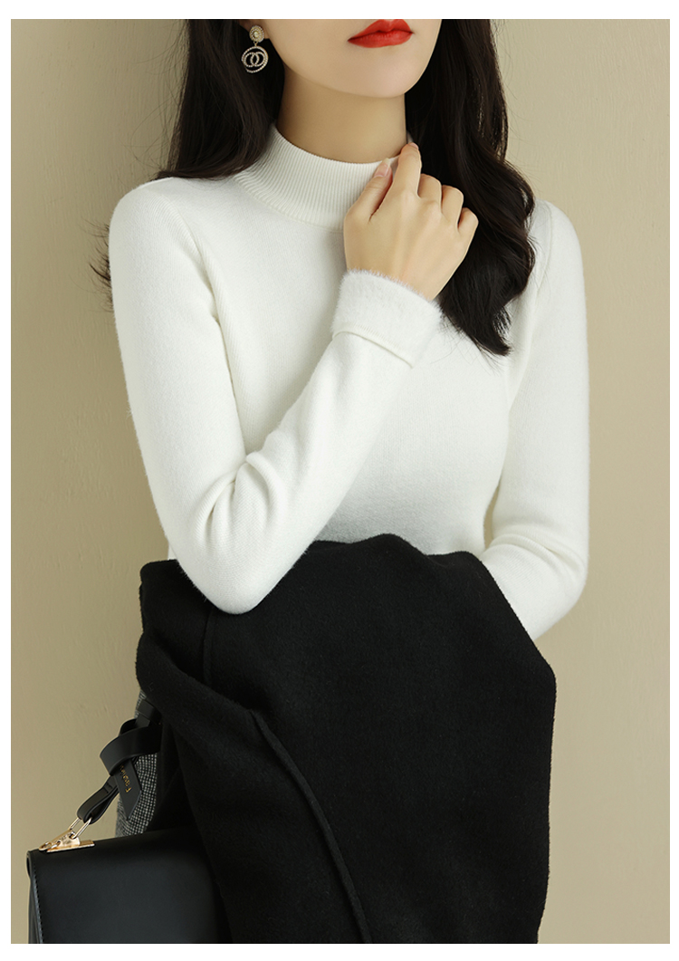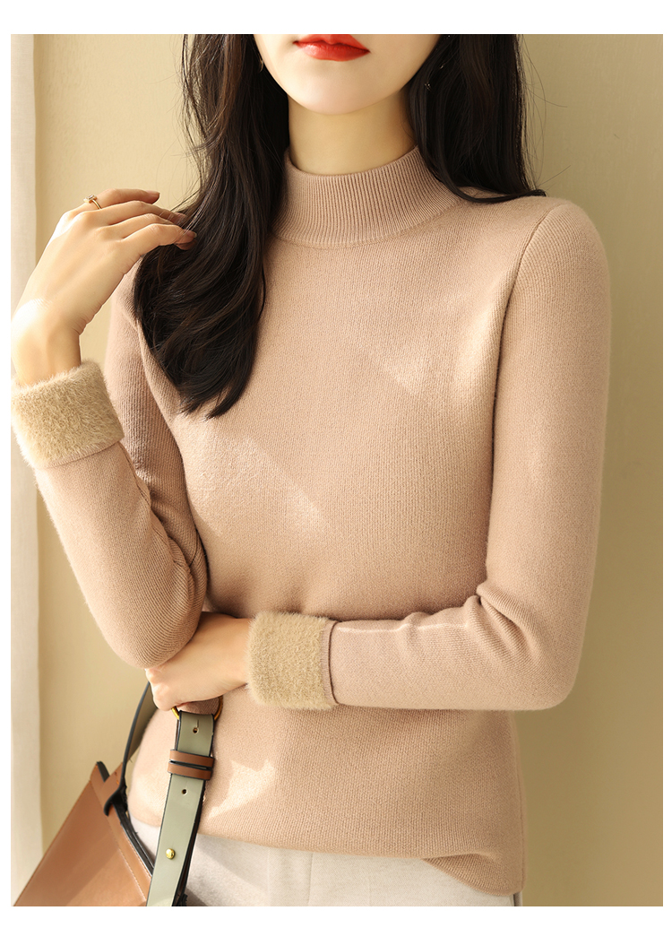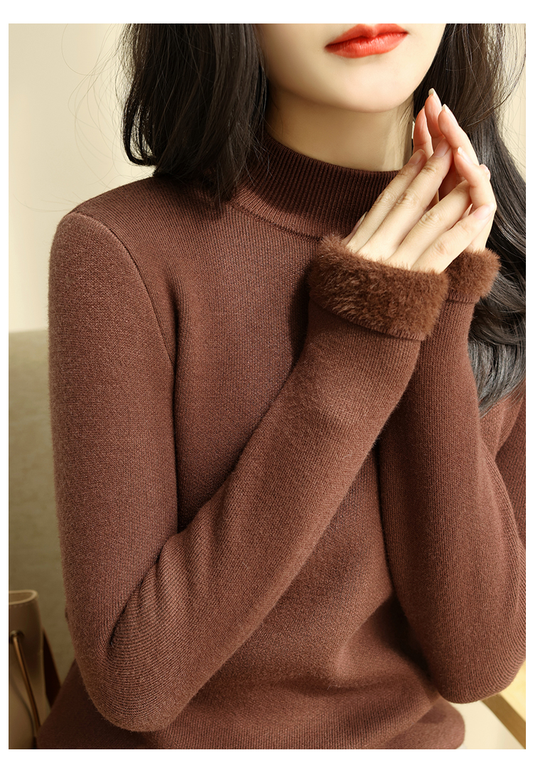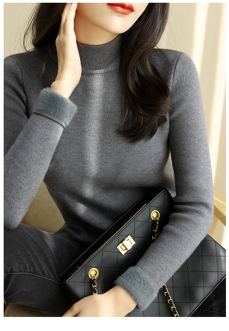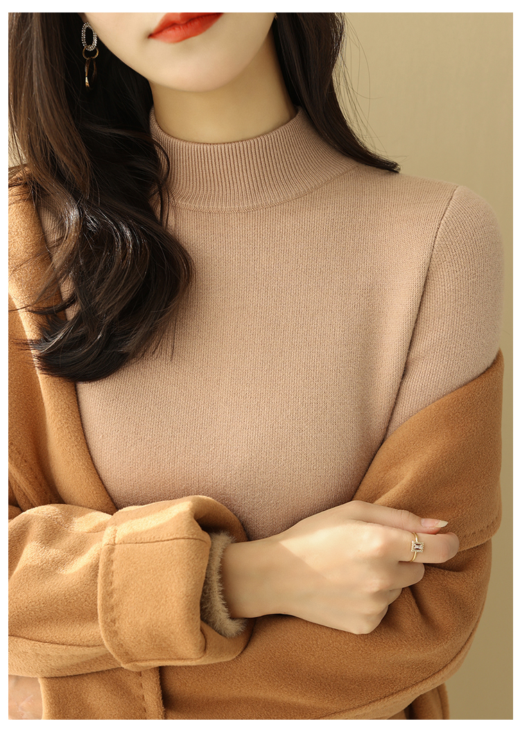 「6色可选!一体绒半高领」2023秋冬季加绒加厚毛衣女 保暖上衣打底针织衫韩版修身半高领
