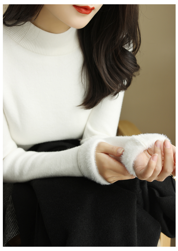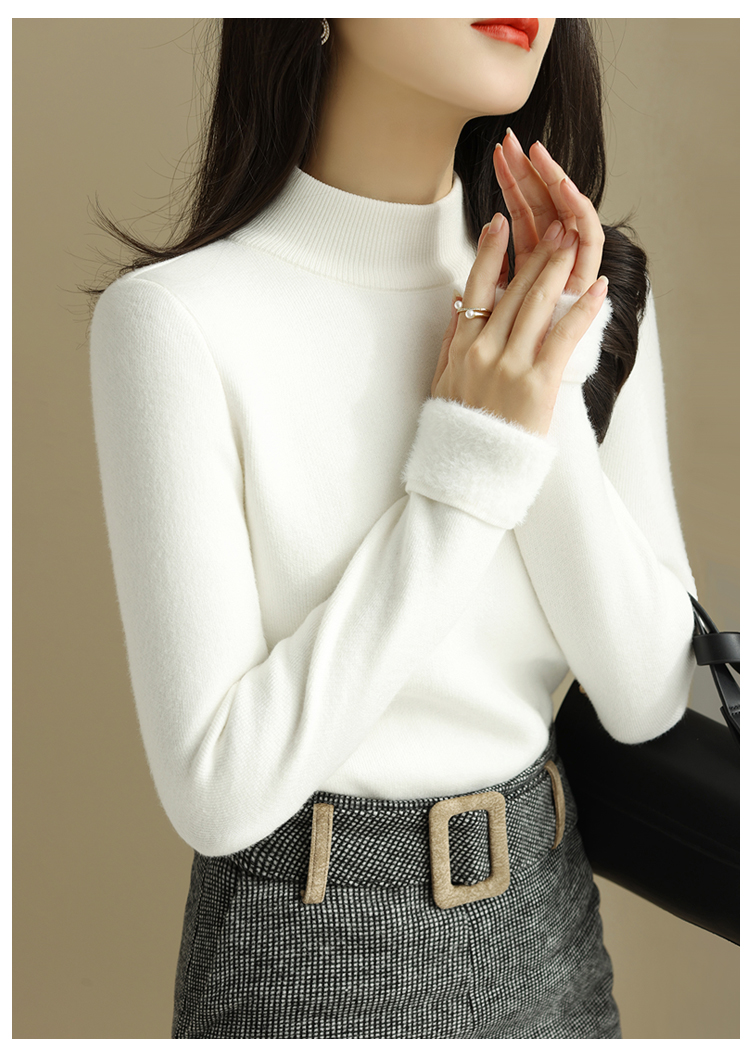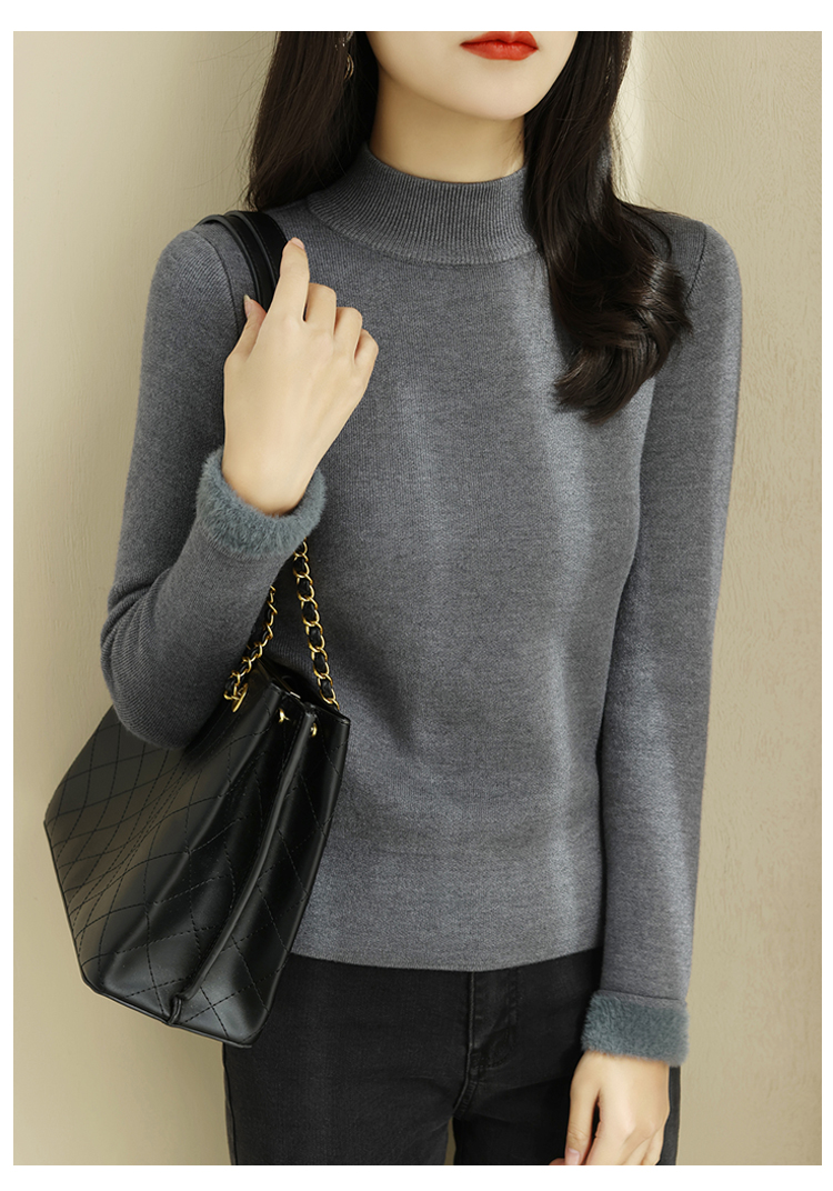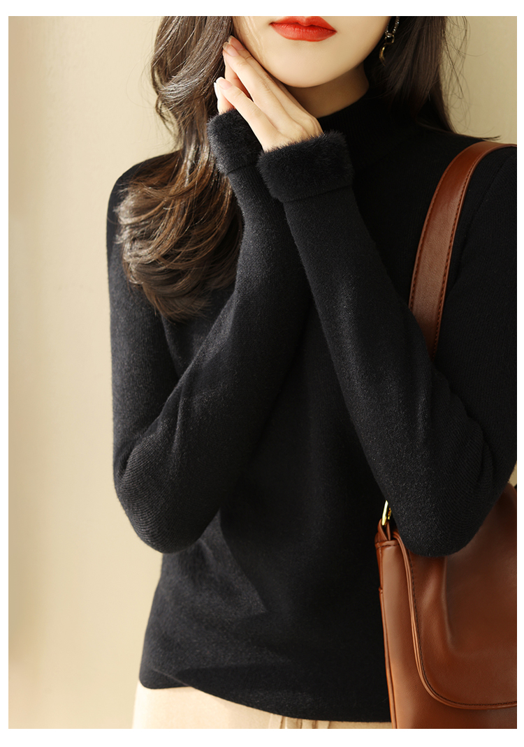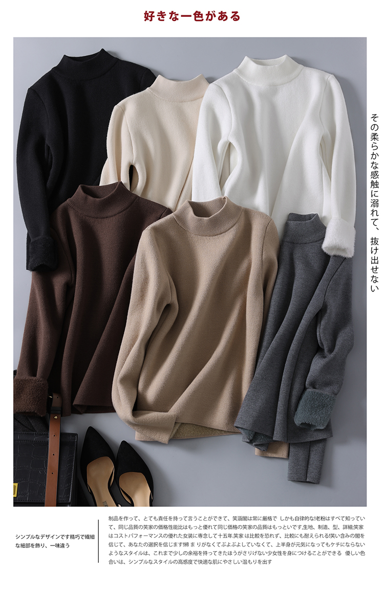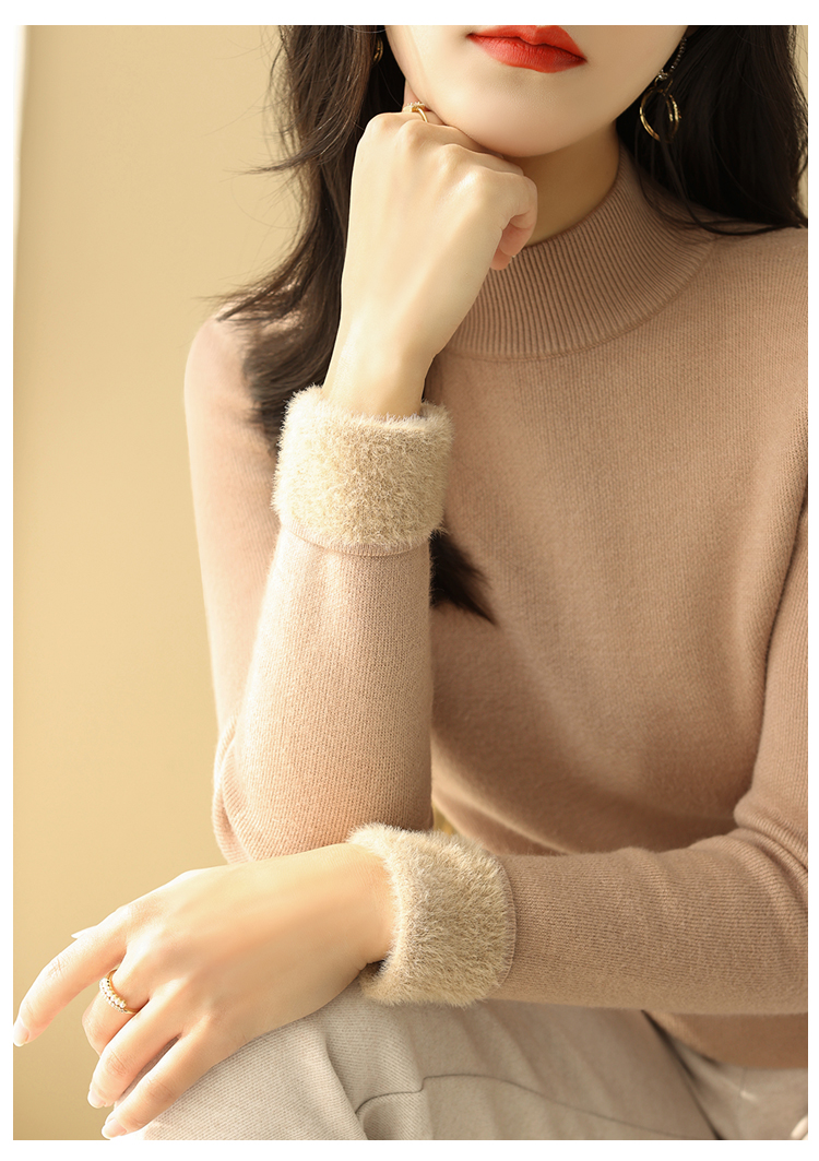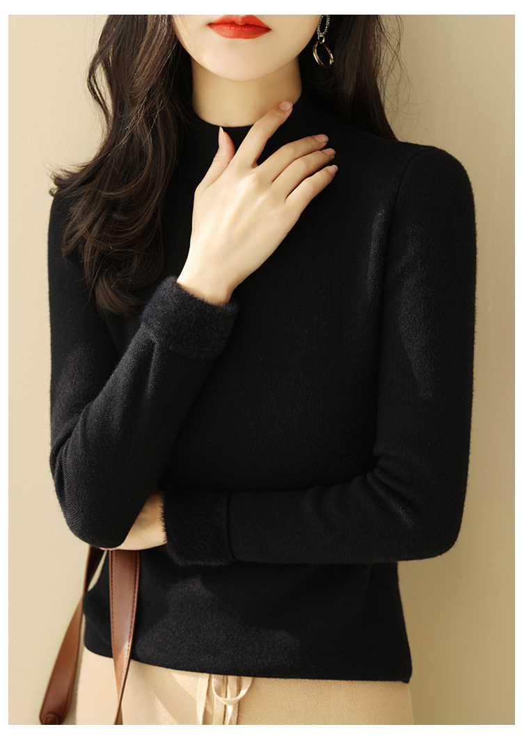 「6色可选!一体绒半高领」2023秋冬季加绒加厚毛衣女 保暖上衣打底针织衫韩版修身半高领